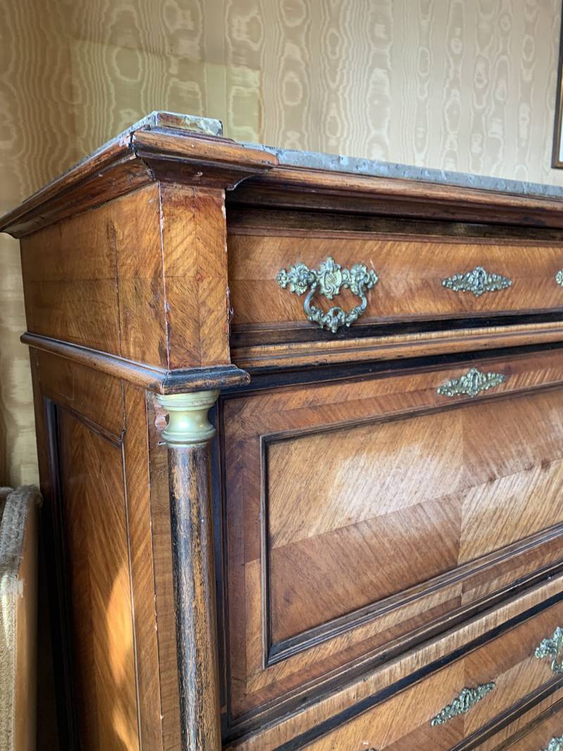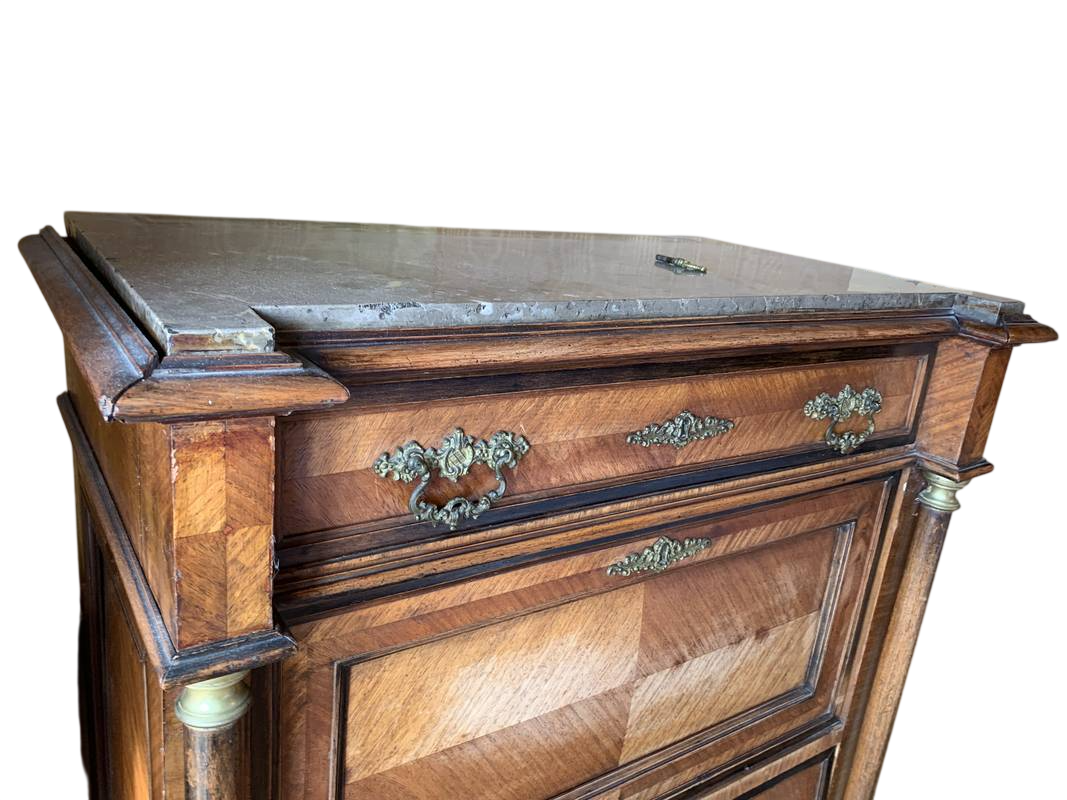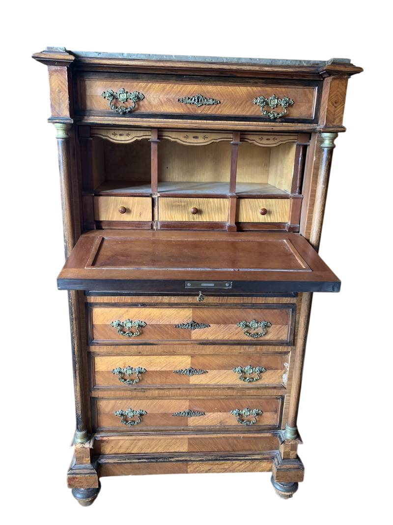 Antica cassettiera con ribalta secretaire a marquetterie epoca Napoleone III