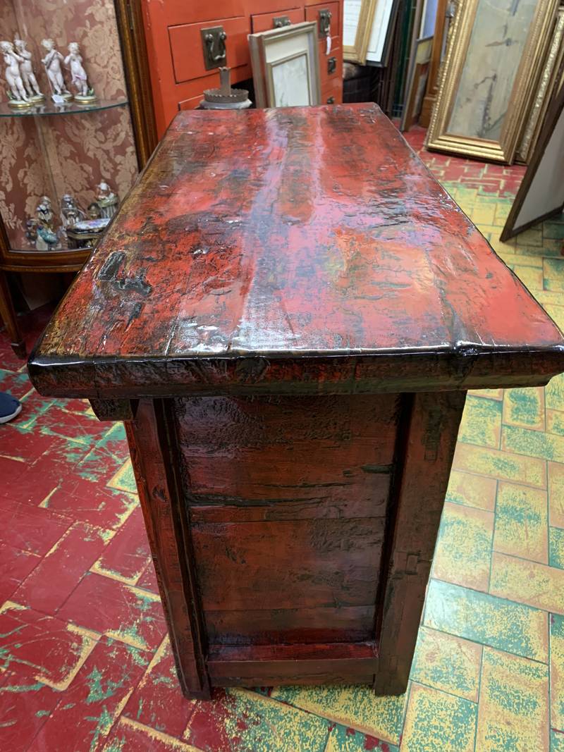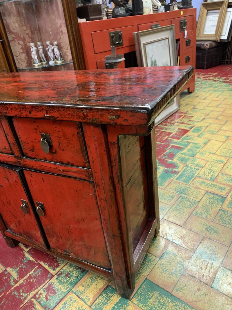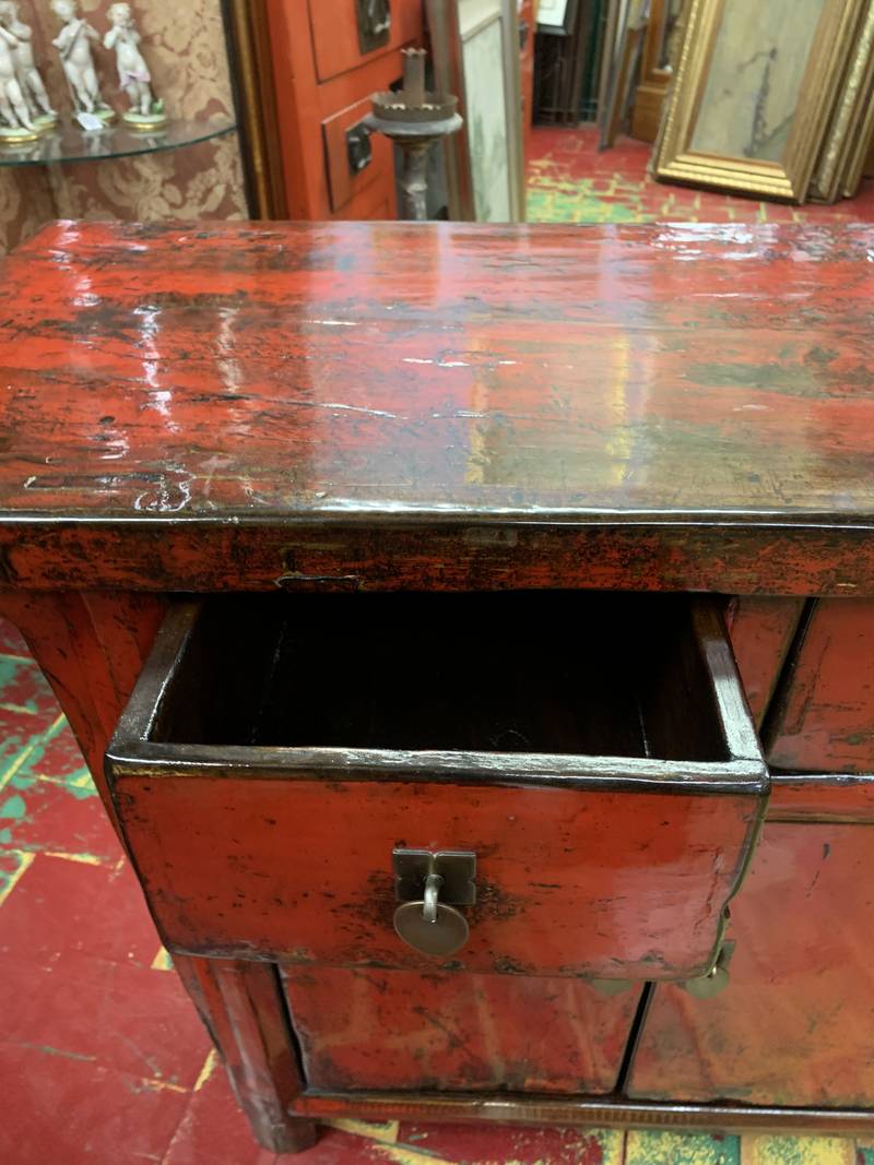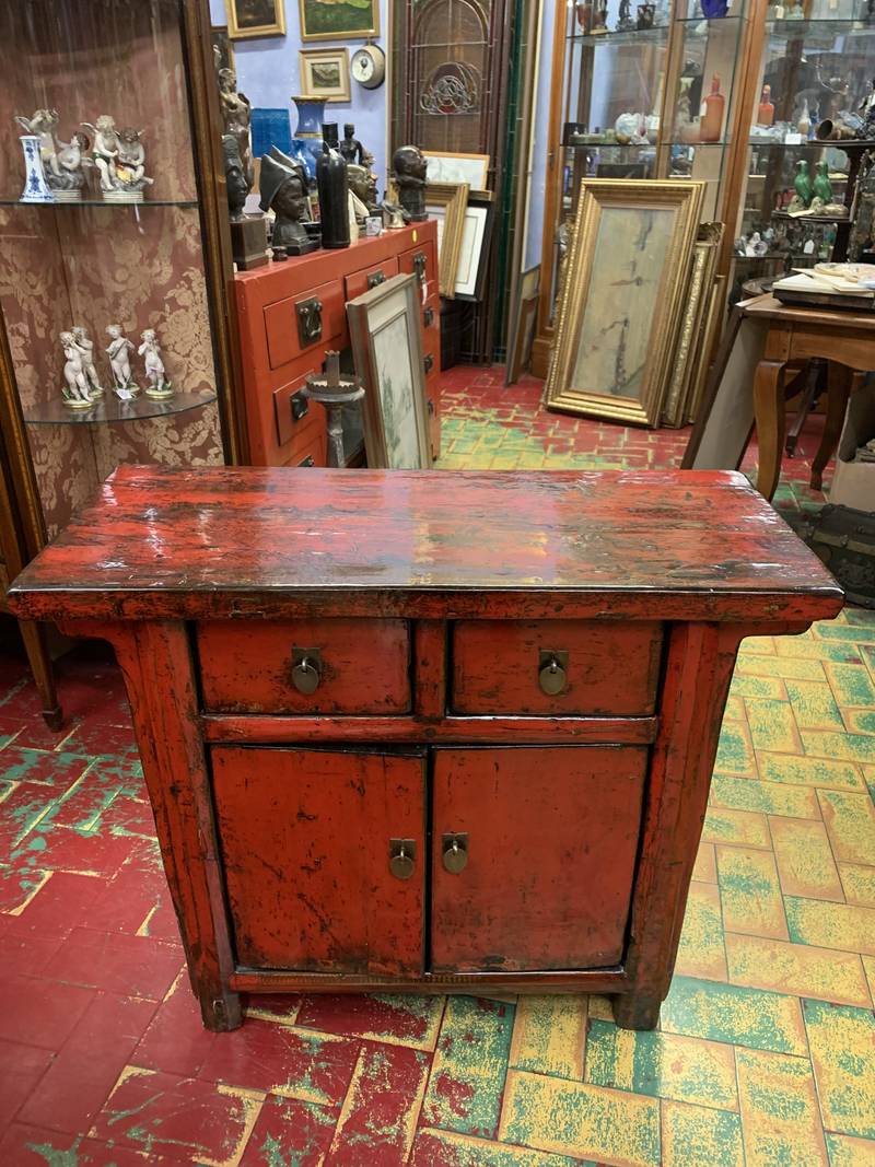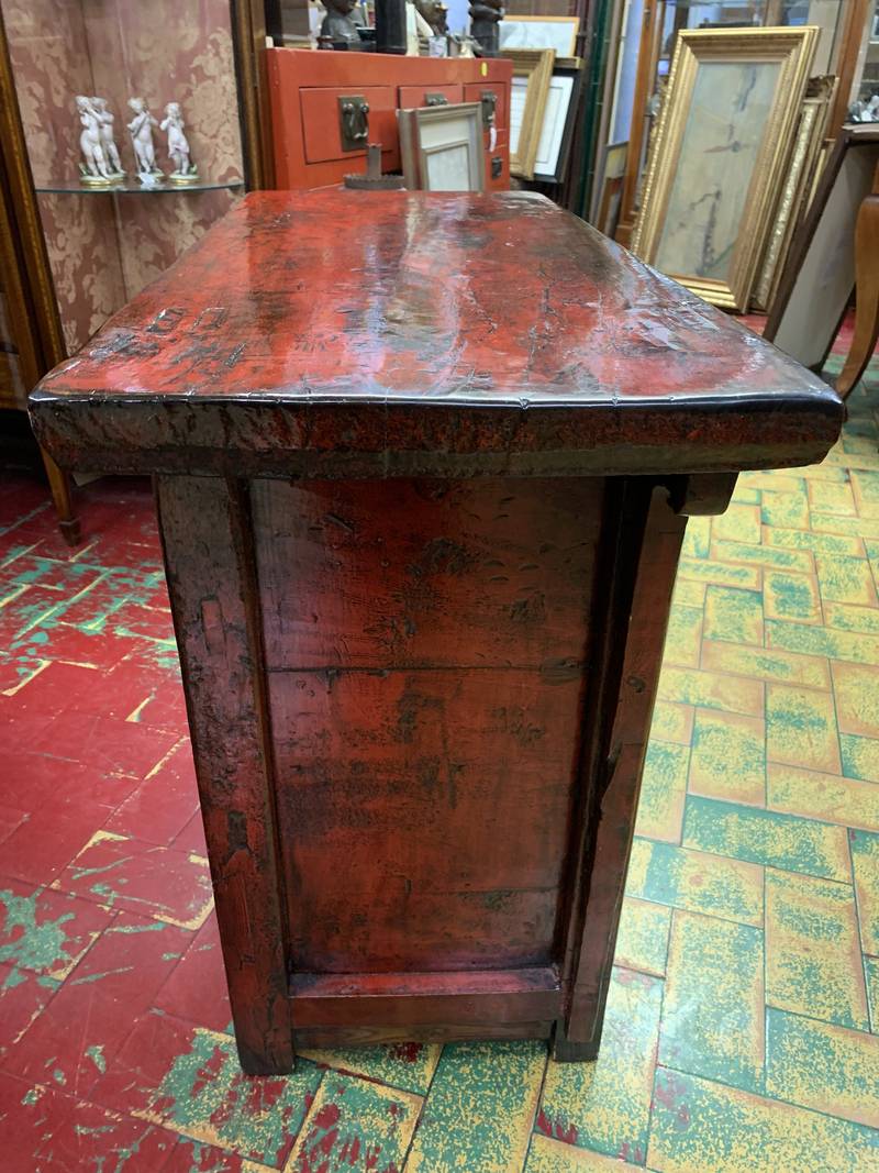 Antica credenza a due ante Cinese in lacca rossa fine 800