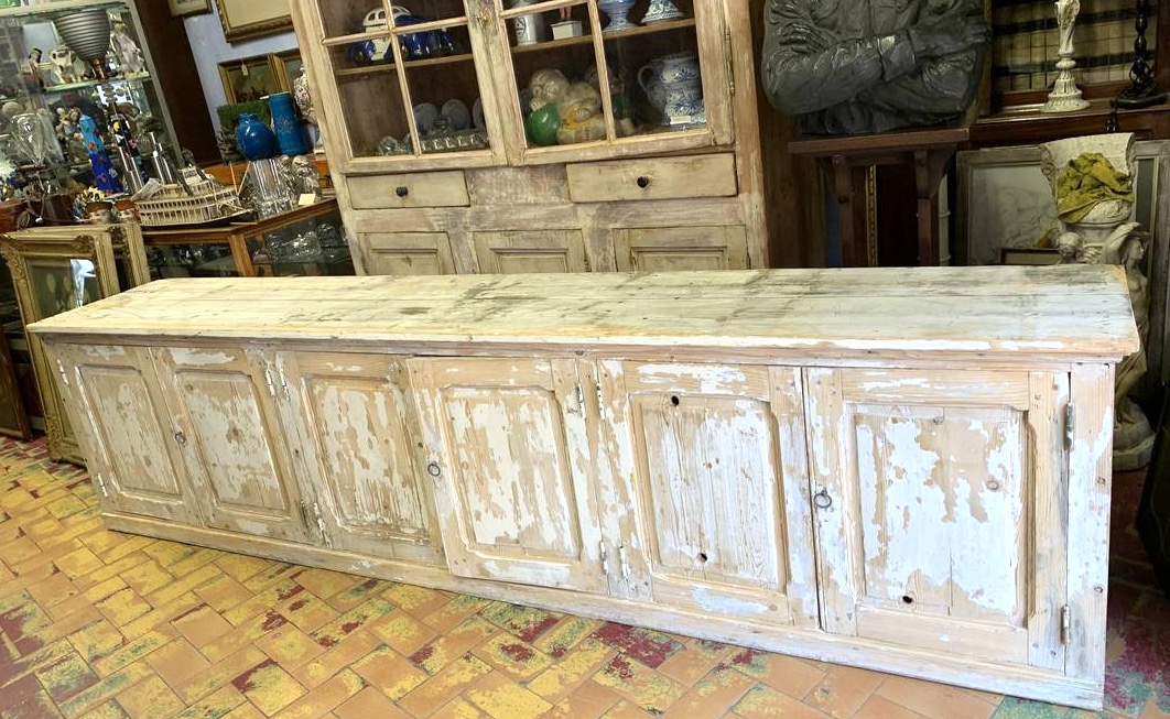 Antico mobile credenza a 6 ante laccato epoca XIX secolo Francia antico bancone da negozio l 304 p 52 h 75