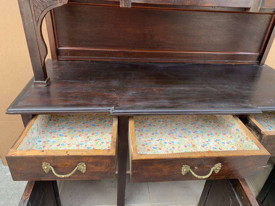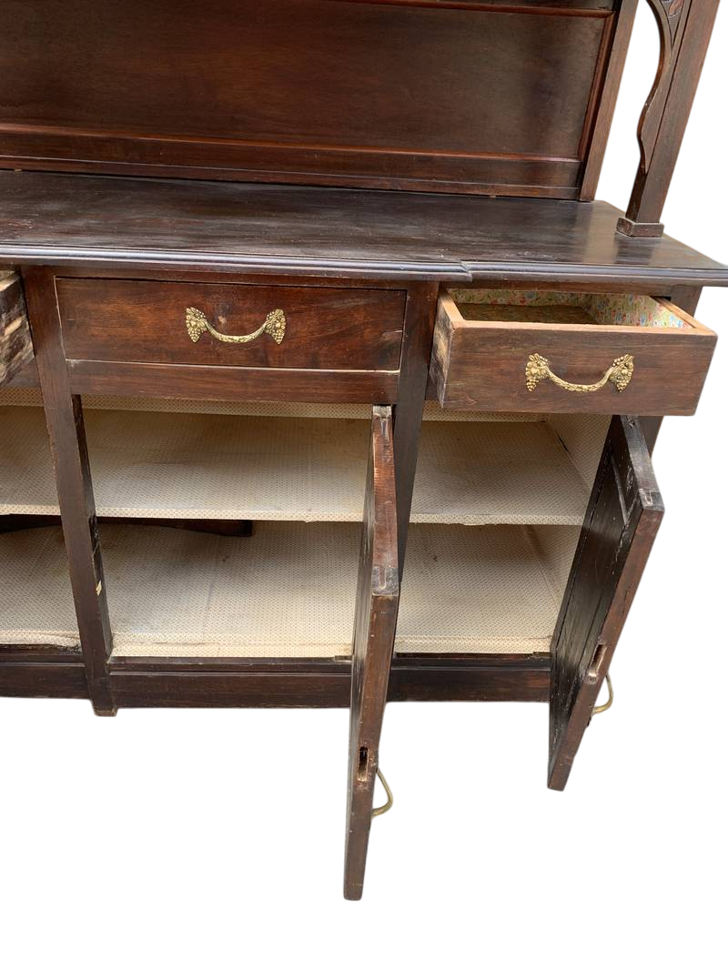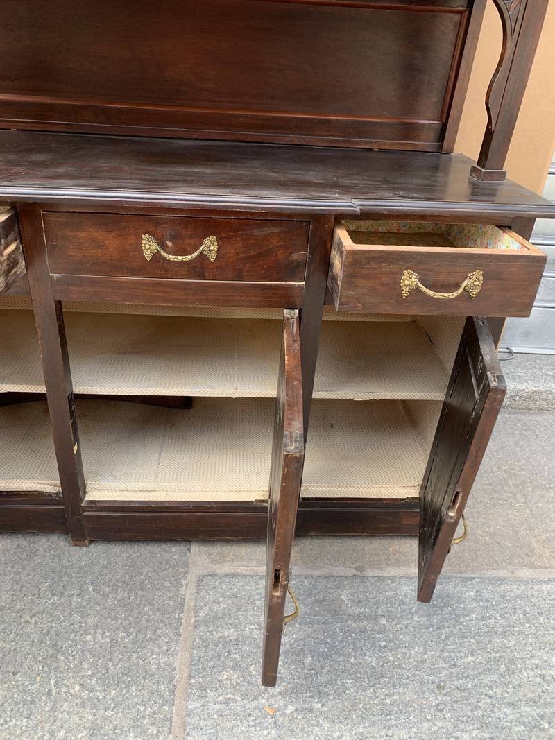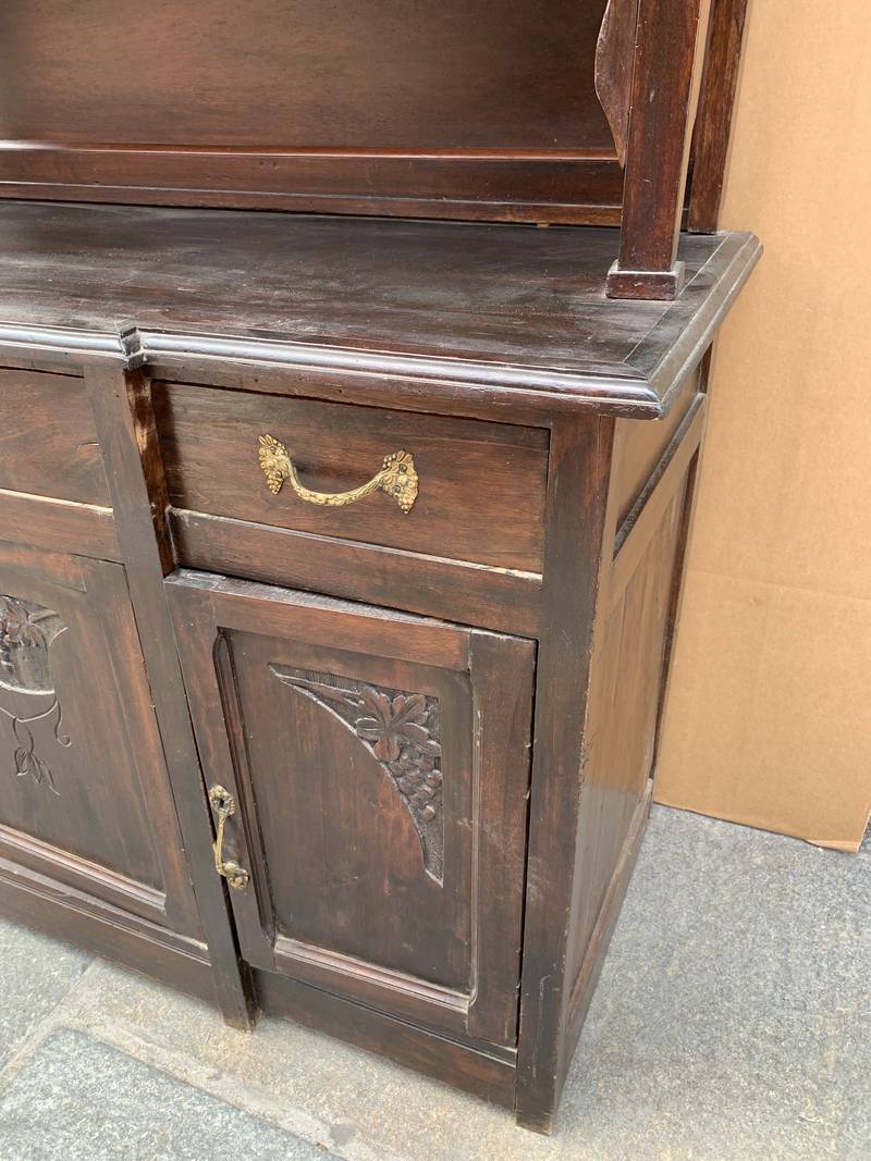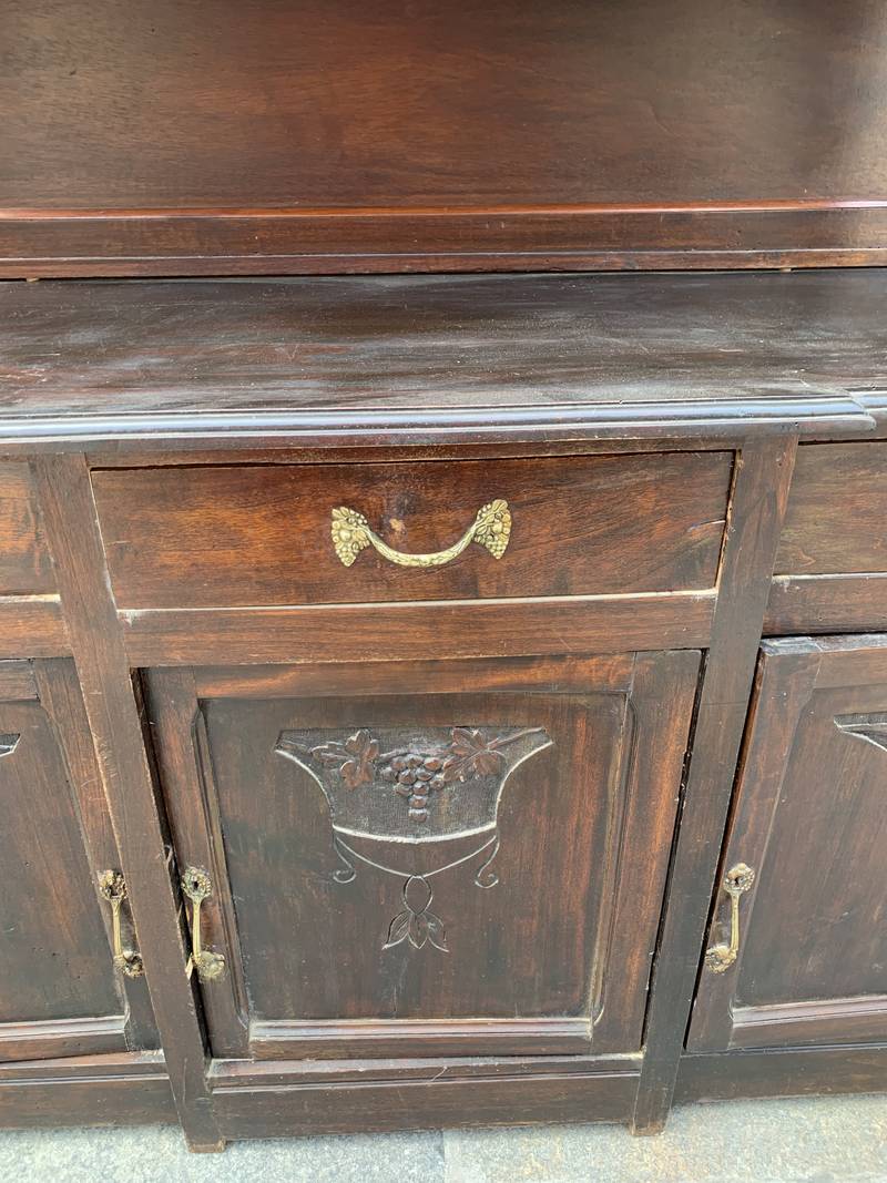 Antica credenza Liberty in legno intagliato con frutta vetri cattedrali