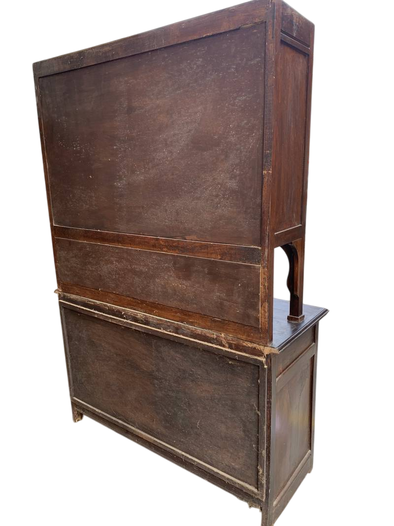 Antica credenza vetrina LIBERTY purissimo degli inizi del XX secolo alzata VETRI A PIOMBO COLORATI