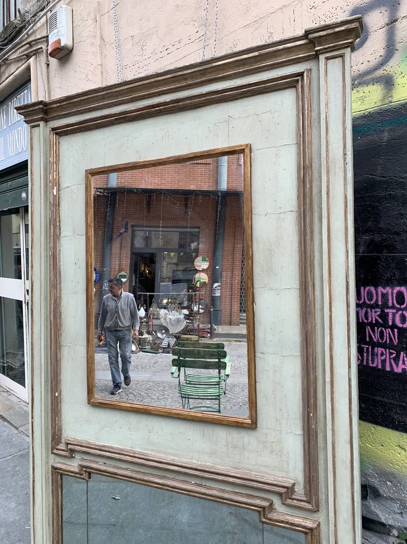Grande cornice in legno dipinto gli specchi interni al mercurio sono coevi