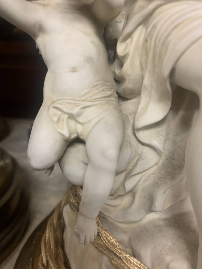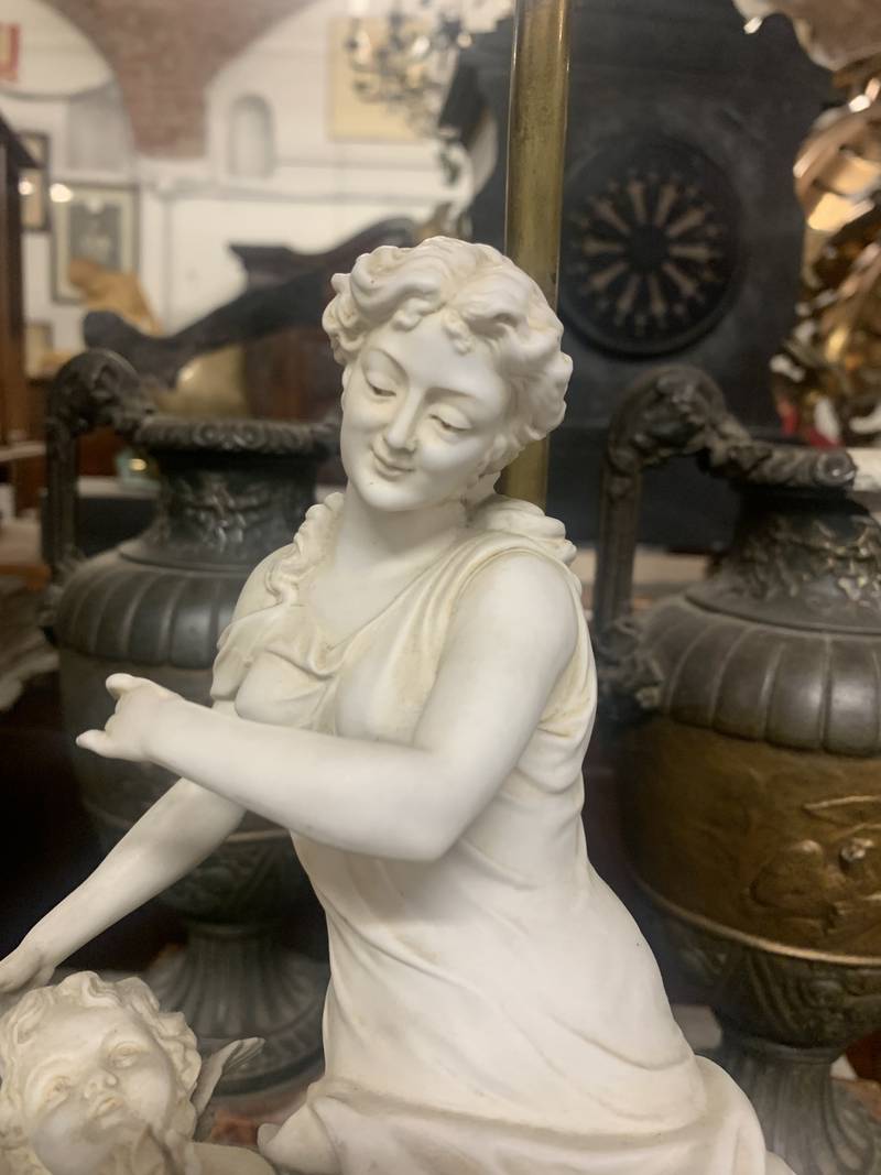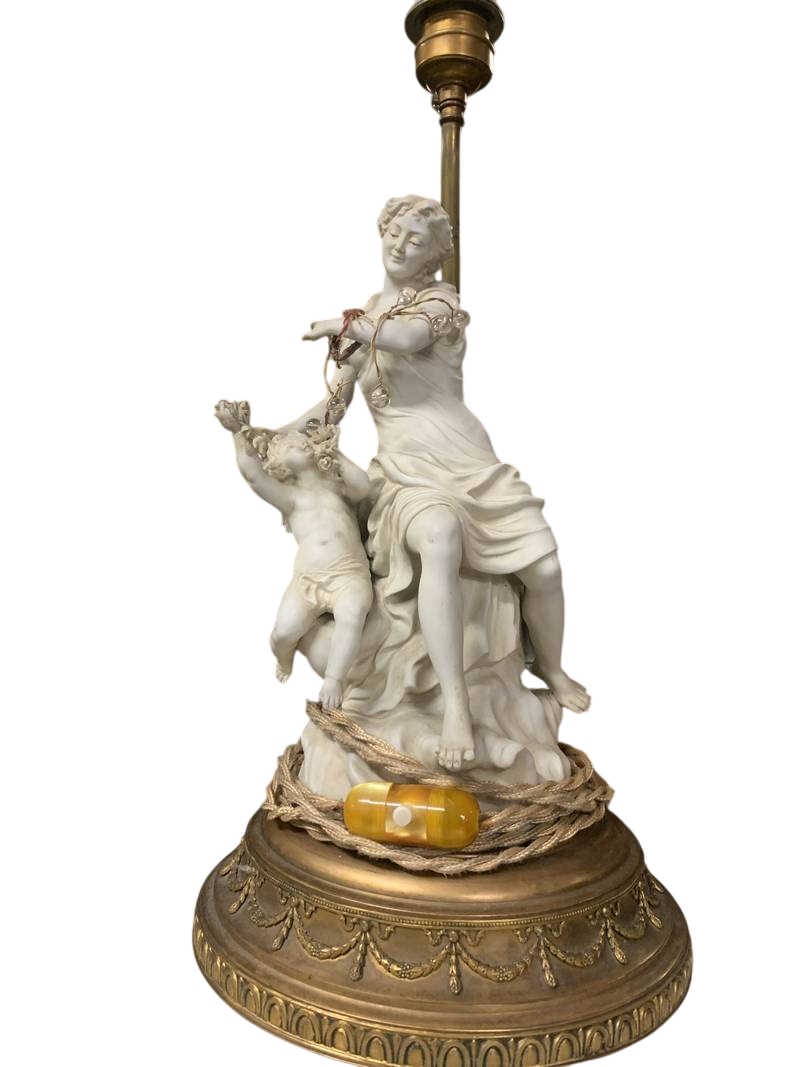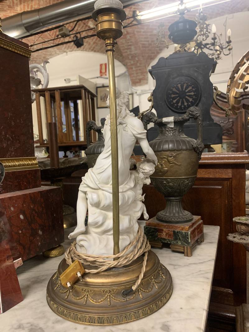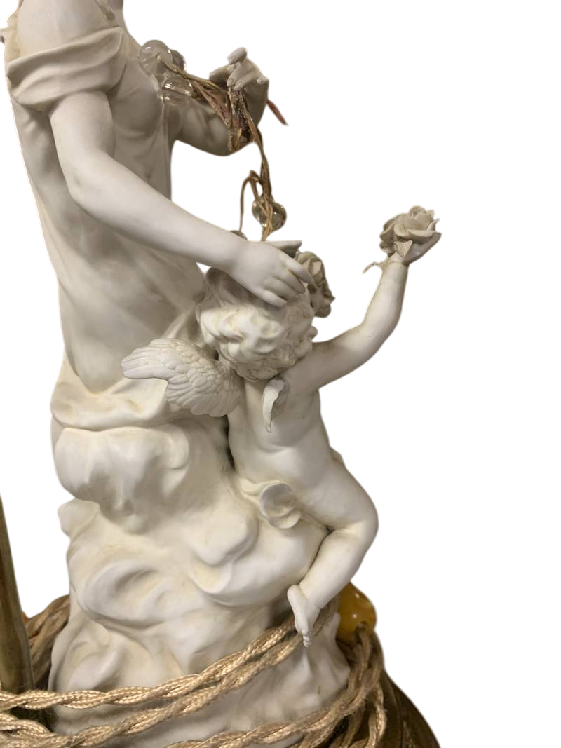 Antica lampada Neoclassica da tavolo in porcellana di biscuit Venere e Cupido