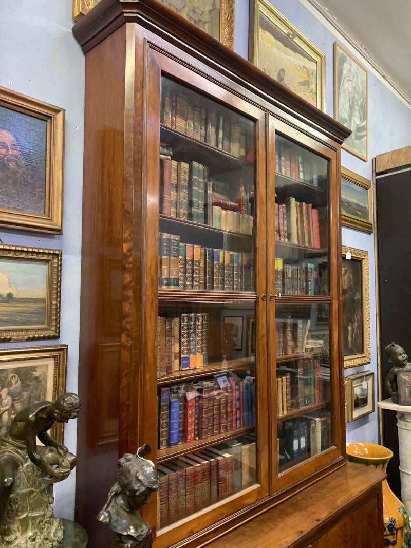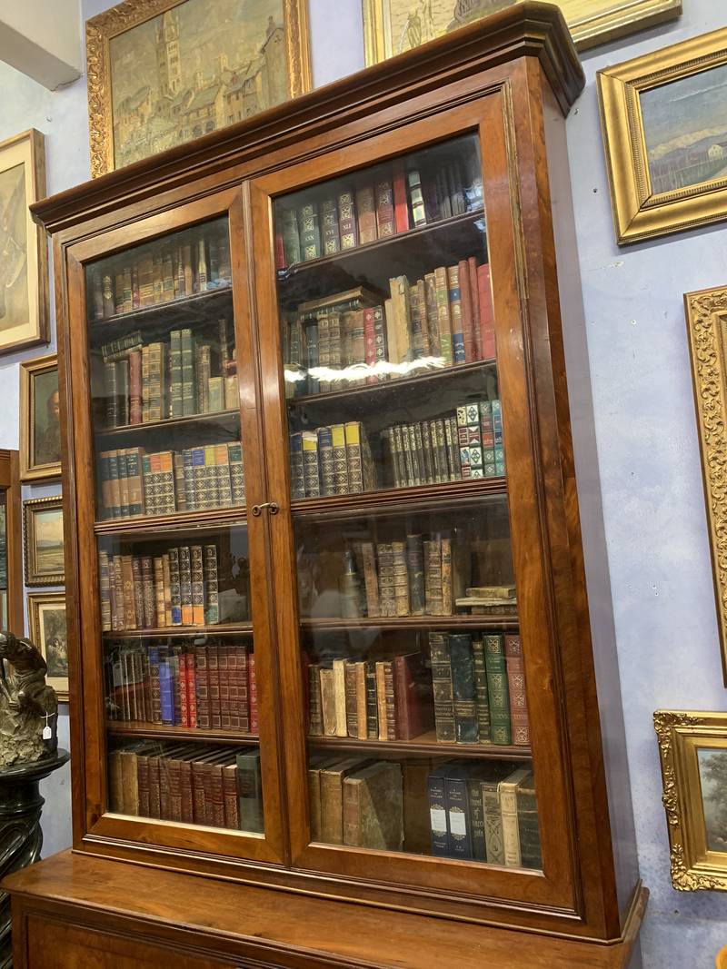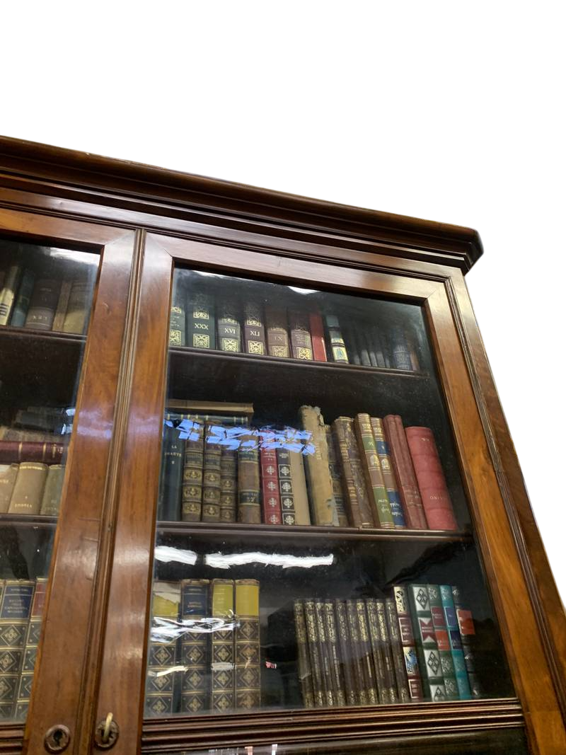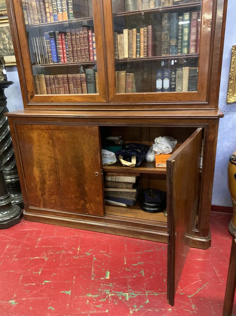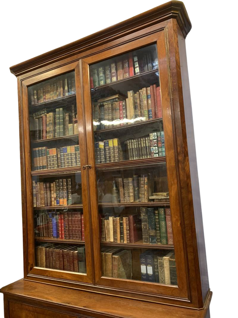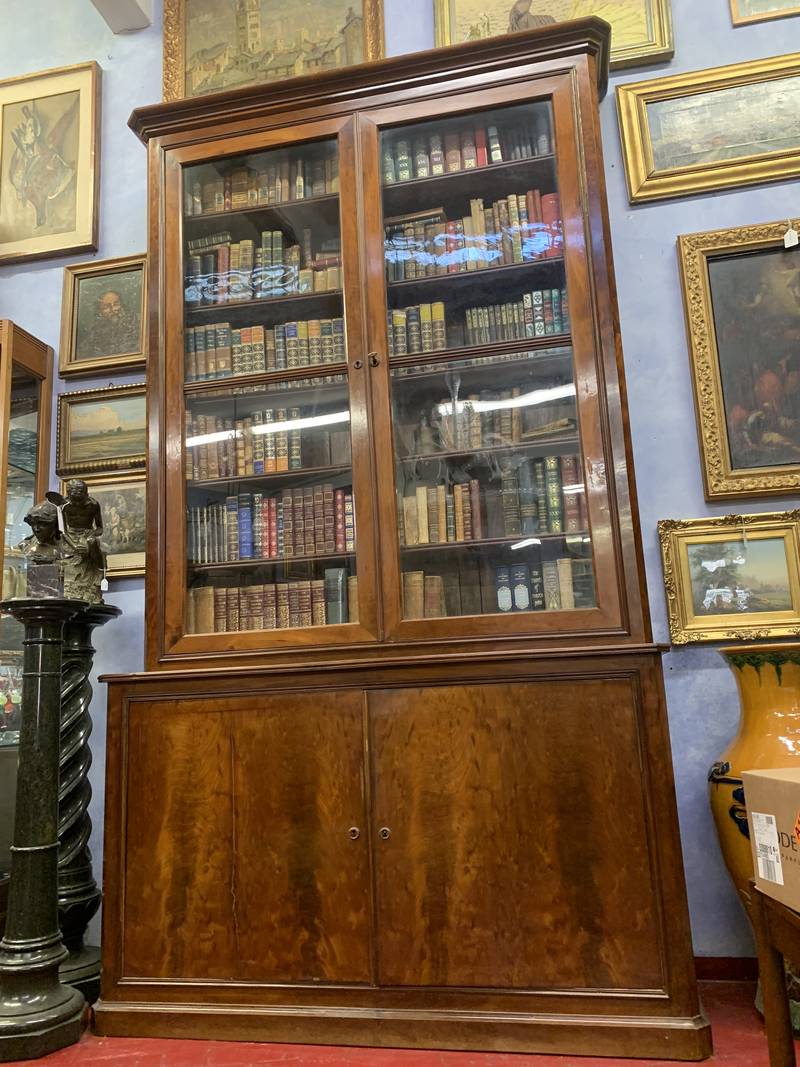 Antica libreria Direttorio a doppio corpo in noce epoca XIX secolo vetri soffiati