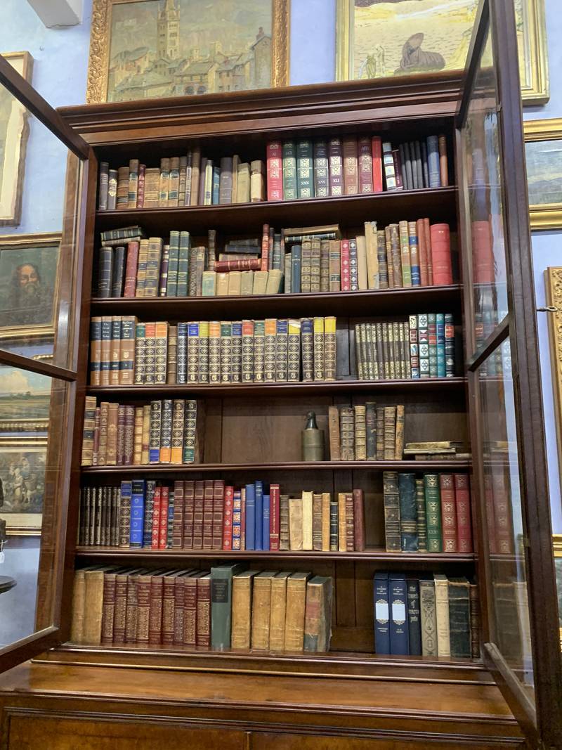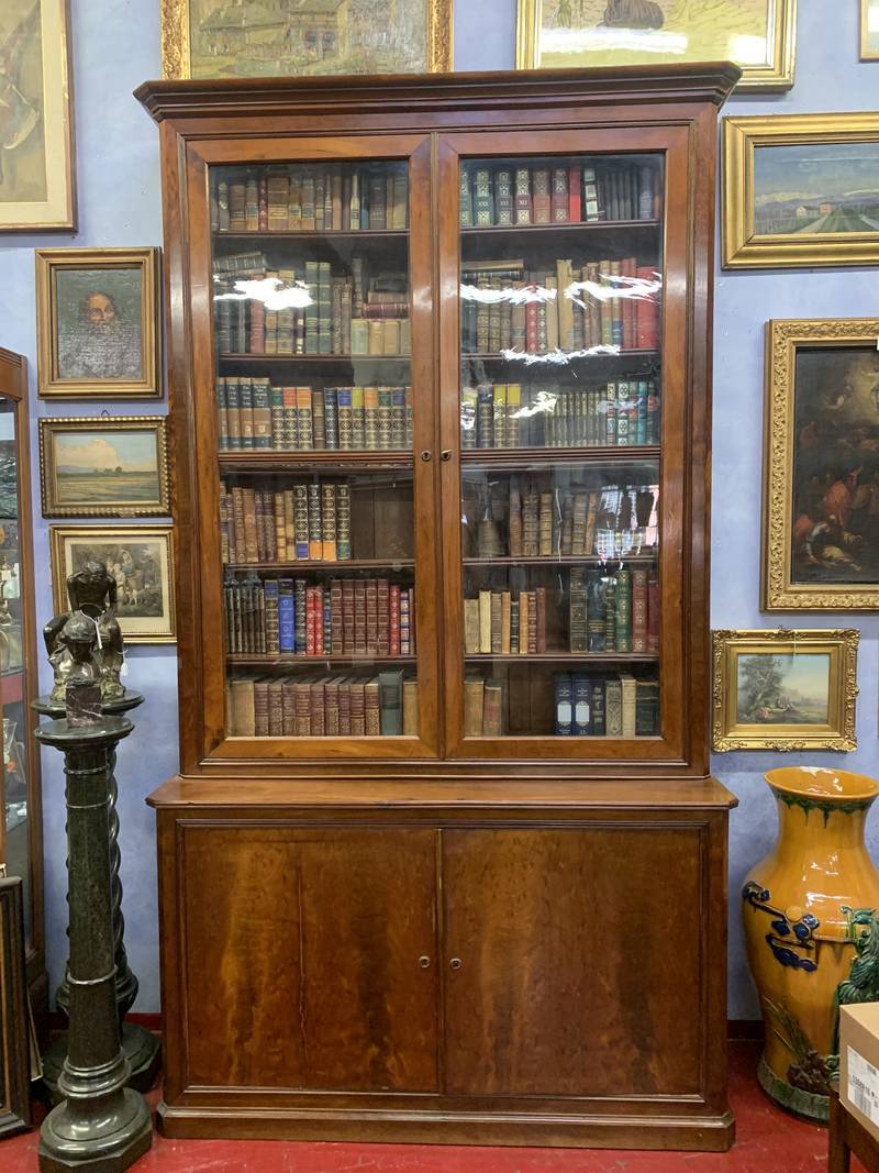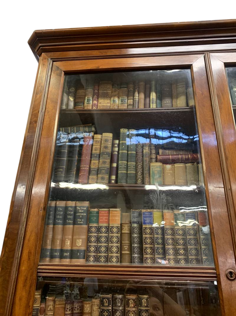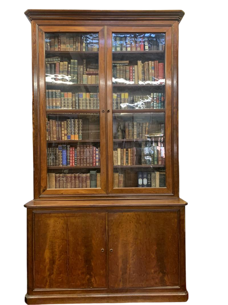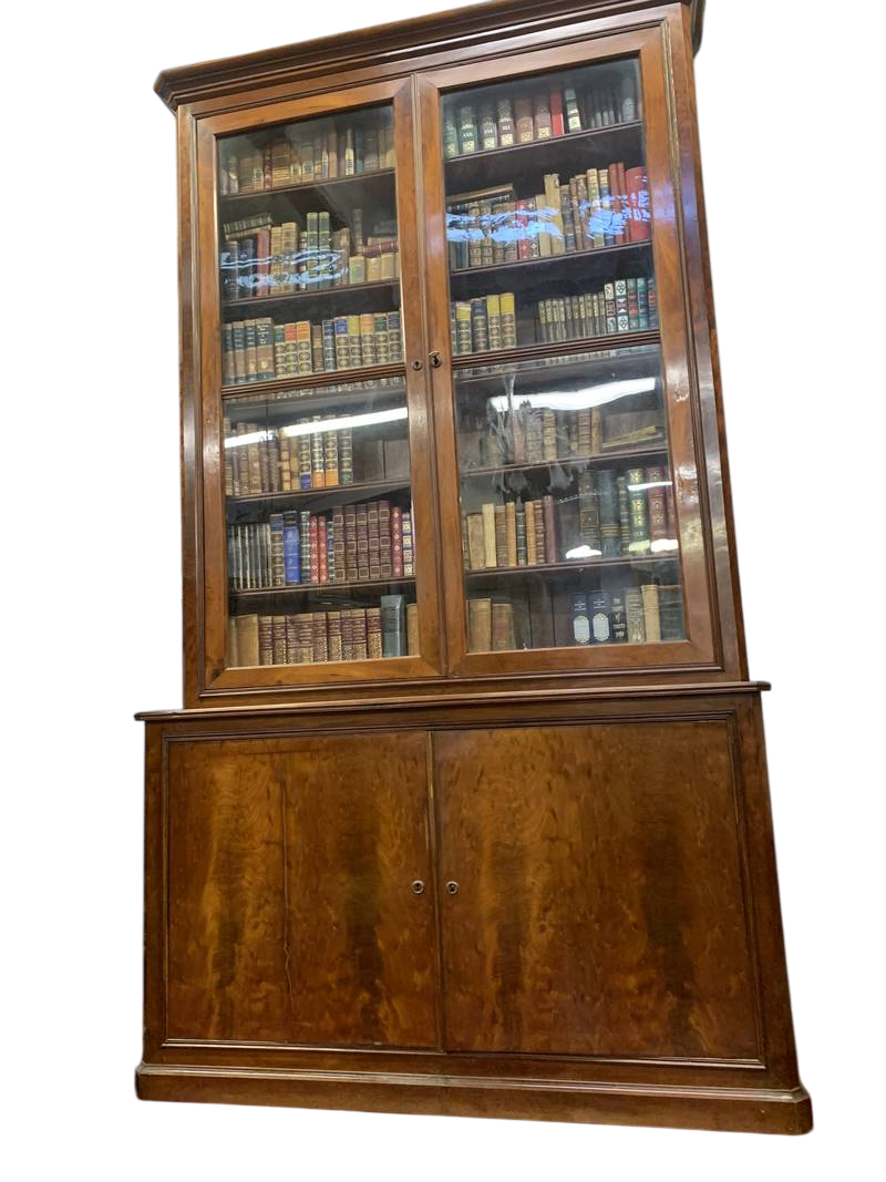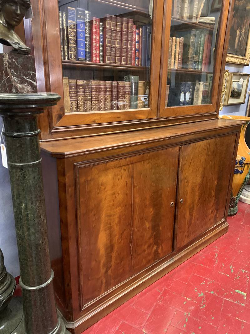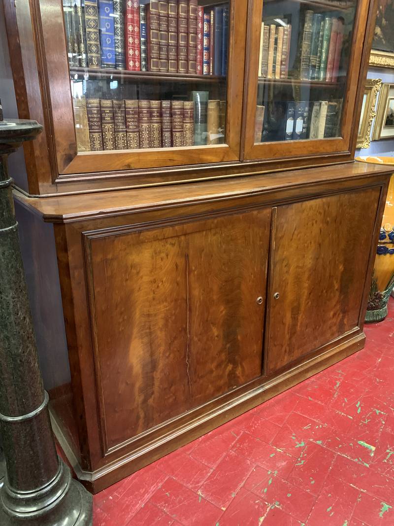 Antica libreria Direttorio a doppio corpo in noce epoca XIX secolo vetri soffiati