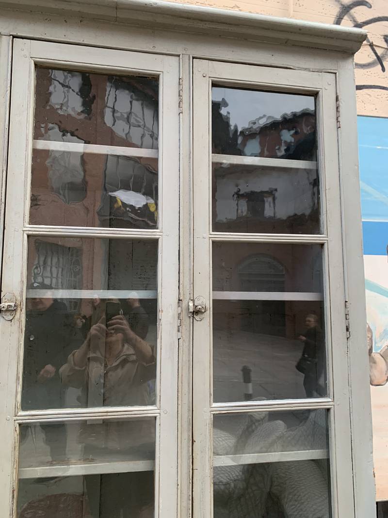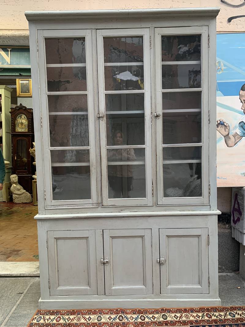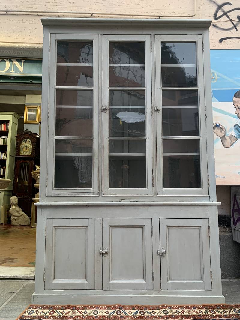 Antica libreria laccata grigio polvere inizi del XX secolo