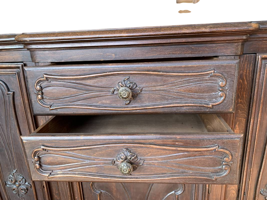 due cassetti superiori e ante intagliate con motivi tipici detti a “ragnatela ”