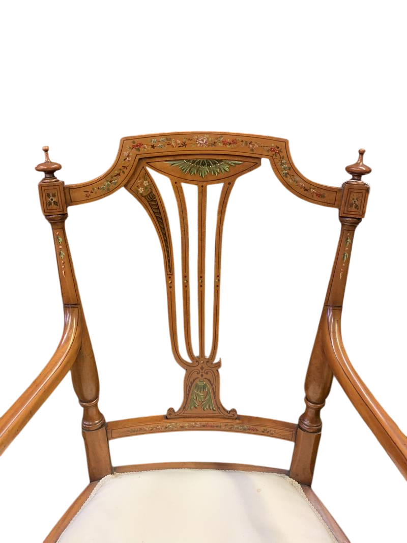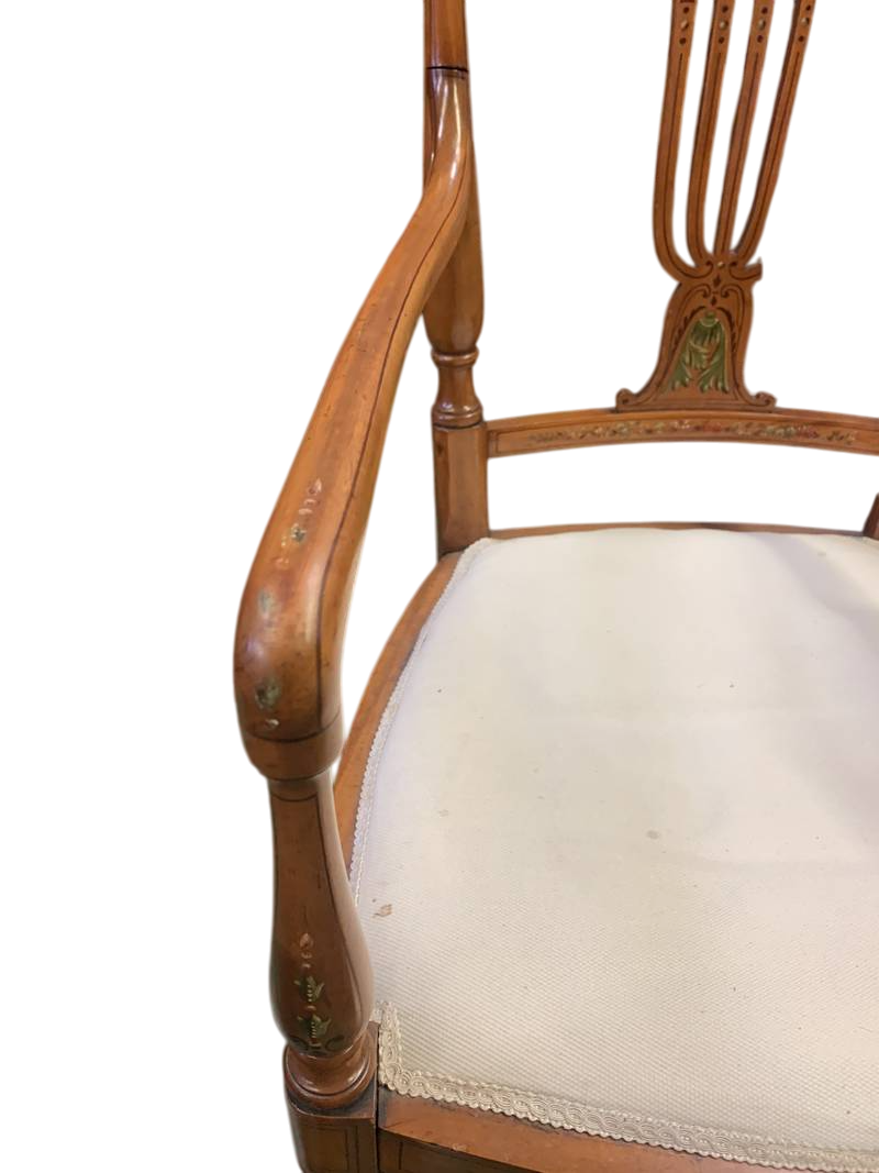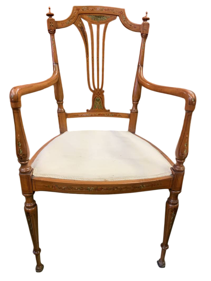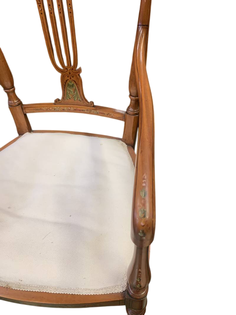 Antica poltrona inglese Edoardiana dipinta Satin wood dipinta a mano