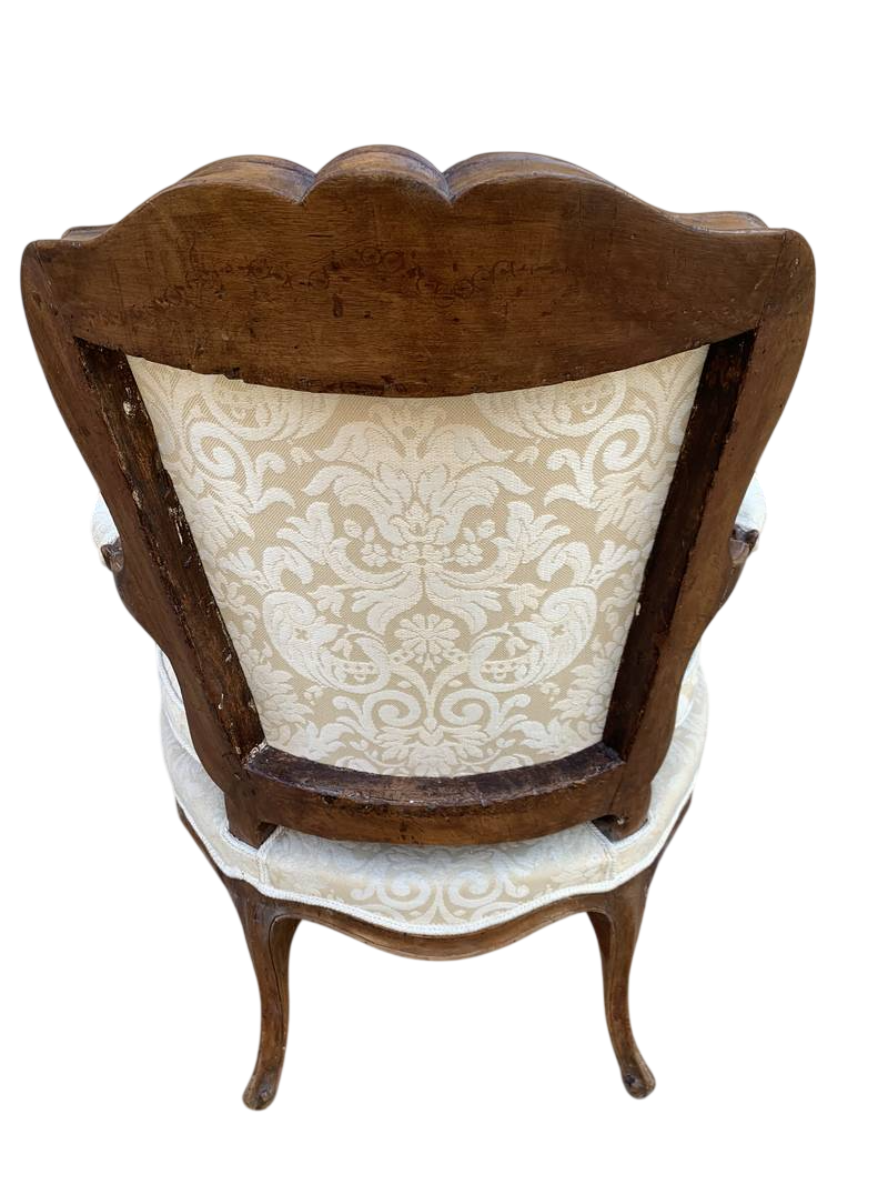 Antica poltroncina poltrona cabriolet stile Luigi XV in noce imbottita bianca