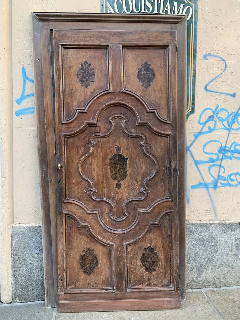 Antica porta portone Barocco prima meta’ del 700 in noce