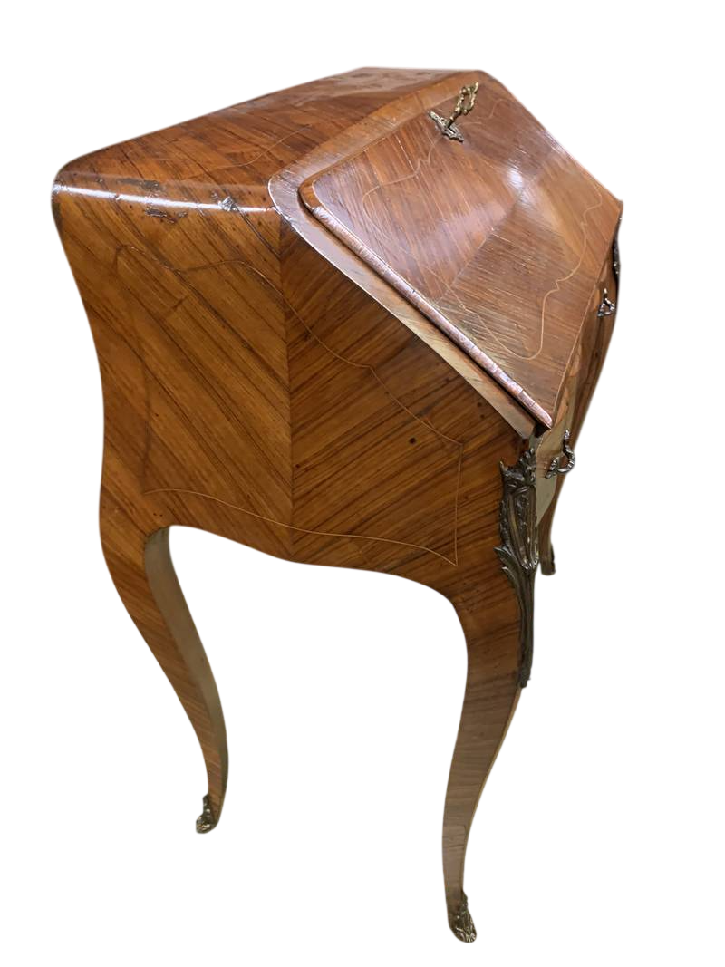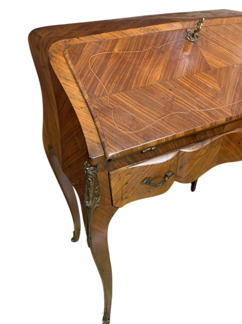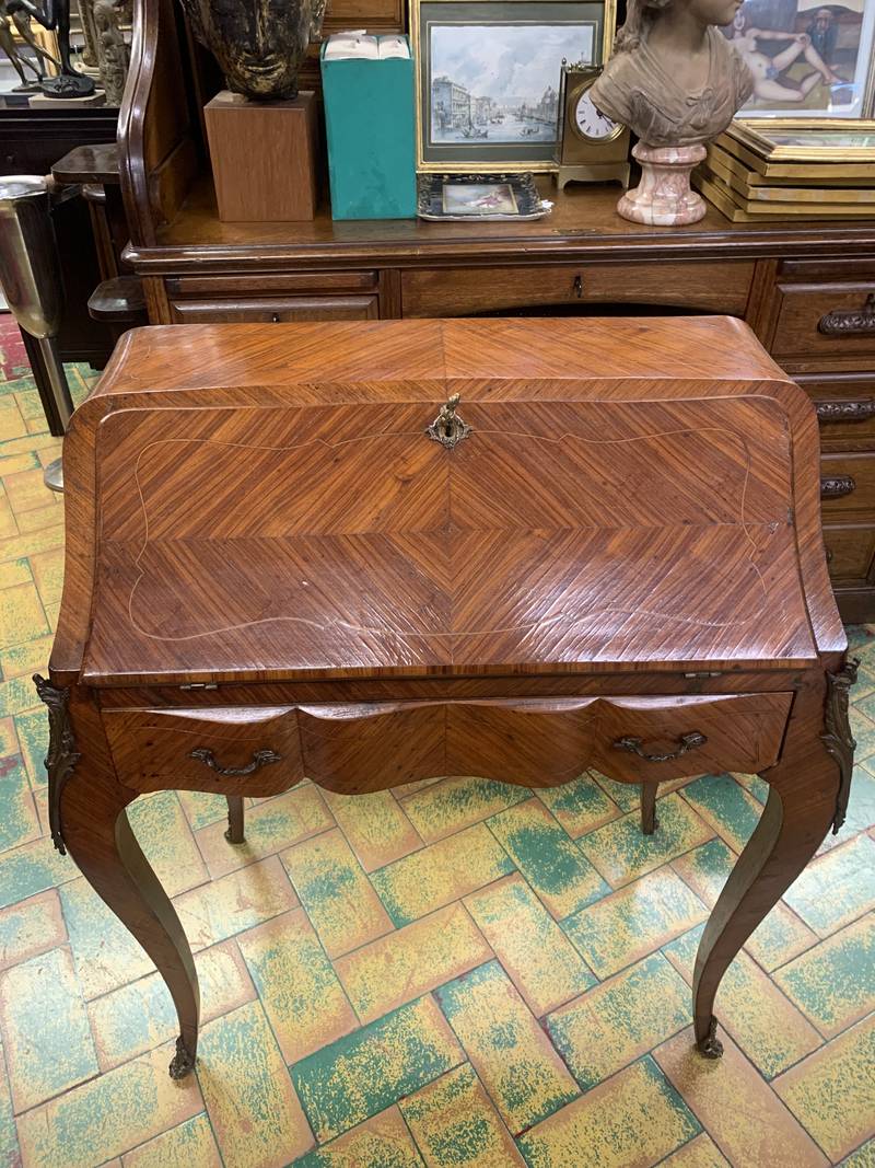 lastronata e filettata con ribalta a scrittoio e gambe arcuate
