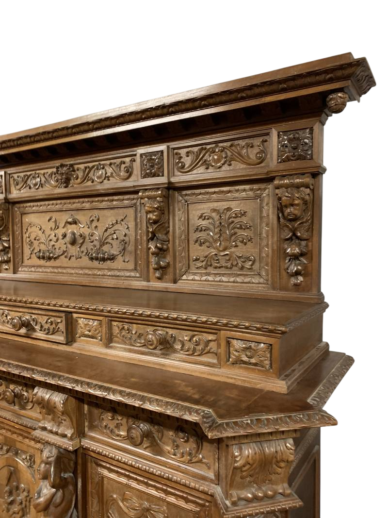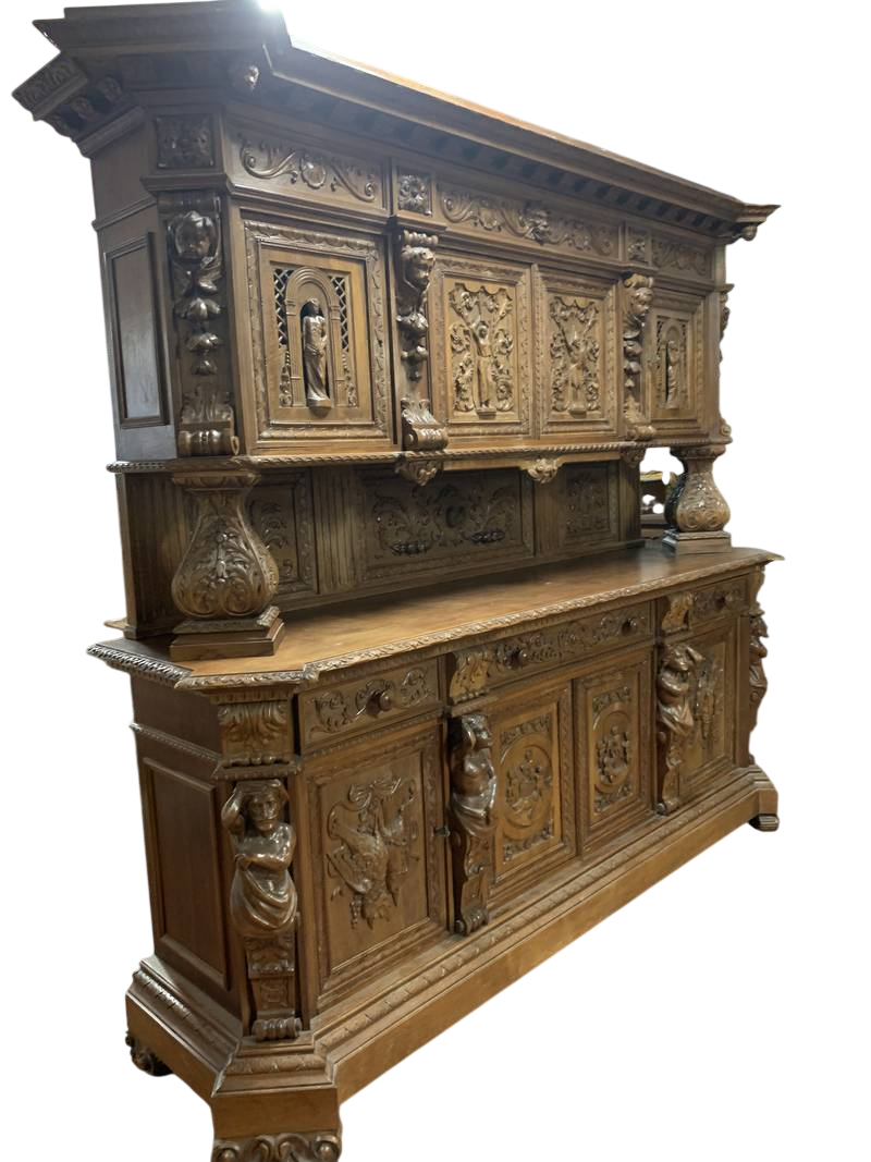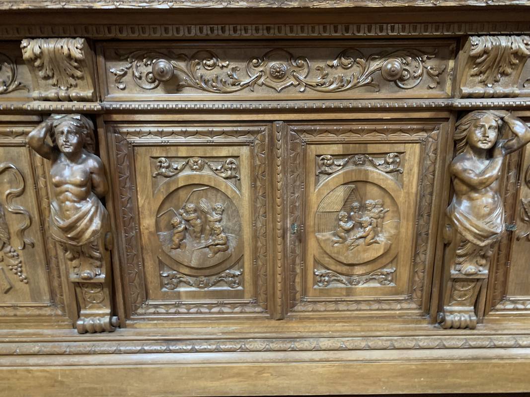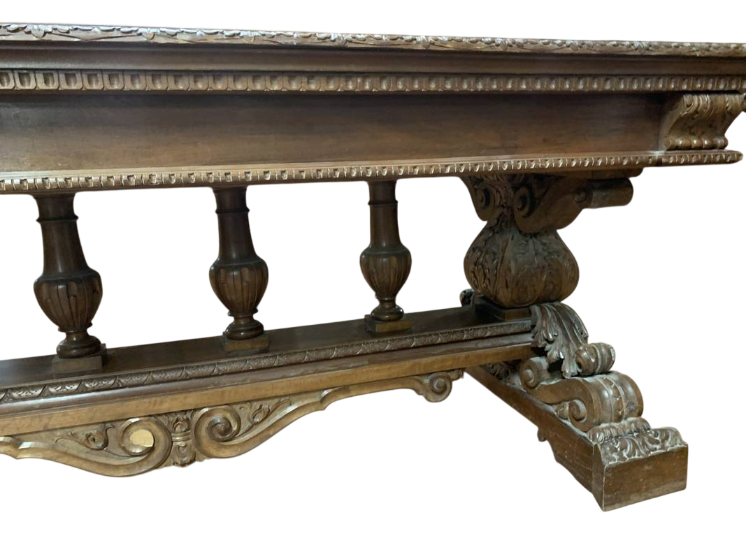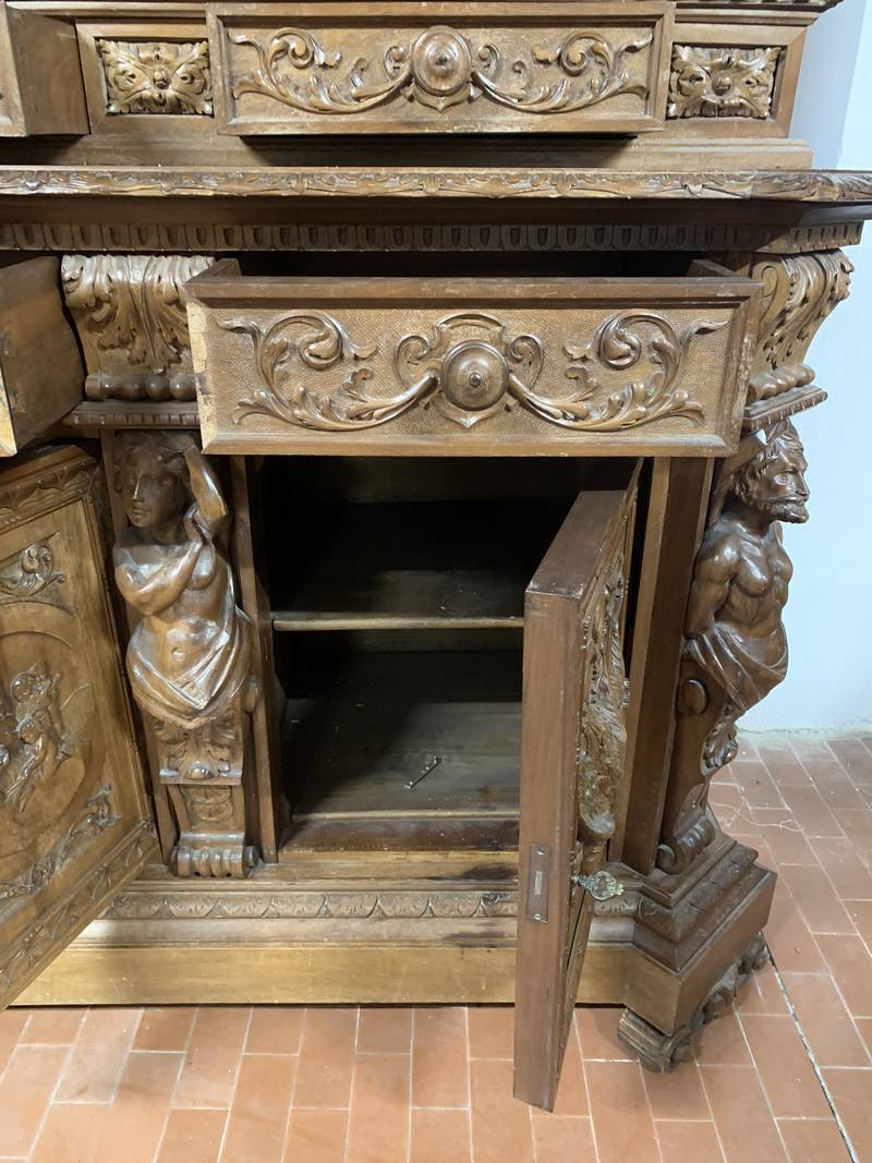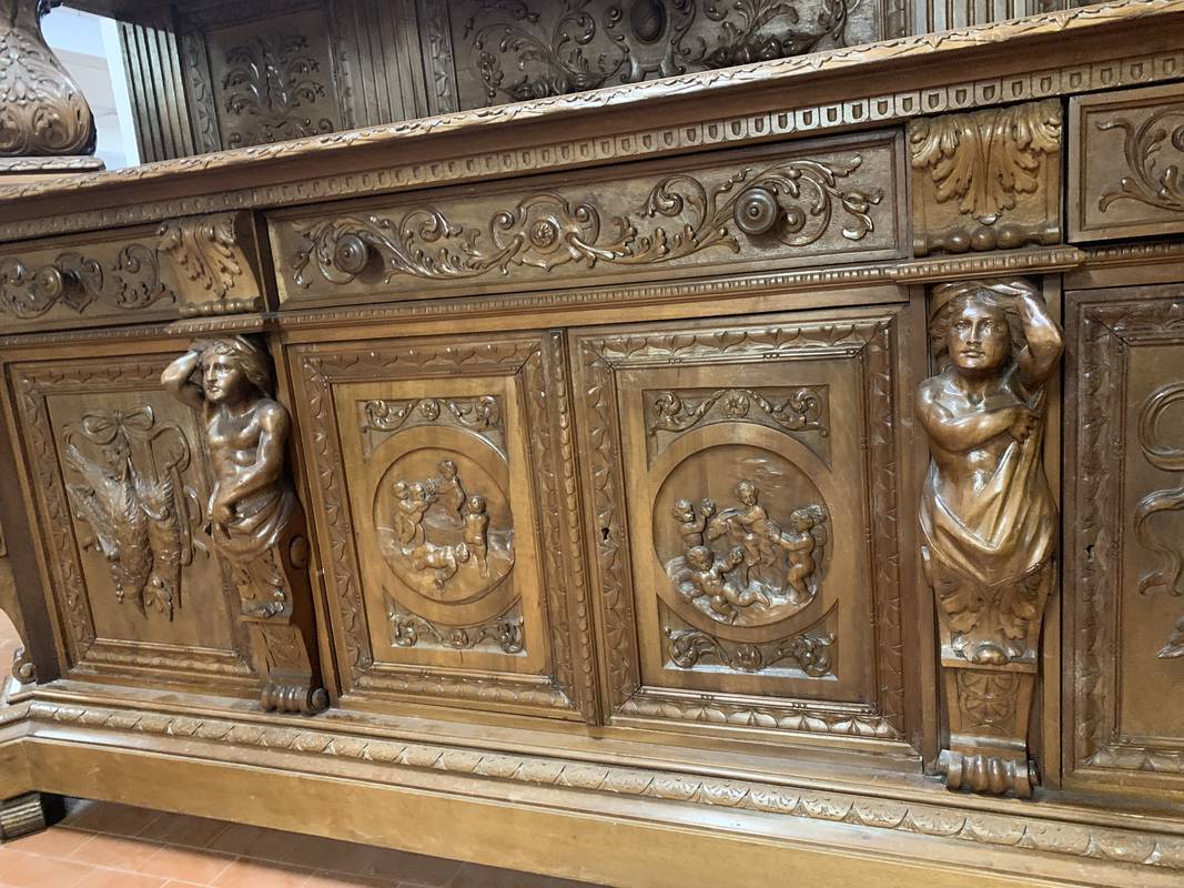 Imponente Antica sala da pranzo Rinascimentale ricca scultura