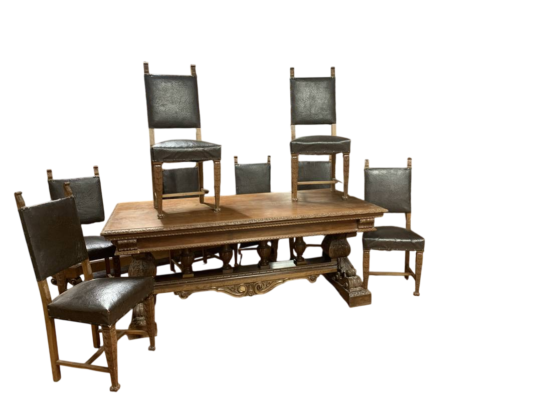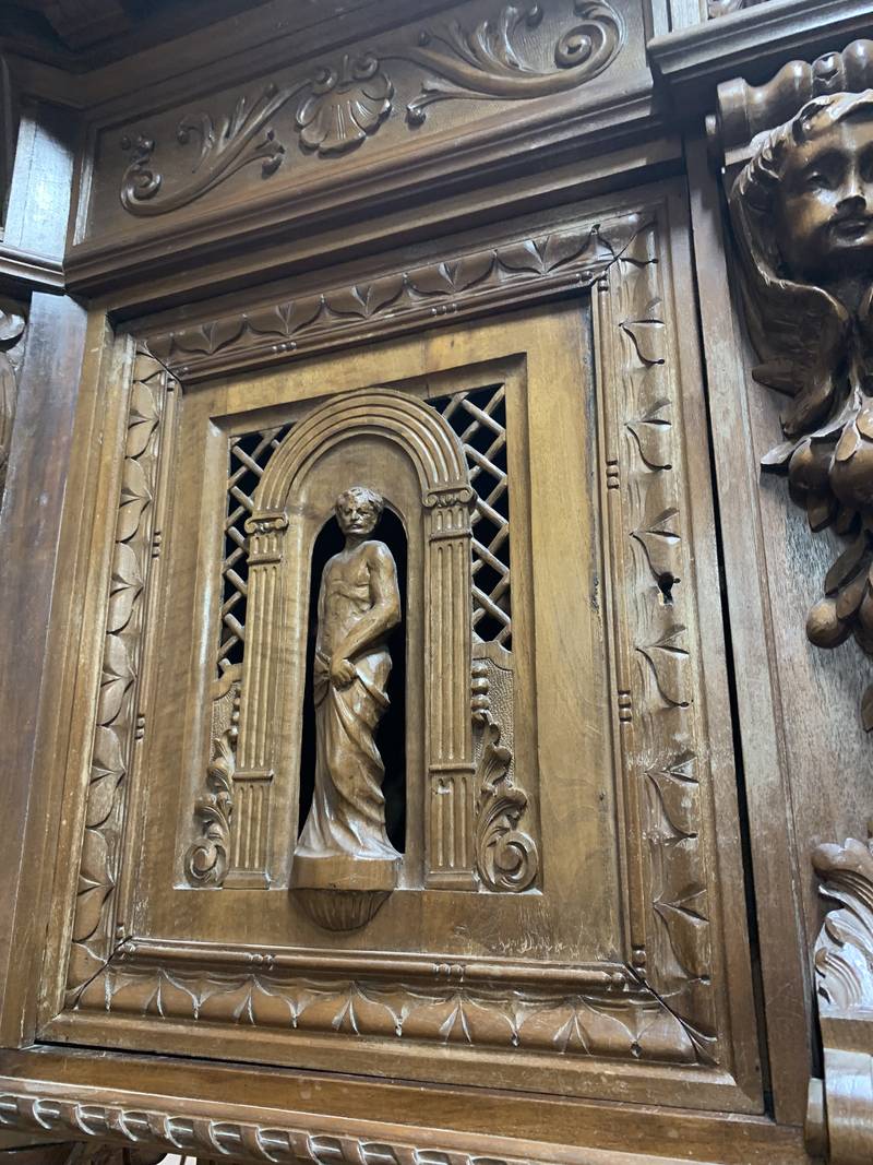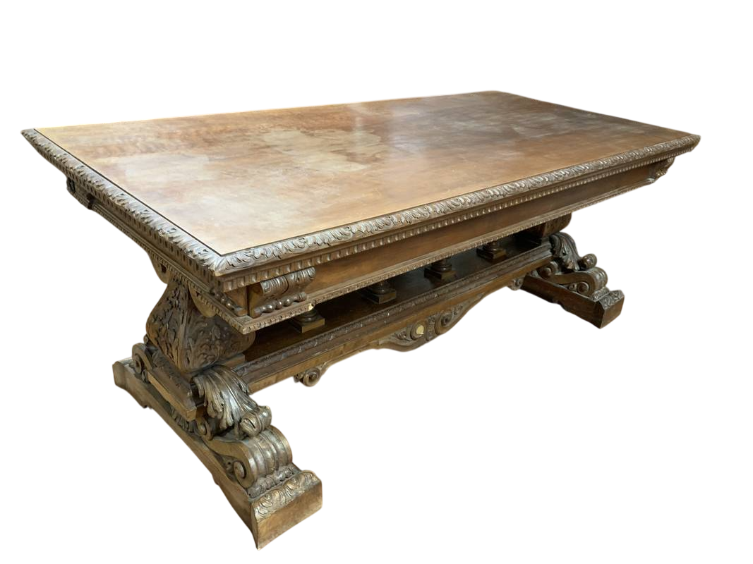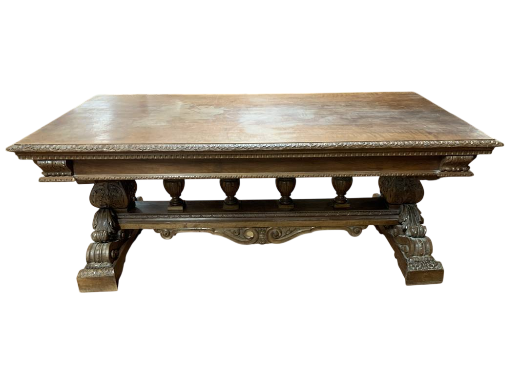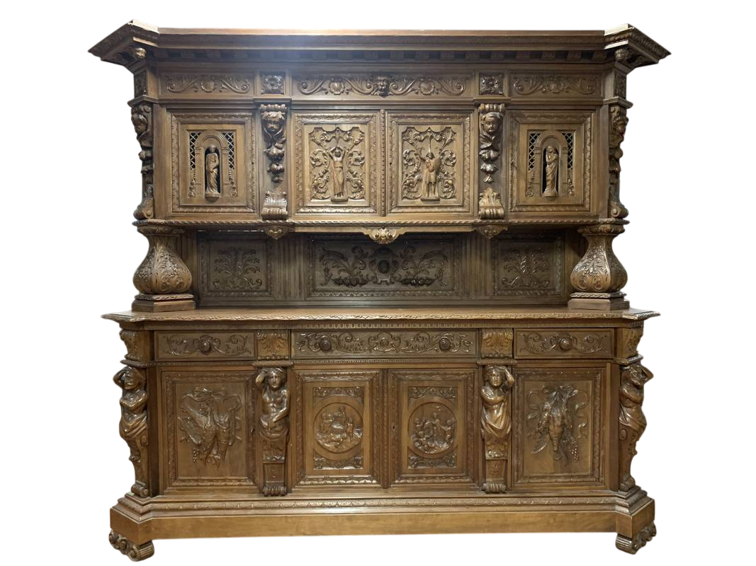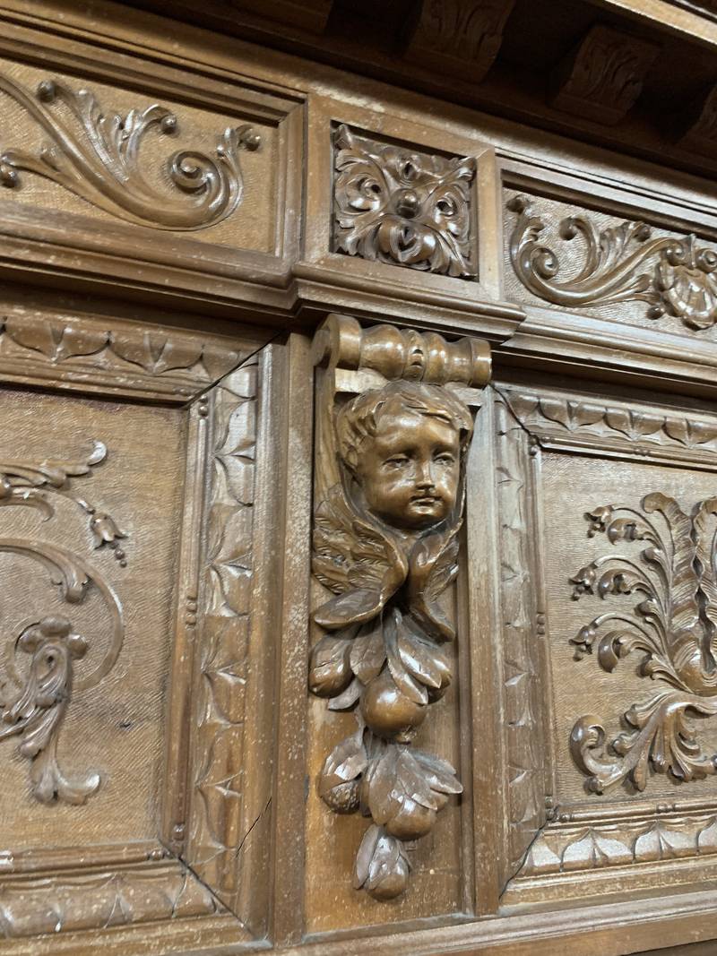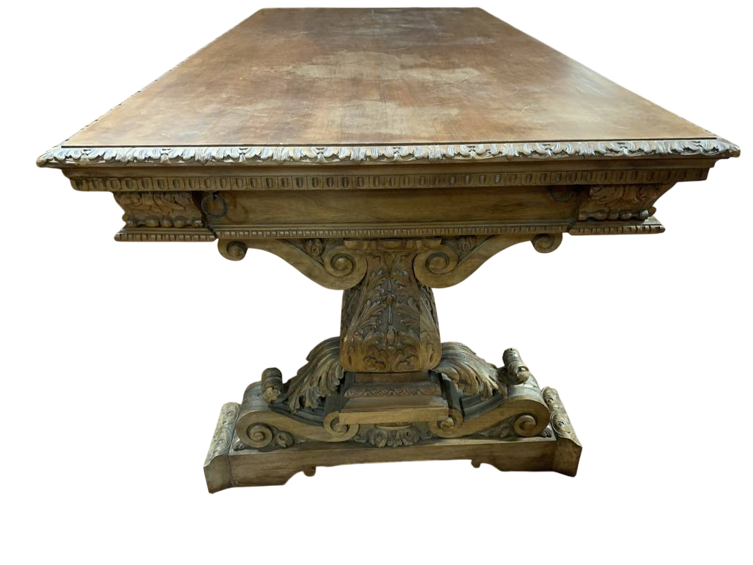 Imponente Antica sala da pranzo Rinascimentale ricca scultura