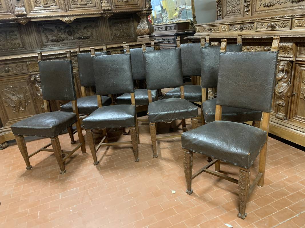 Antica sala da pranzo Rinascimentale in legno scolpito ed intagliato della prima meta’ del XX secolo