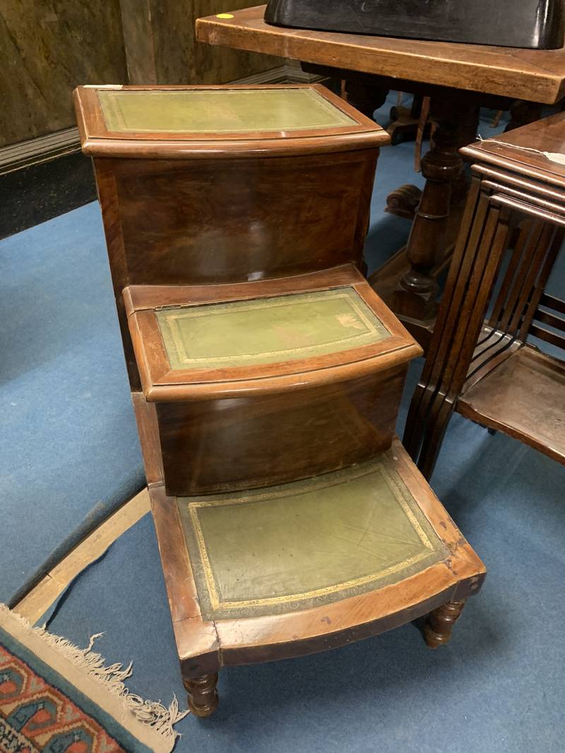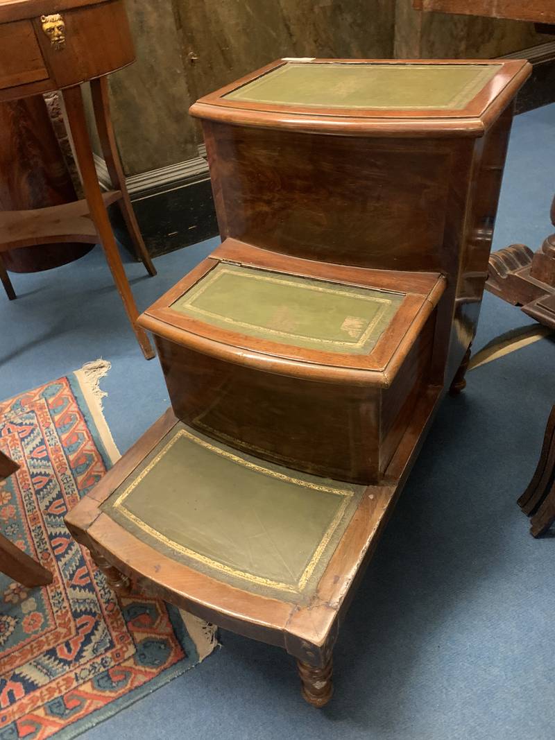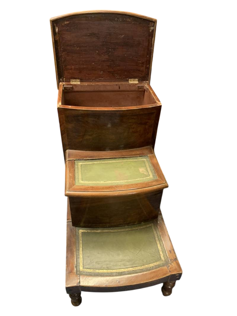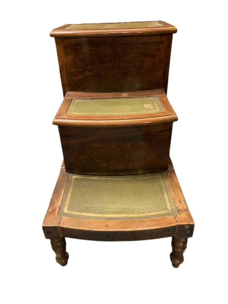 Antica scaletta da biblioteca in legno di mogano con pianetti in pelle epoca XIX secolo Inghilterra