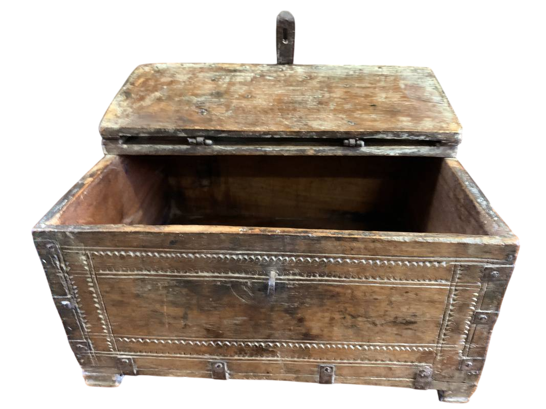 Antica scatola in legno di teak antico forziere d’epoca inizio 800