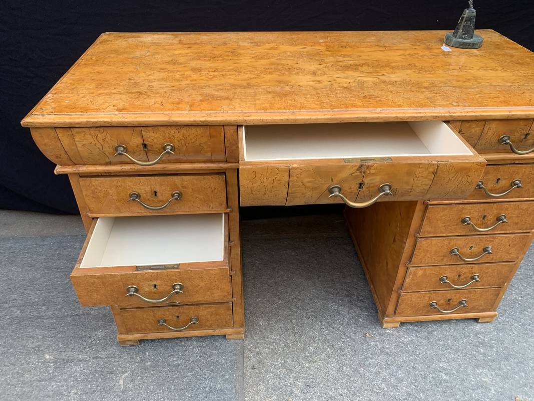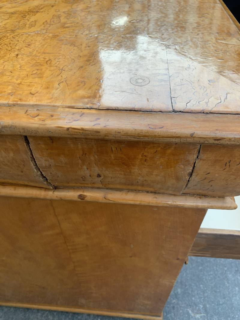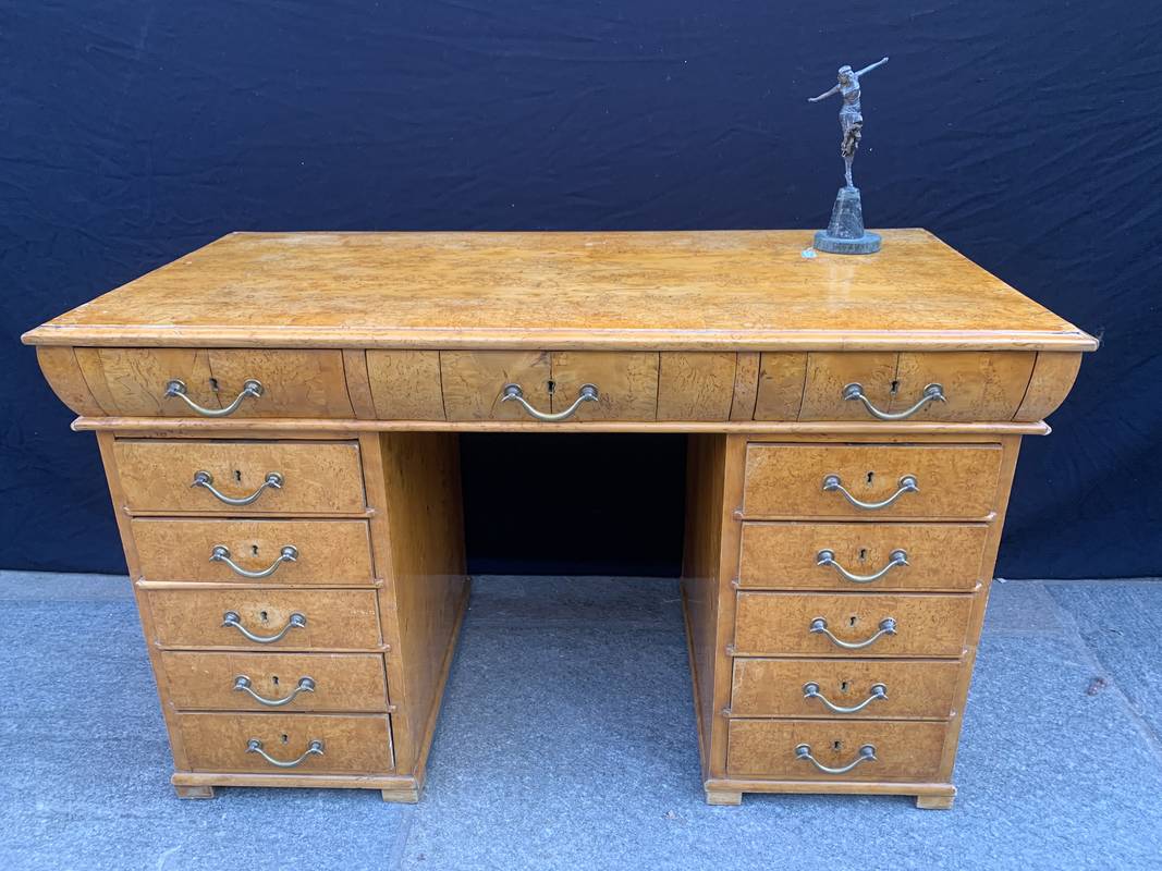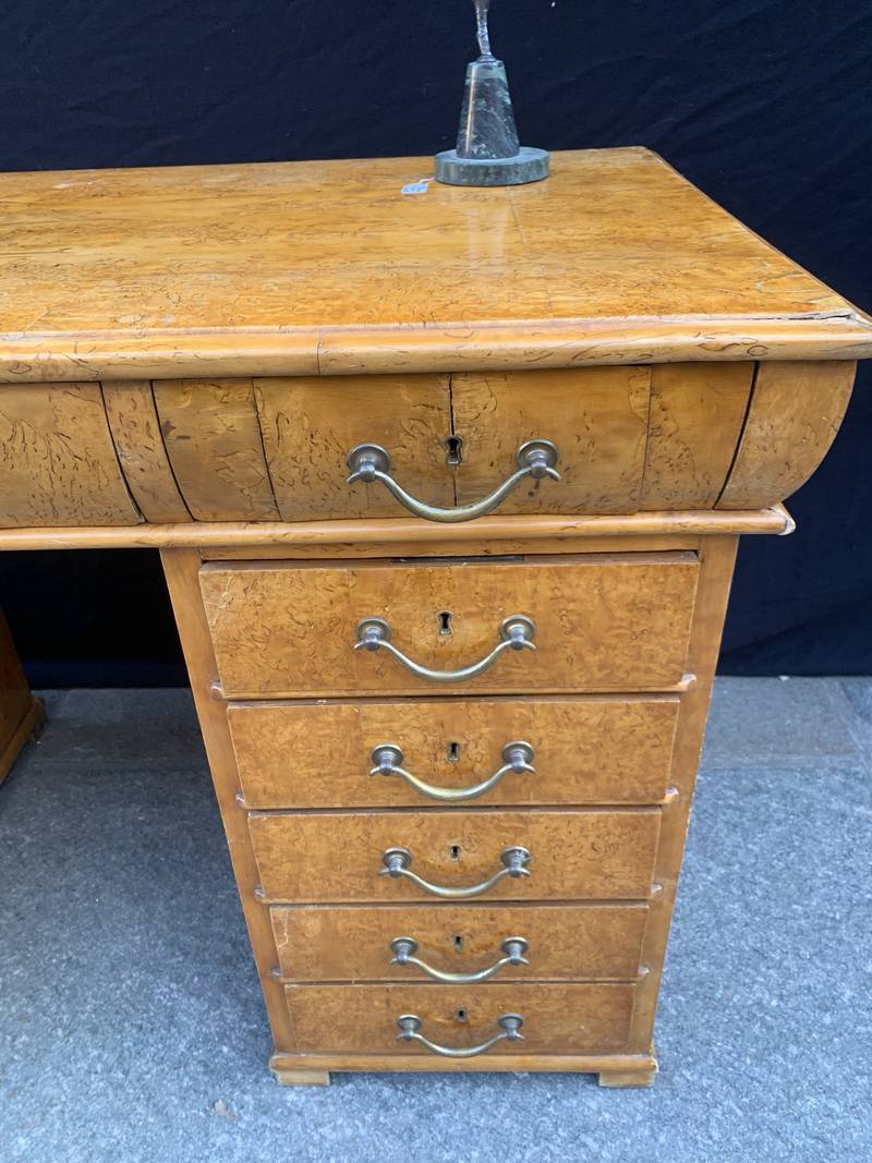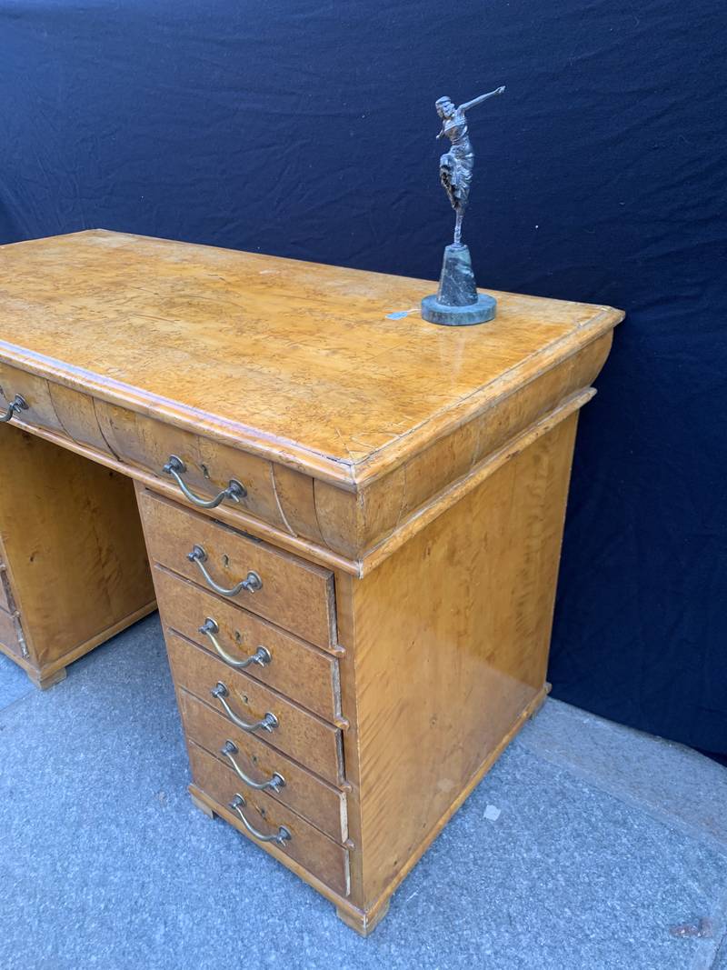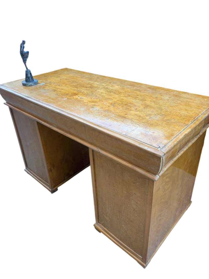 Antica scrivania in radica di acero Biedermeier inizi XX secolo