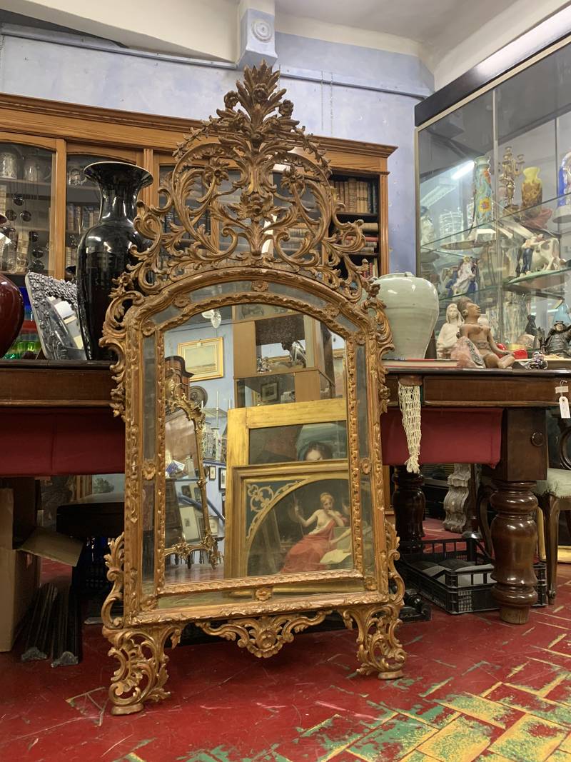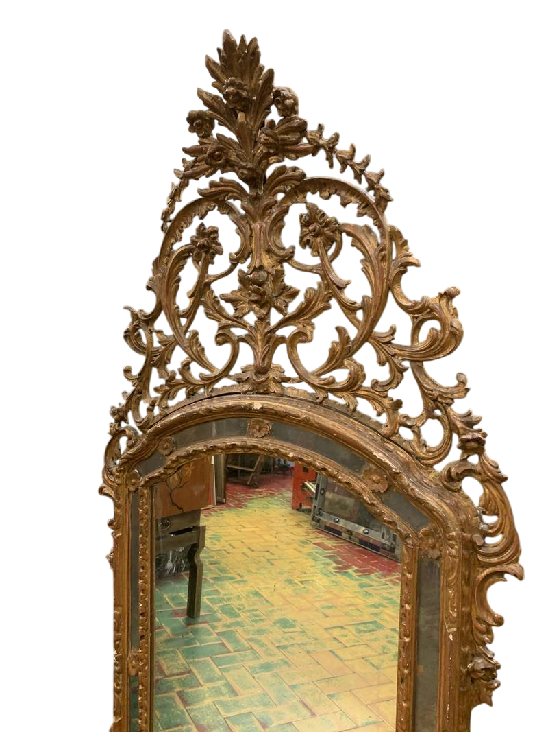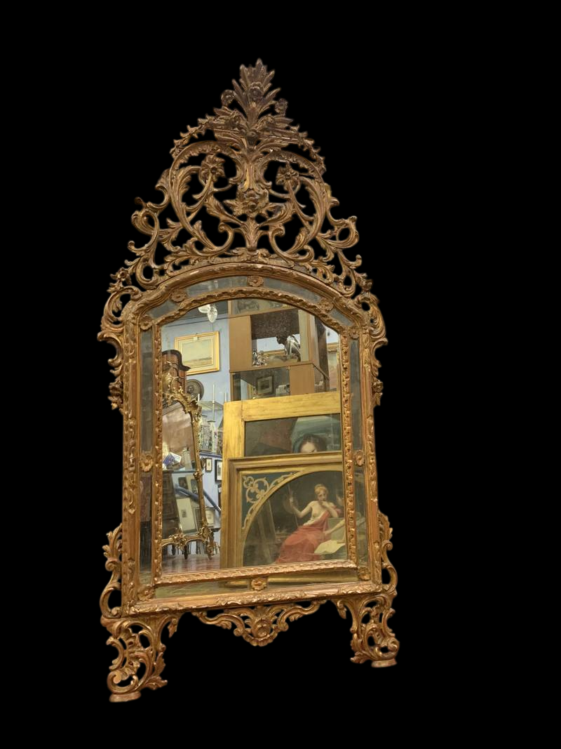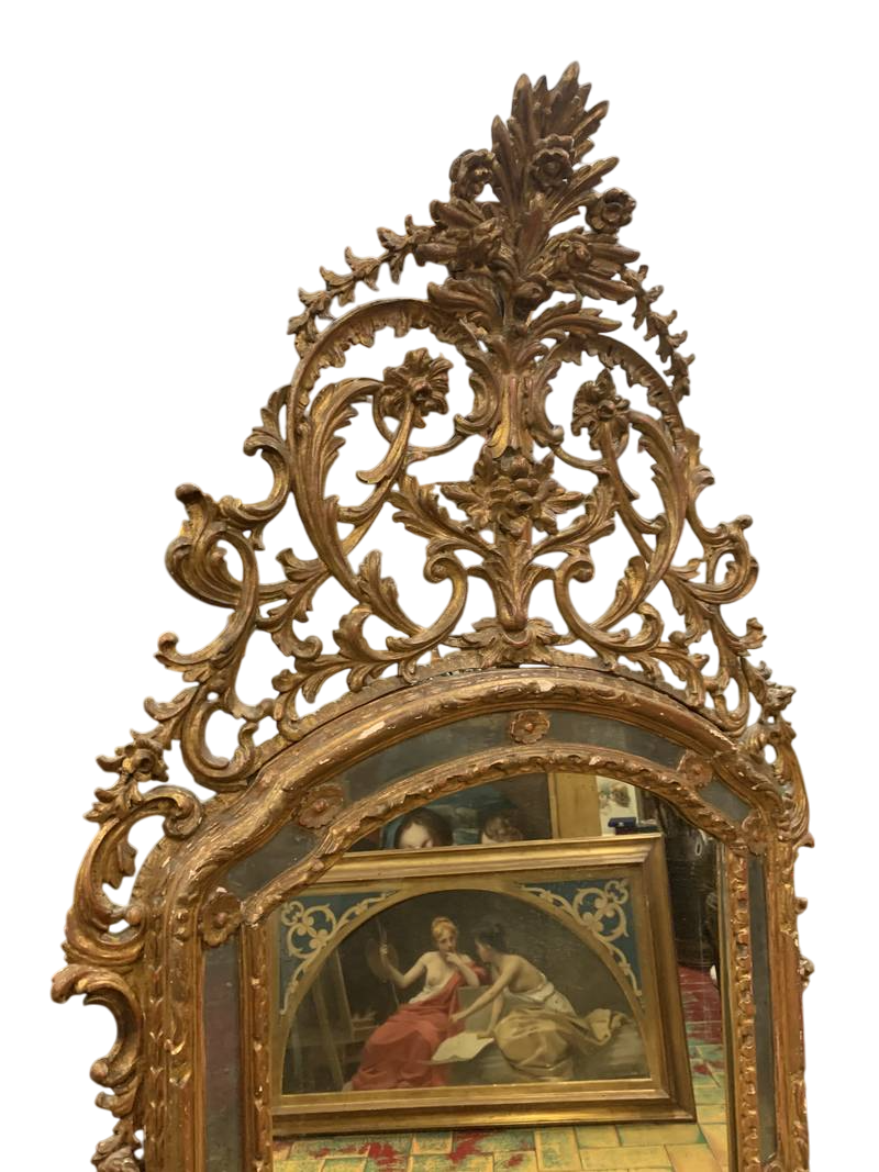 Antica specchiera stile Luigi XVI con cornice in legno scolpito e dorato epoca XX sec