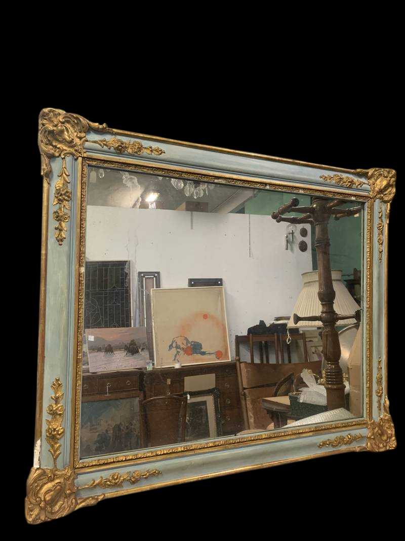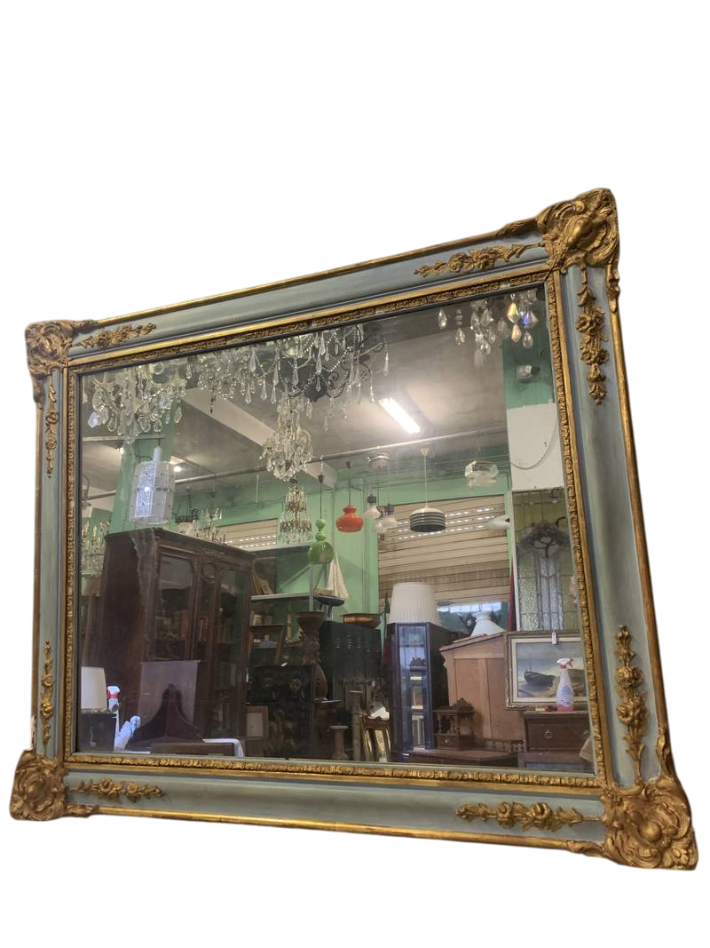 Antica specchiera francese lacca azzurra ed oro epoca XIX secolo