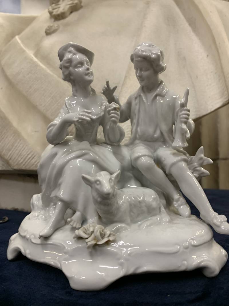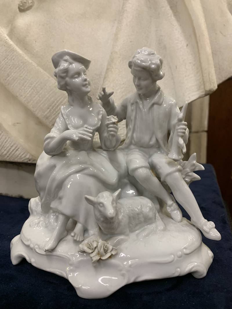 Antica statuina porcellana bianca pastorelli con agnello Unter Weiss Bach