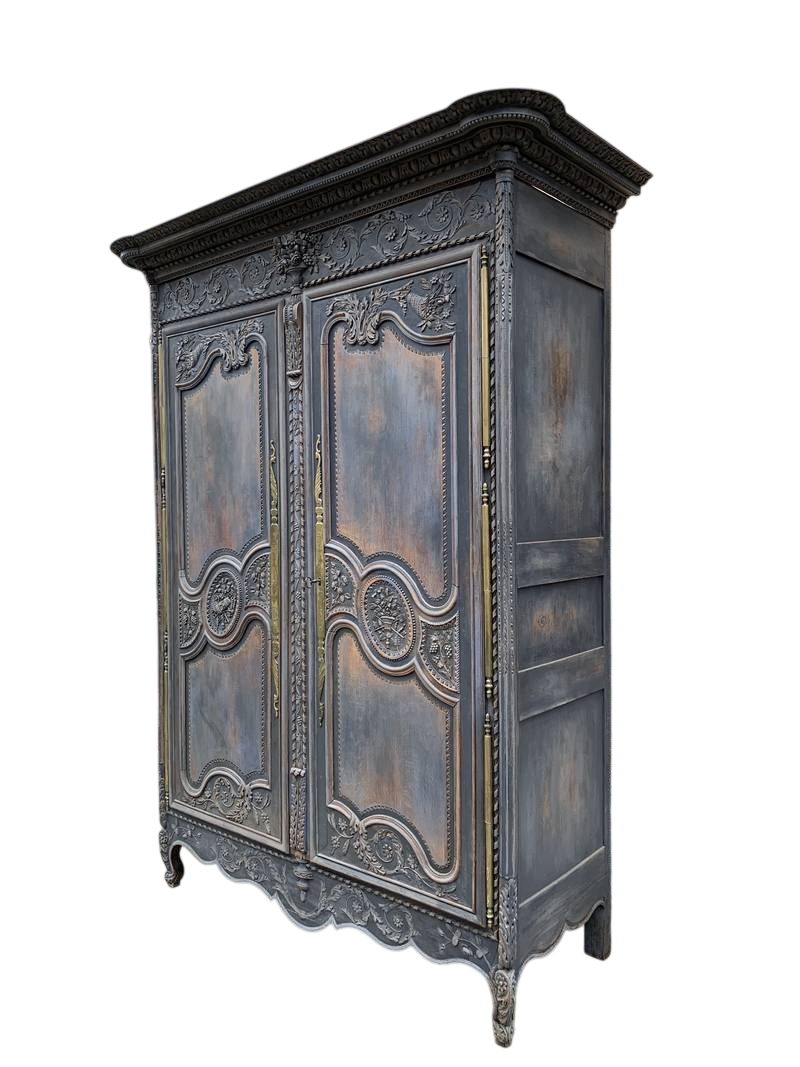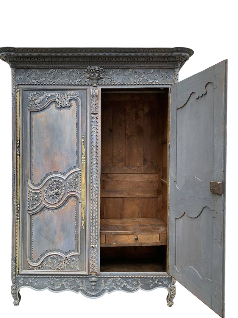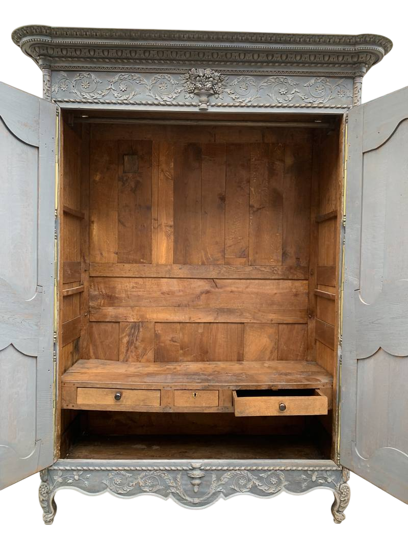 Antico armadio a due ante credenza lacca blu epoca 700 provenienza Alta Savoia