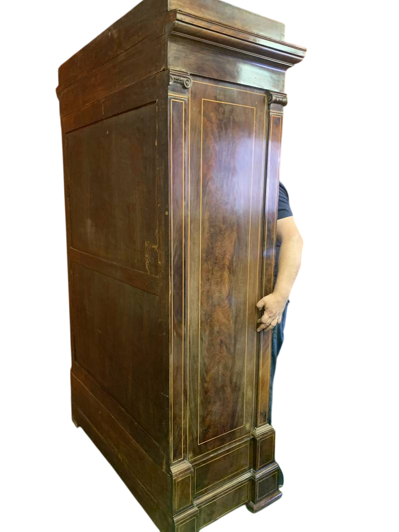 Antico armadio ad un’anta dell’800 in legno di palissandro massello filettato finemente