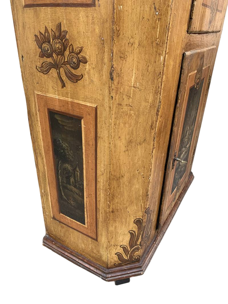 Antico armadio Tirolese laccato e dipinto epoca fine del 700