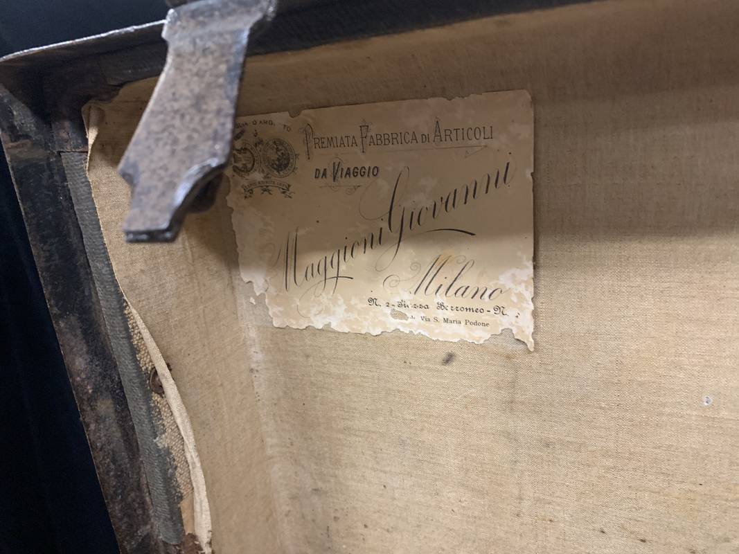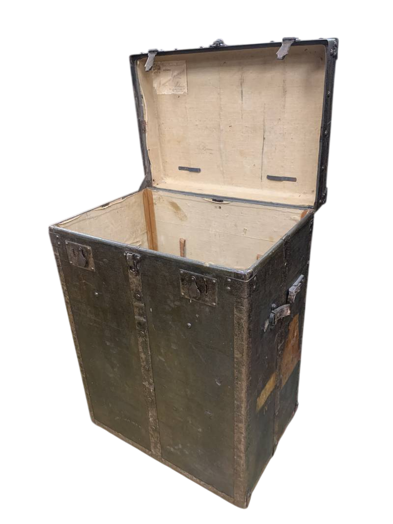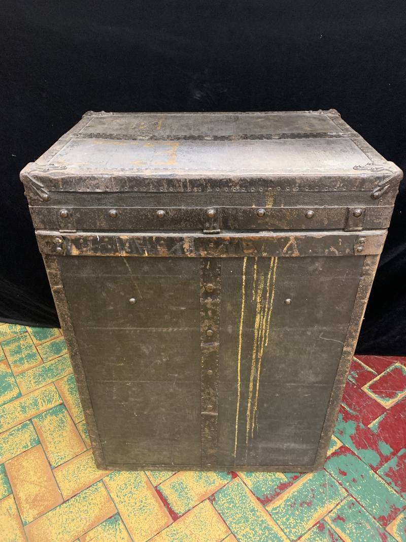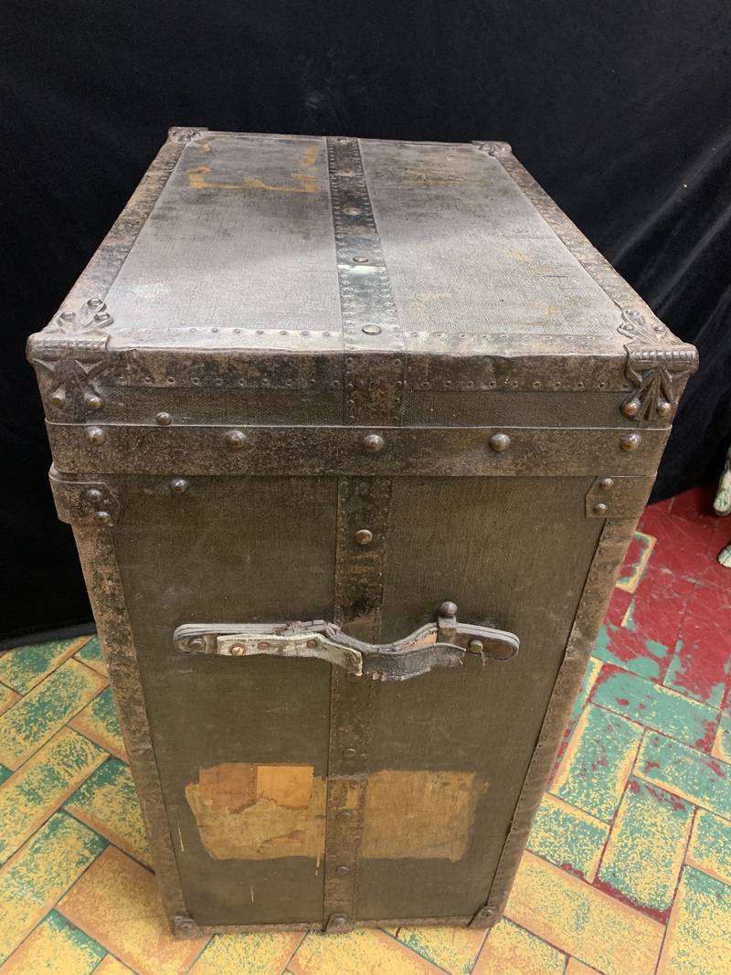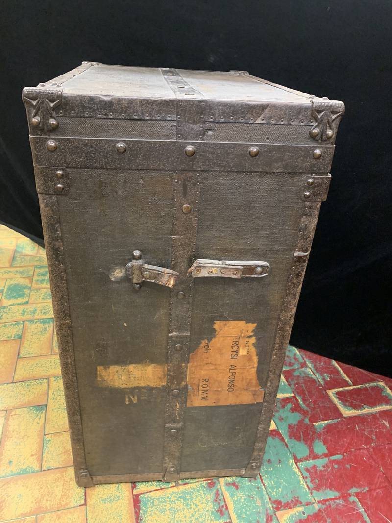 Antico baule da viaggio inizi del 900 legno tela maniglie in cuoio