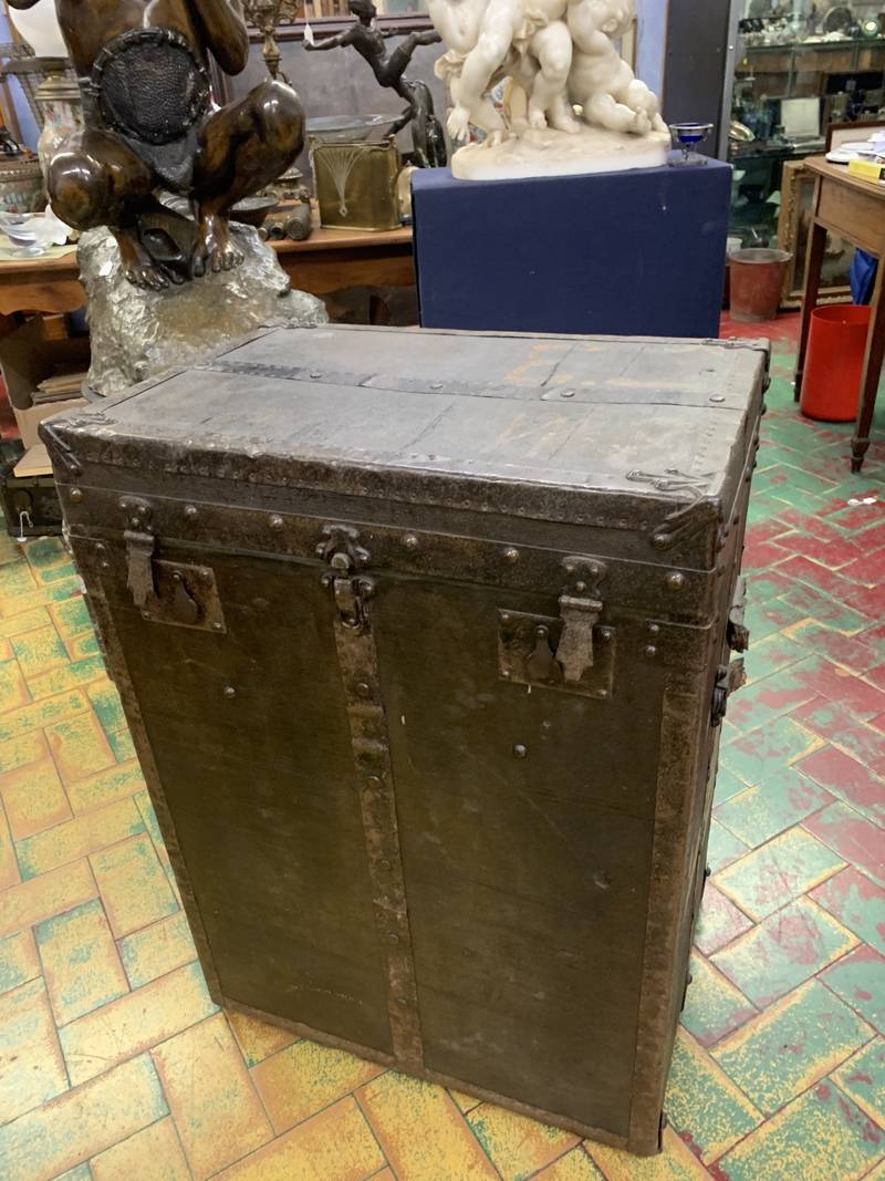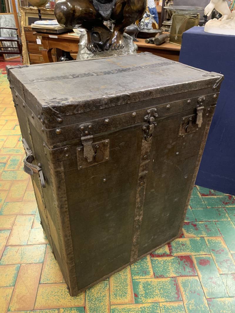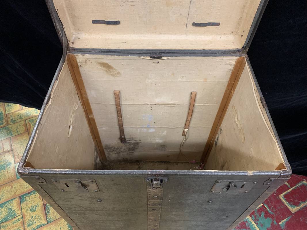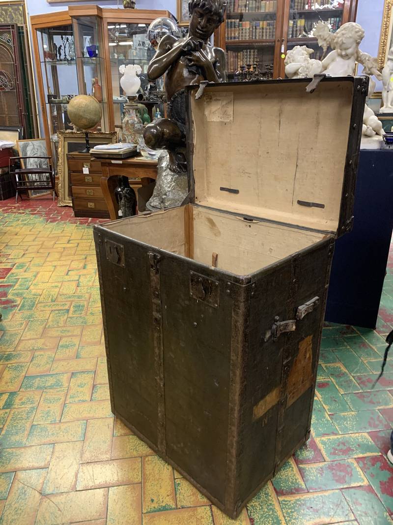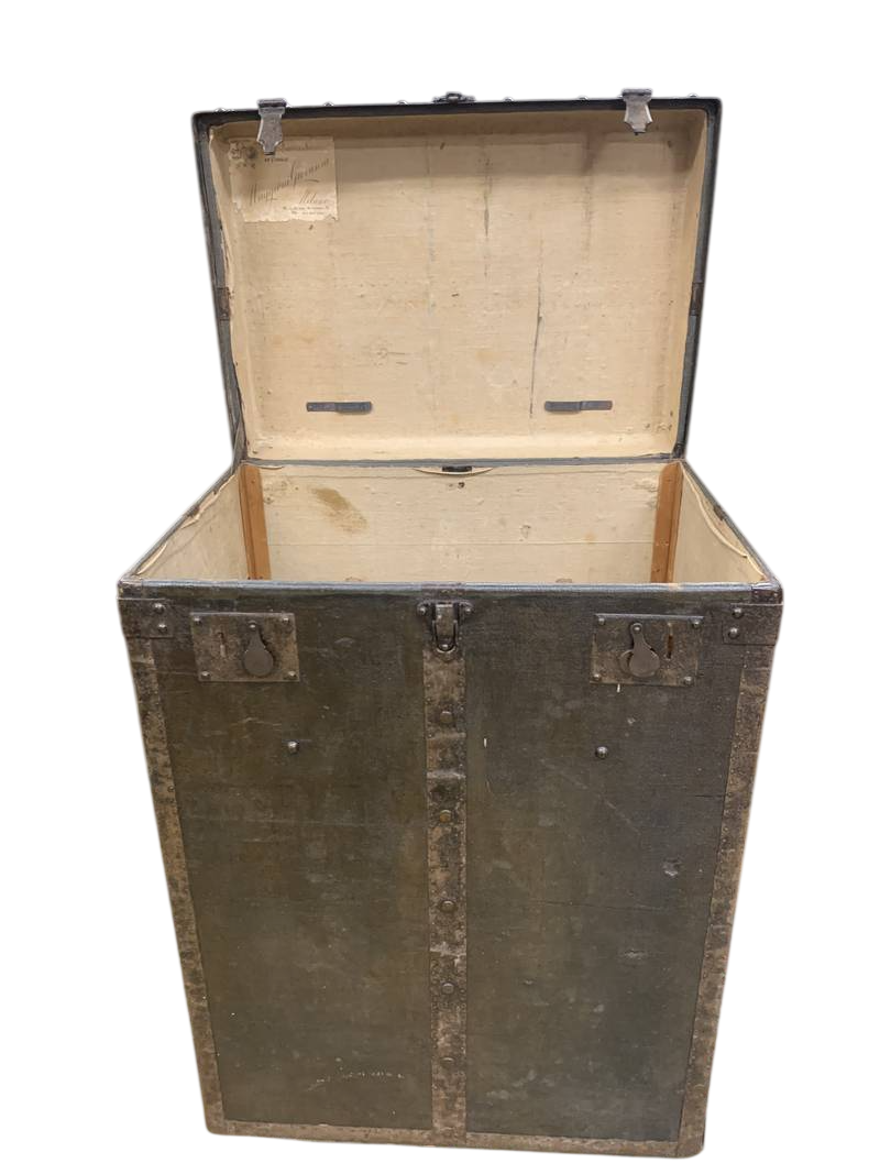 Antico baule da viaggio inizi del 900 legno tela maniglie in cuoio