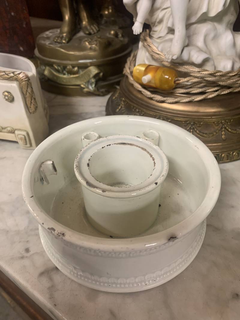 Originale antico calamaio in terraglia smaltata bianca dell’800 Old Paris