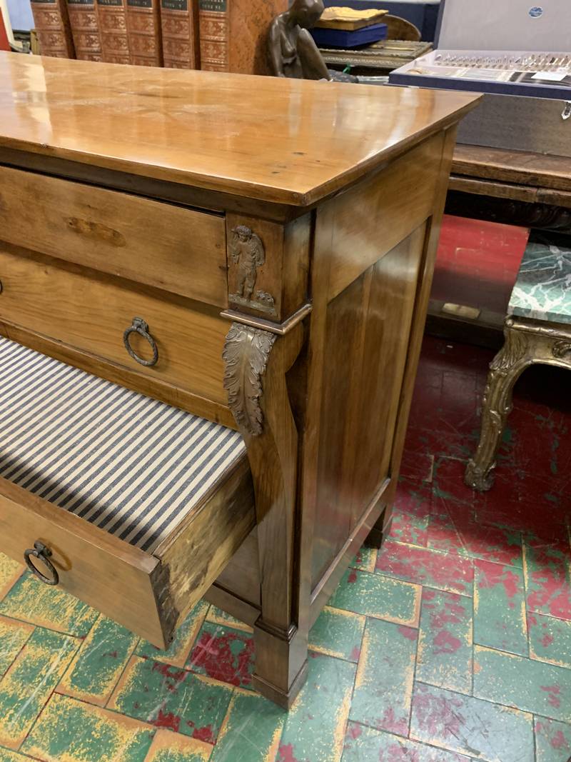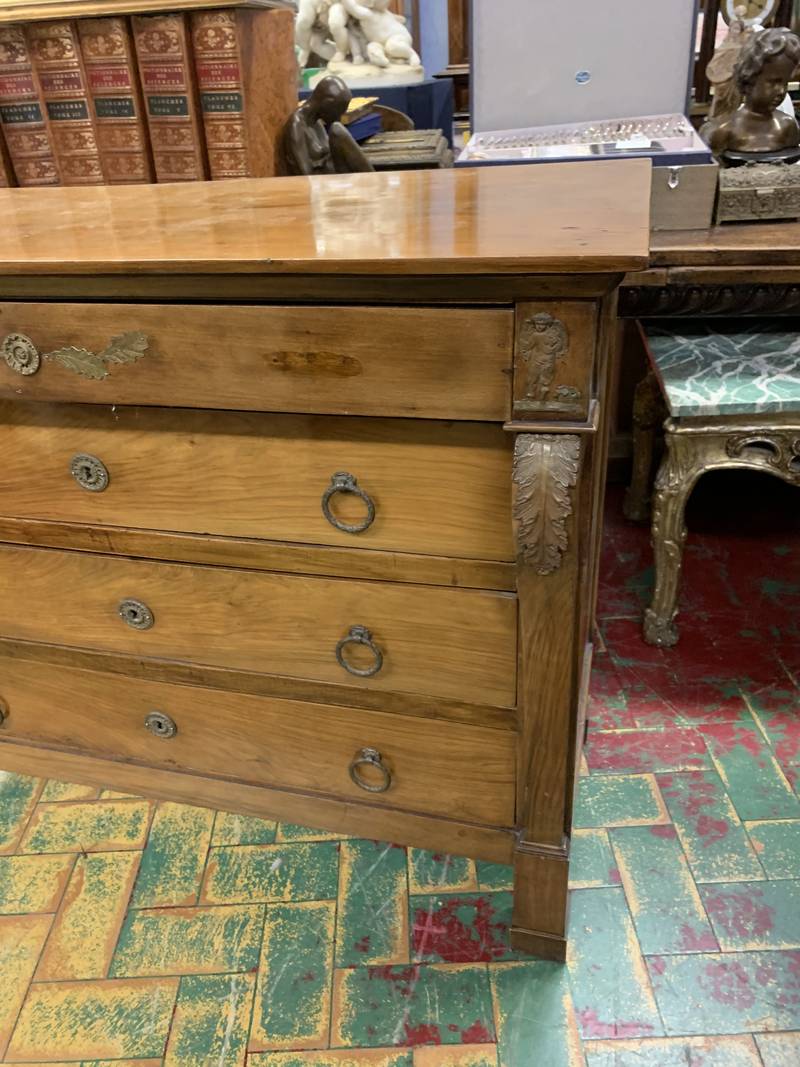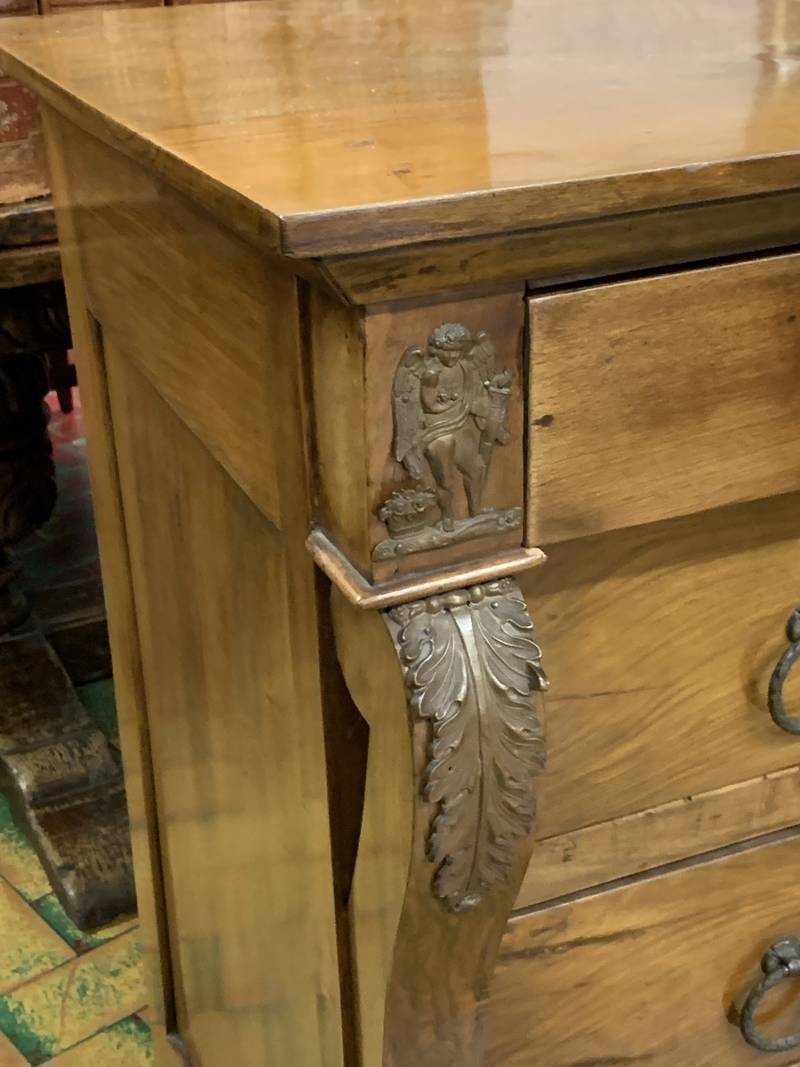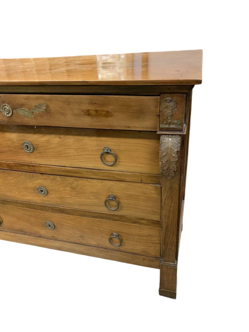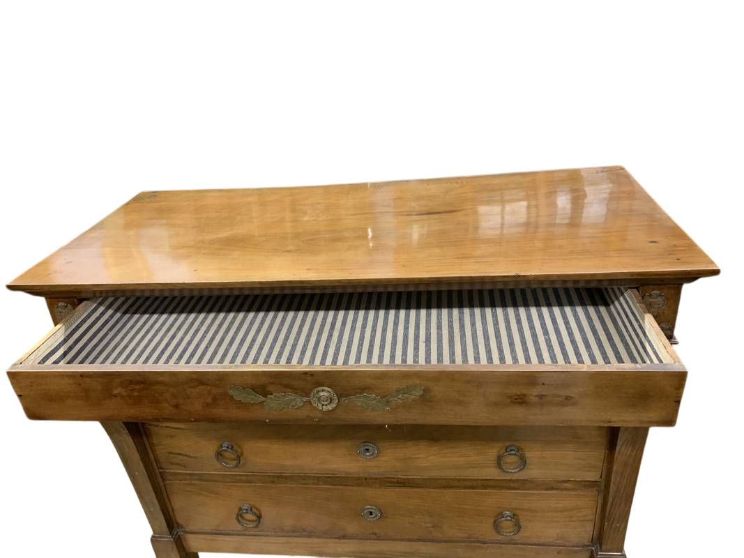Antico cassettone Impero in noce con bretelle epoca XIX secolo in ciliegio