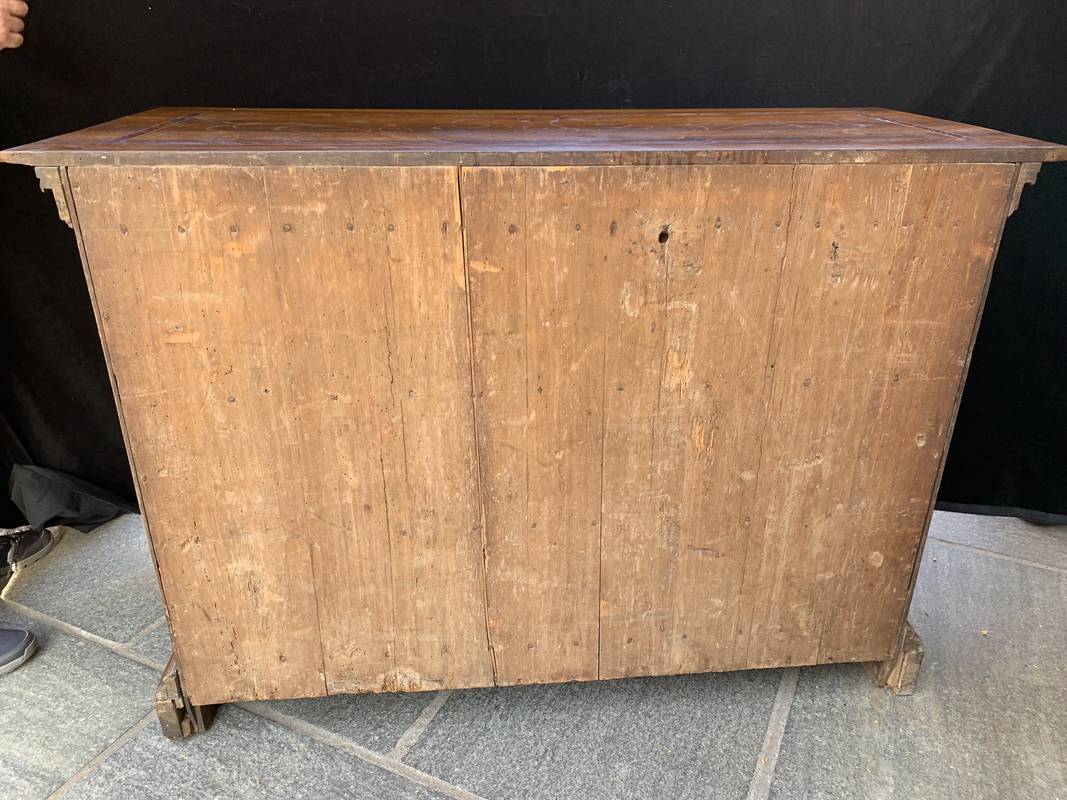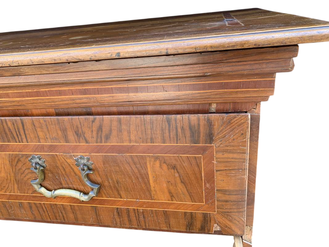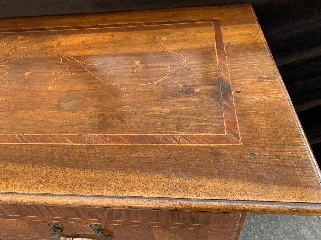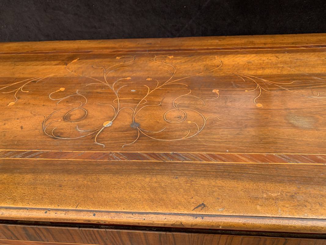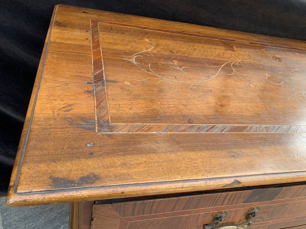 Antico Cassettone in noce lastronato ed intarsiato del 700 lombardo