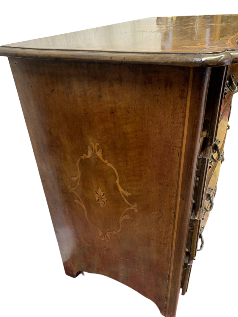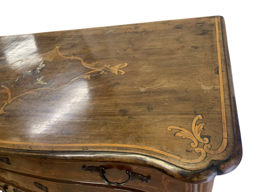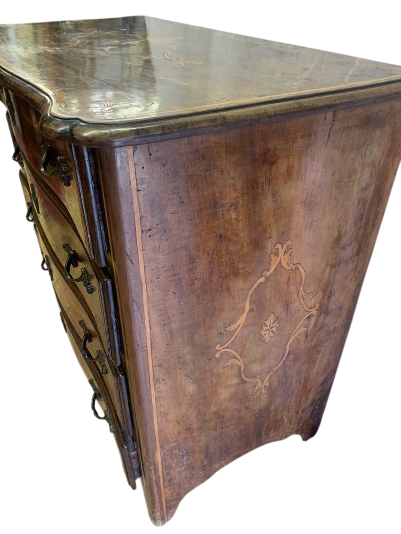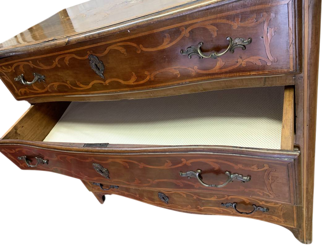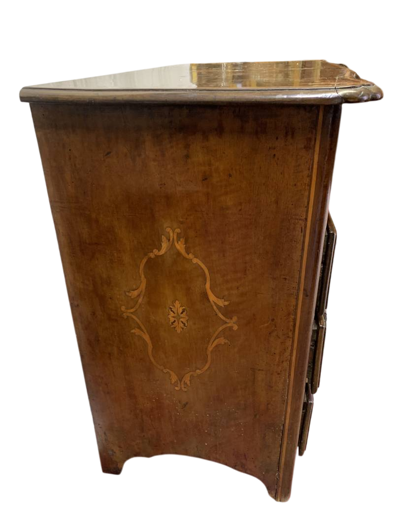Antico cassettone piemontese in noce del XVIII secolo intarsiato