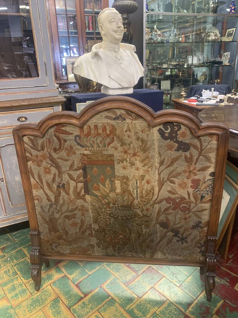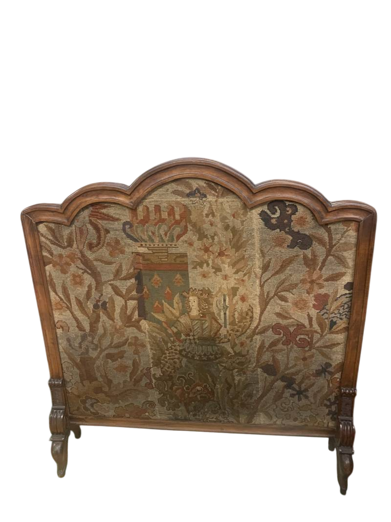 Antico davanti di camino dell’800 antico arazzo Parascintille in noce