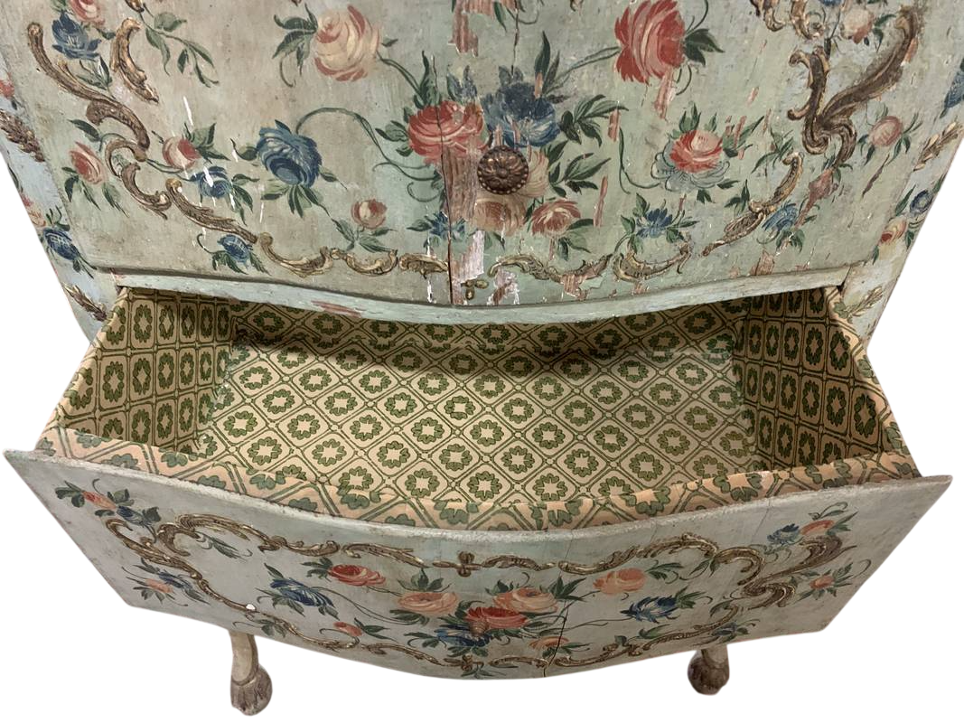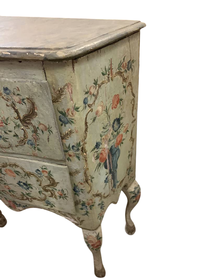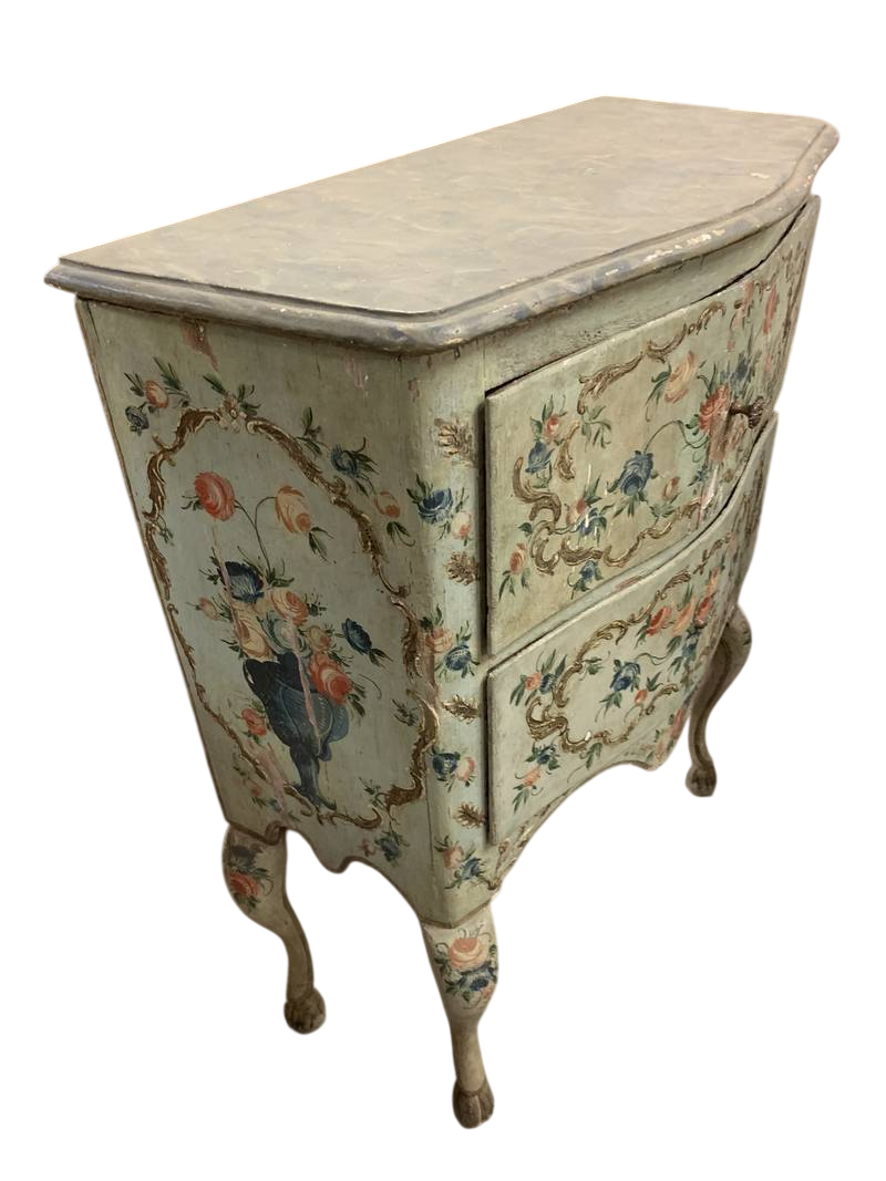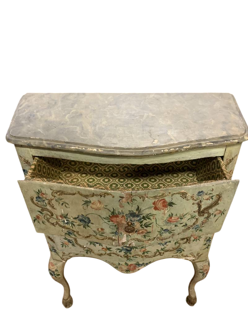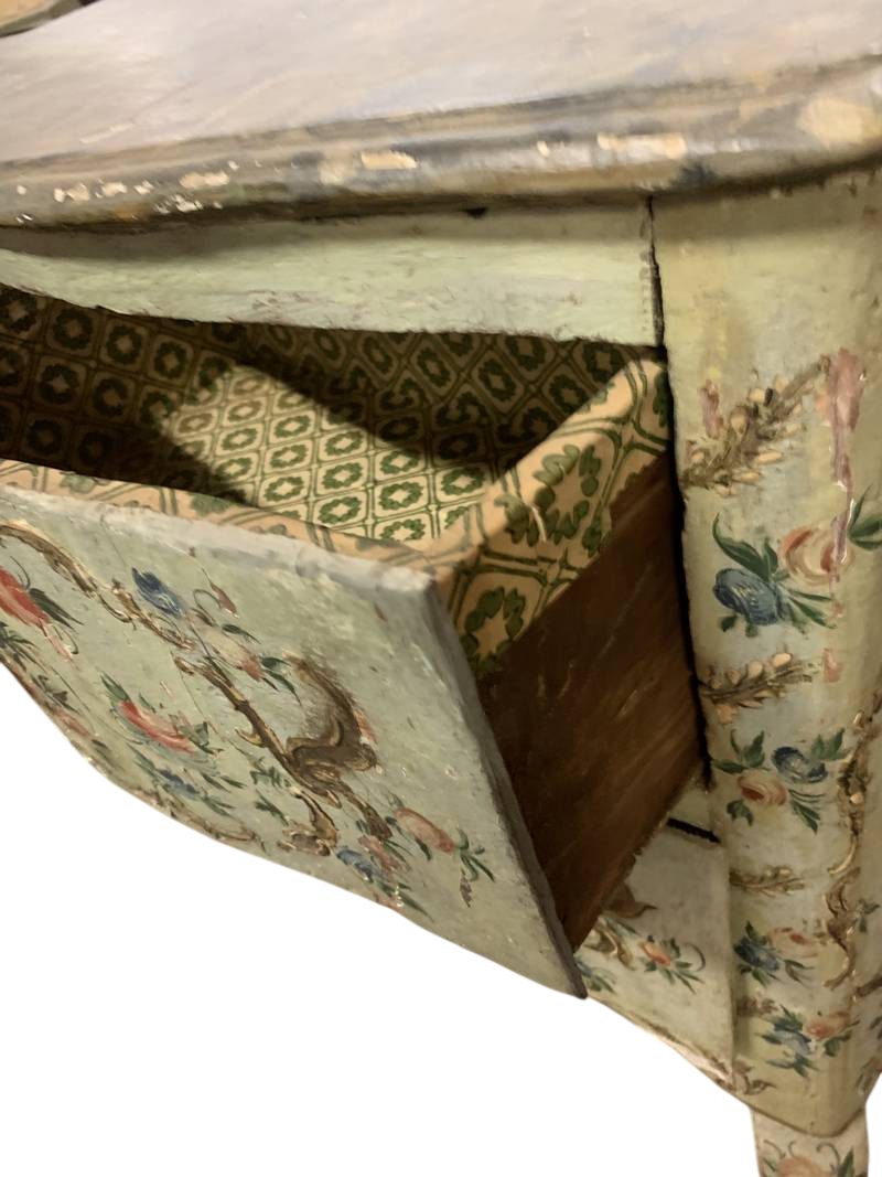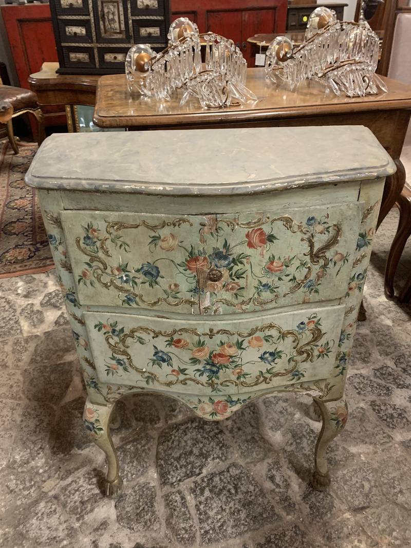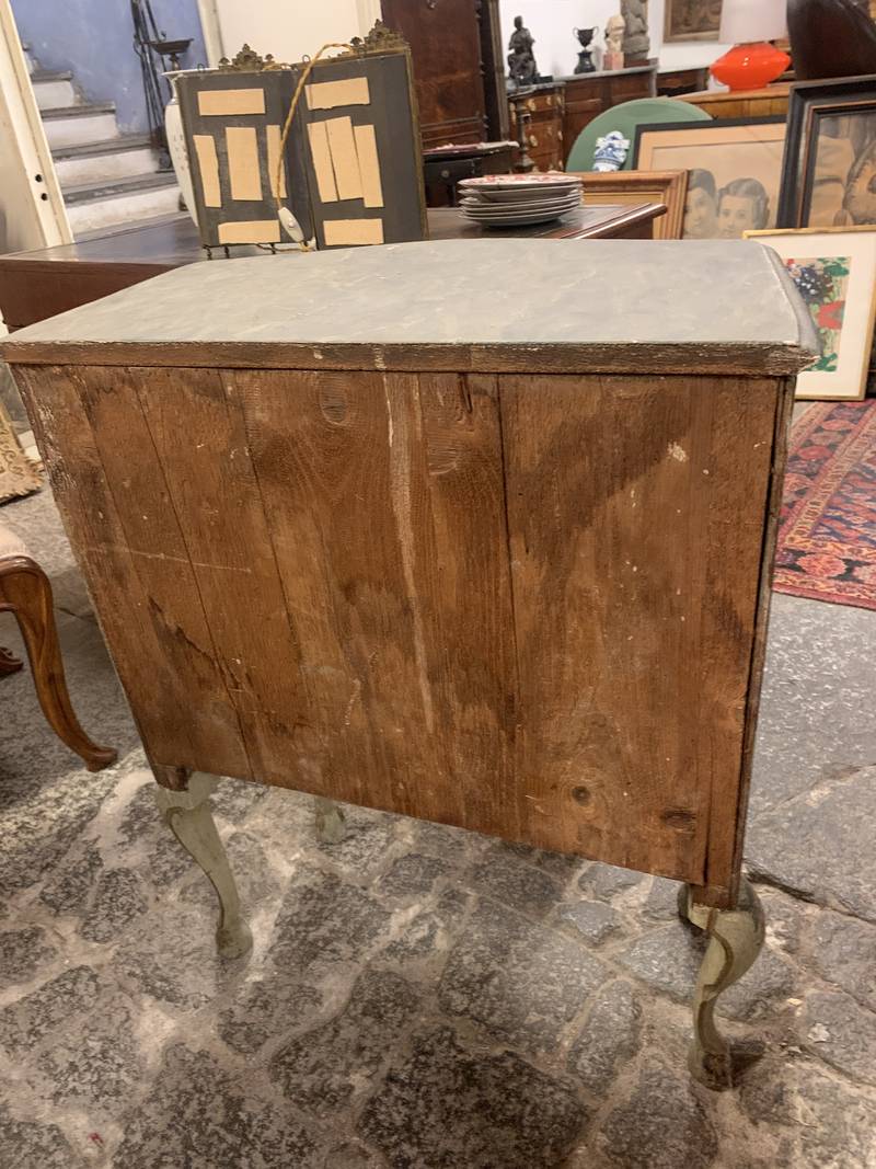 Antico e raro piccolo cassettone laccato e dipinto Genova epoca XVIII secolo