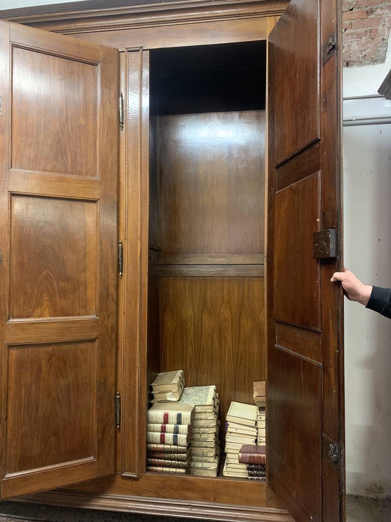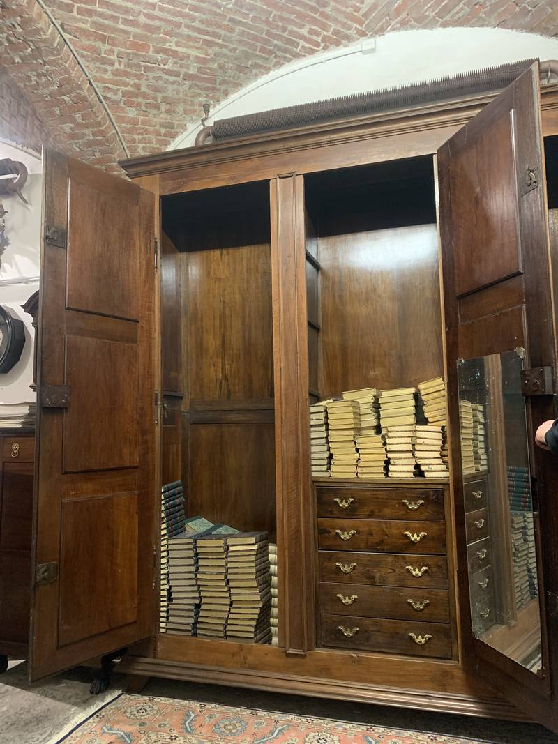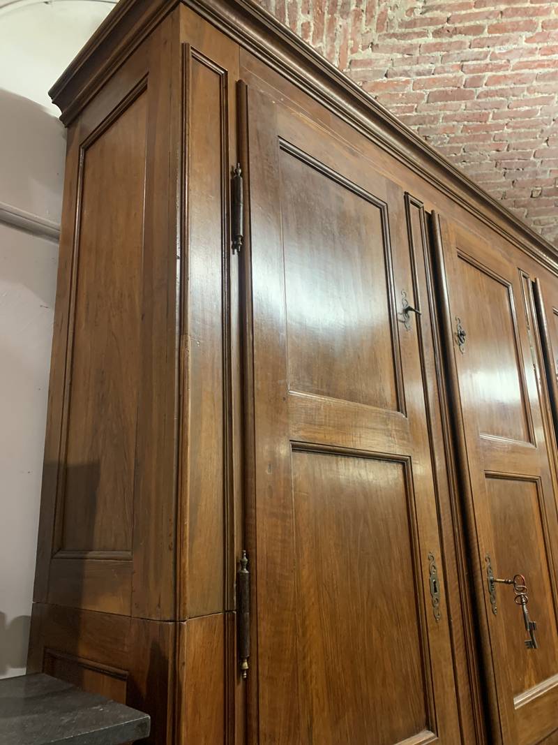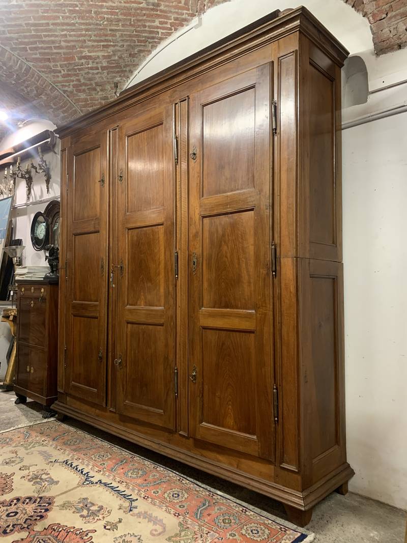 Antico grande armadio da sacrestia a 3 ante in noce epoca 700 Piemonte
