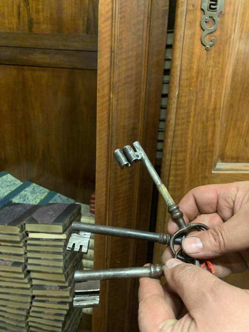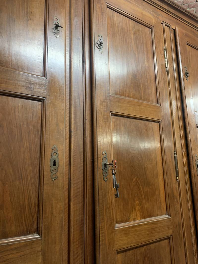 Antico grande armadio da sacrestia a tre grandi ante epoca XVIII secolo in noce a tre ante