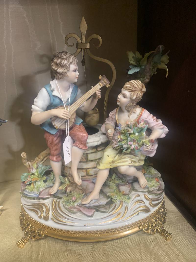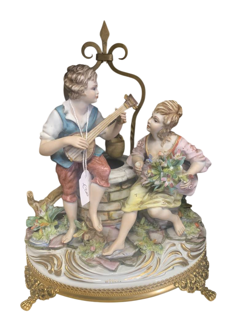 stupendo centrotavola in porcellana dell’ottocento sorretto da due grandi