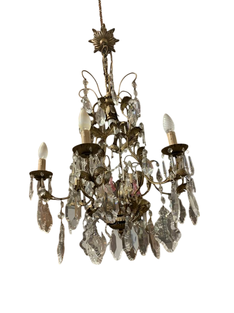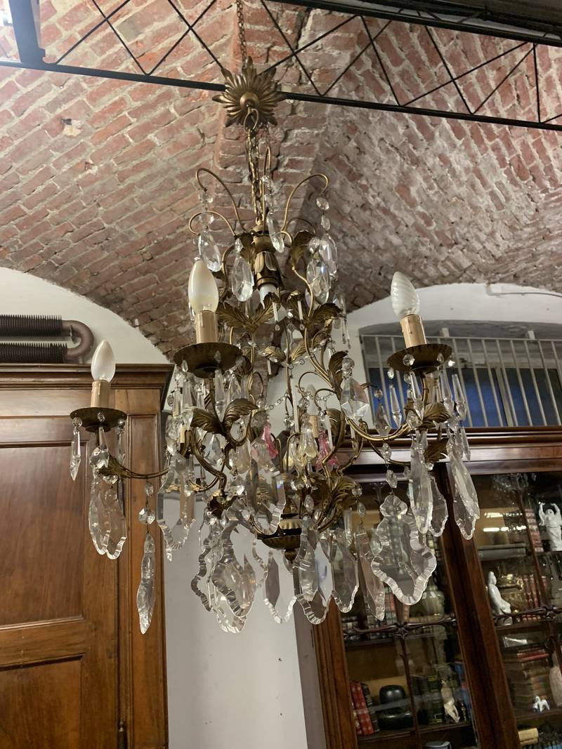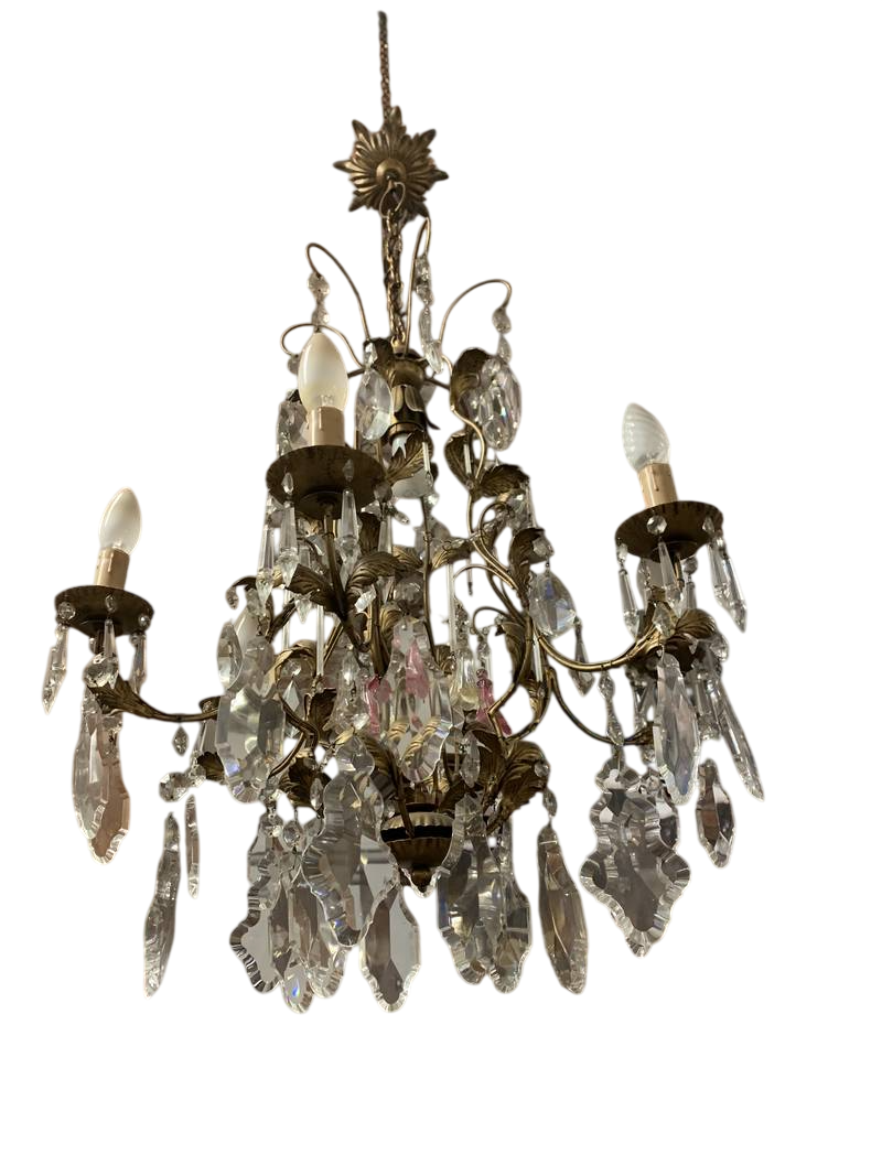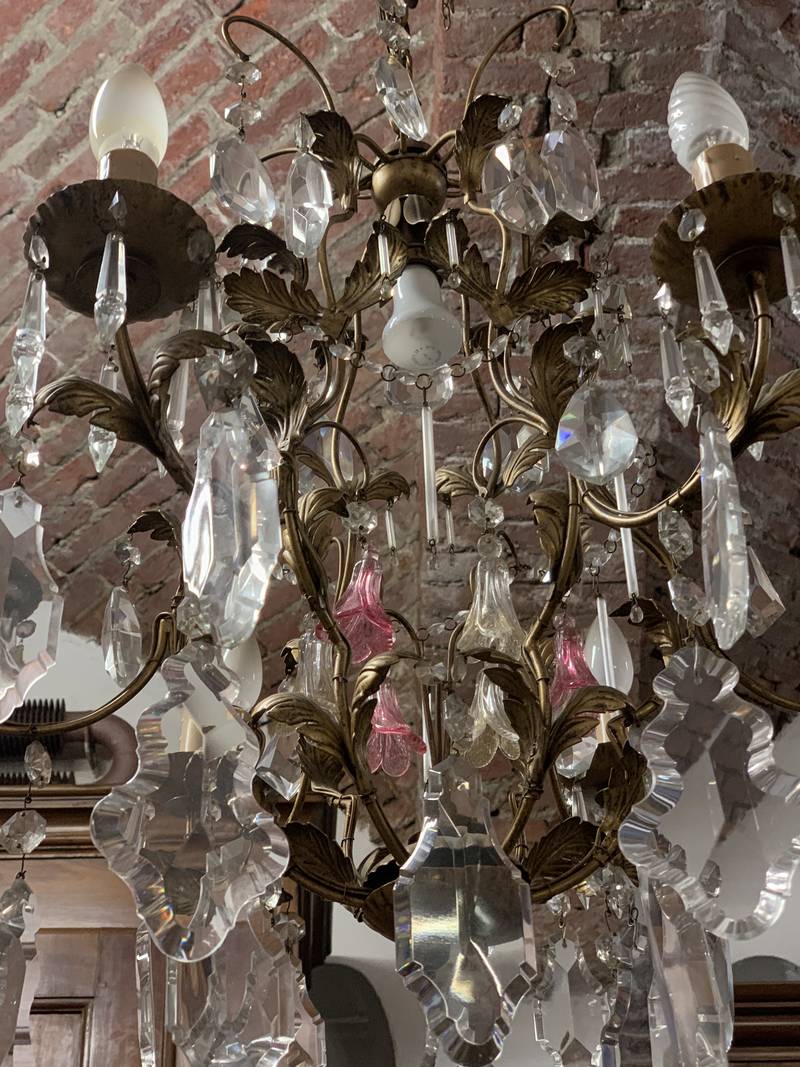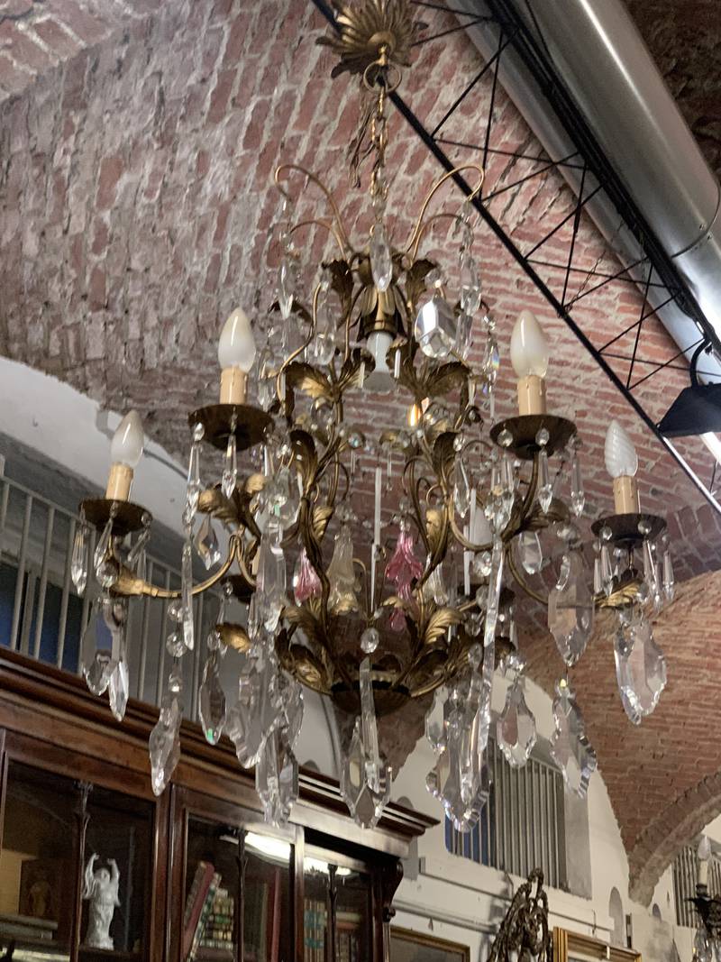 Bronzo dorato e pendenti in cristallo.con pendenti in cristallo alcuni colorati in rosa