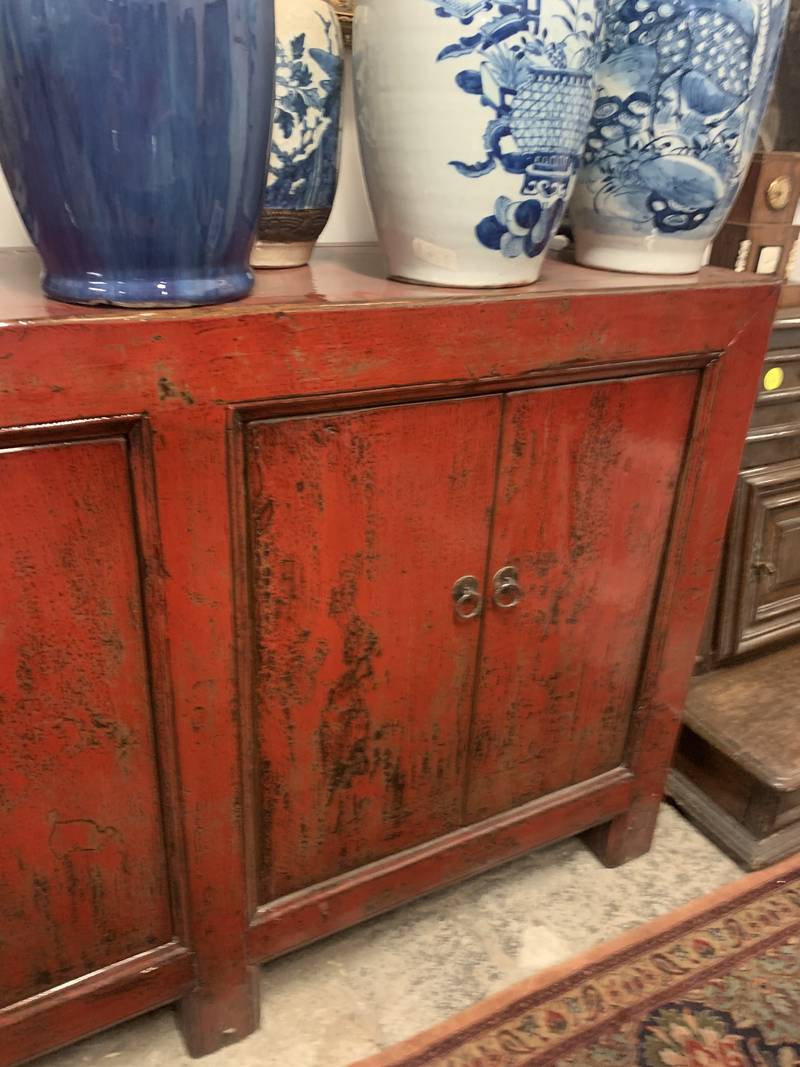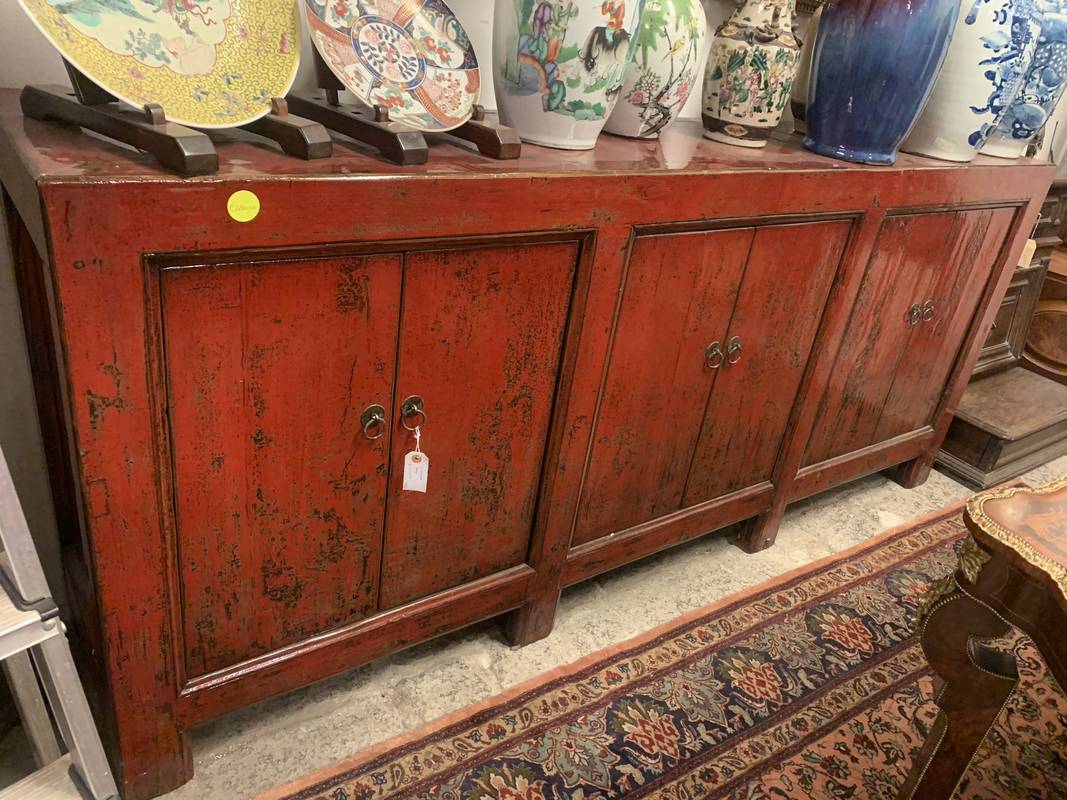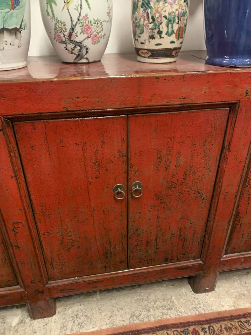 Antico mobile credenza Cina in lacca rossa 6 ante epoca XX secolo fayy