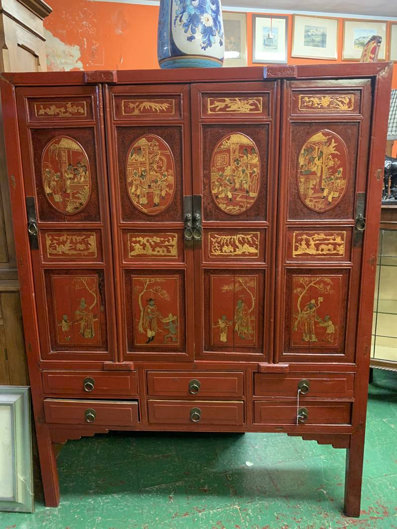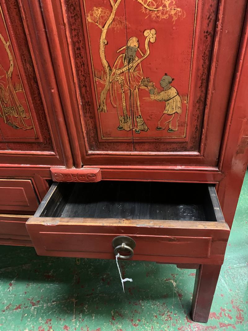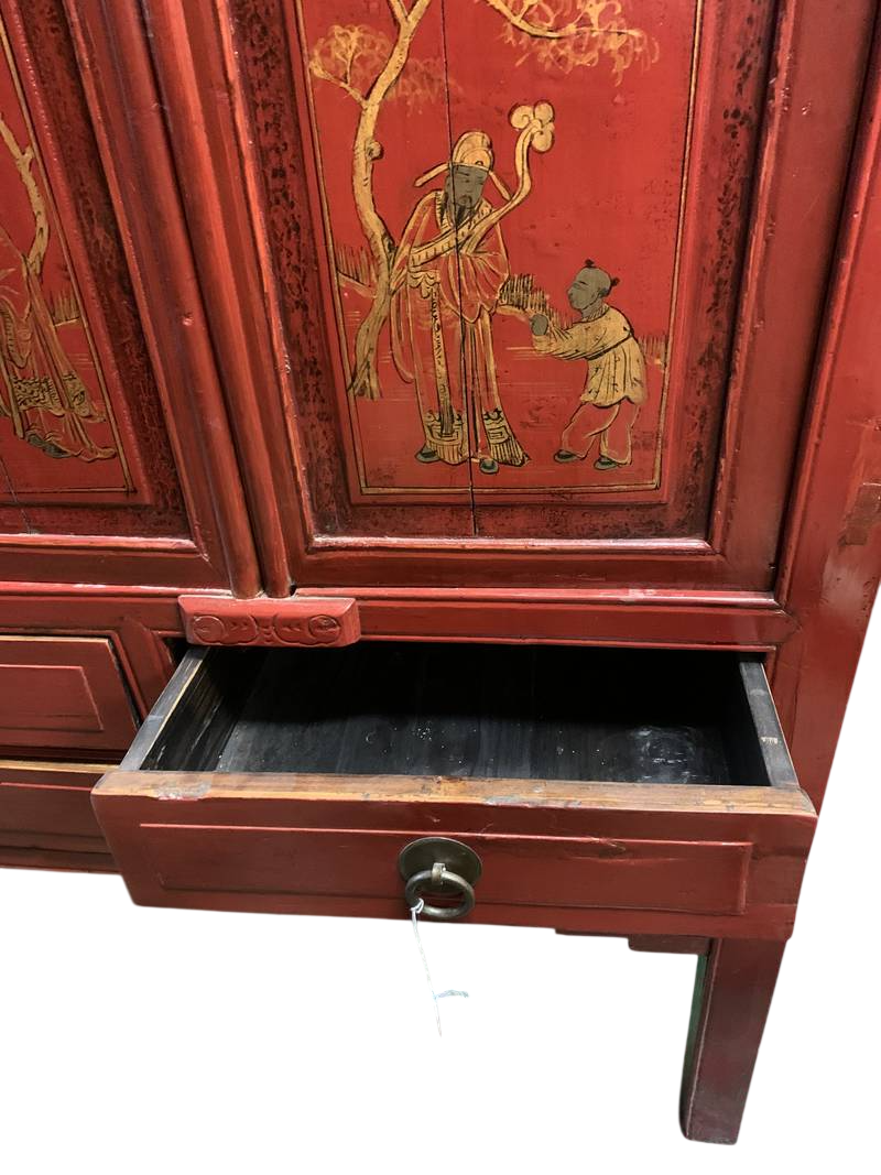 Antico mobile credenza Cina lacca rossa ed oro RYY