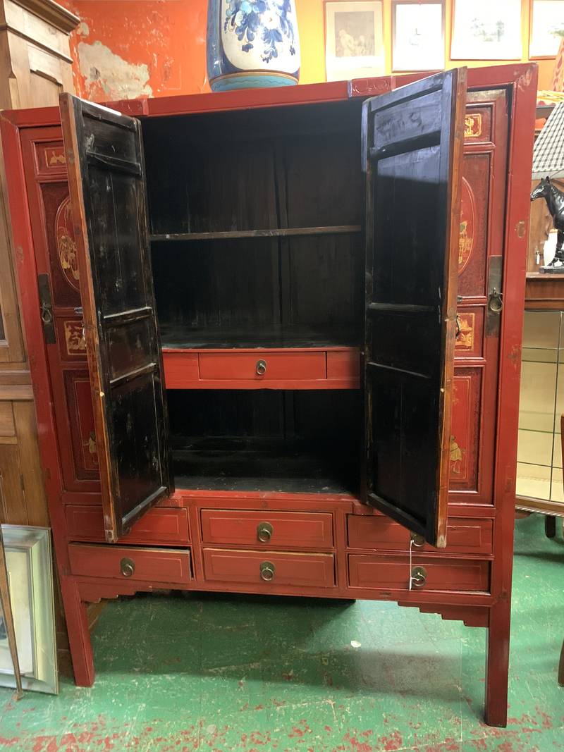 Antico armadio nuziale Cina in lacca rossa
