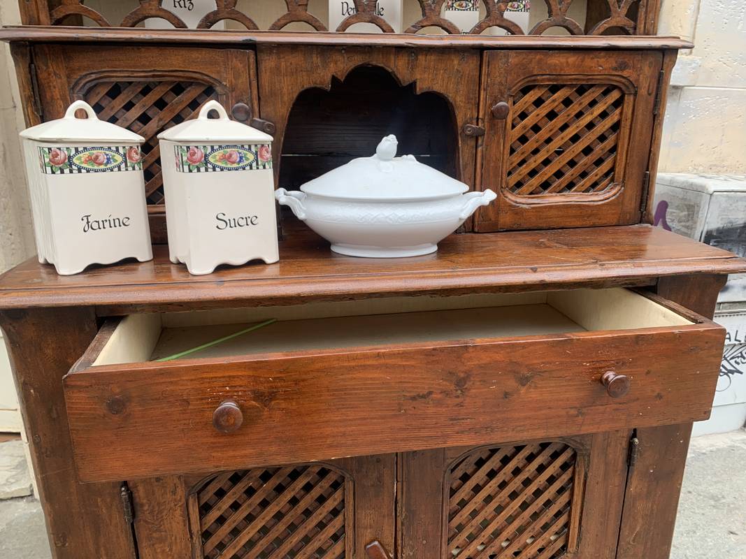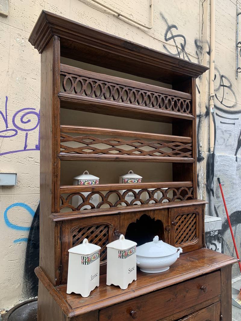 Antico mobile credenza piattaia Epoca XIX secolo in legno di frutto