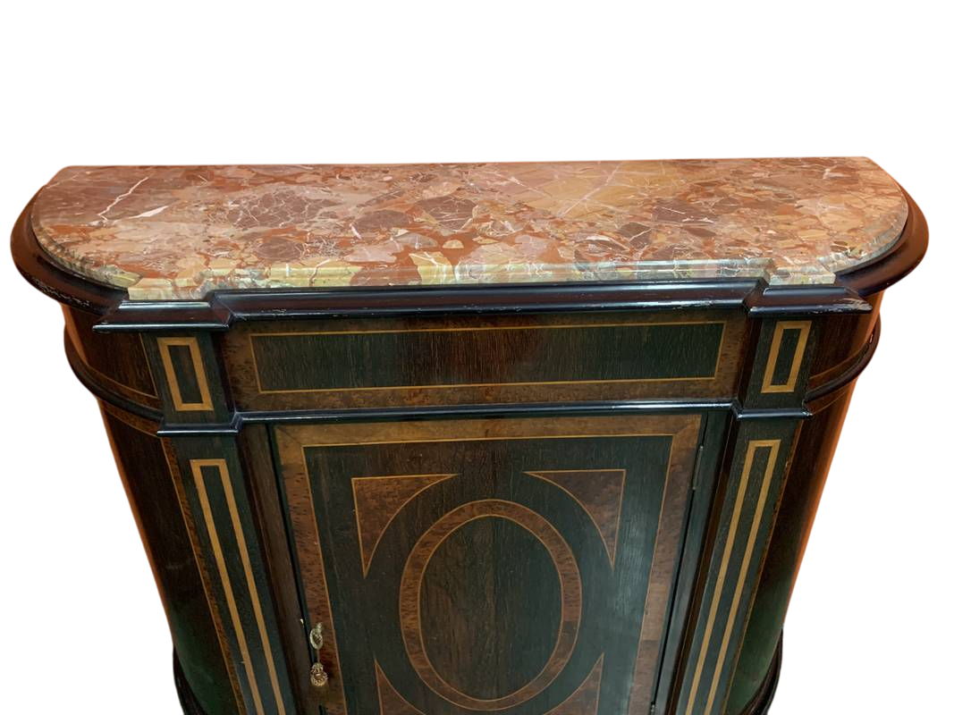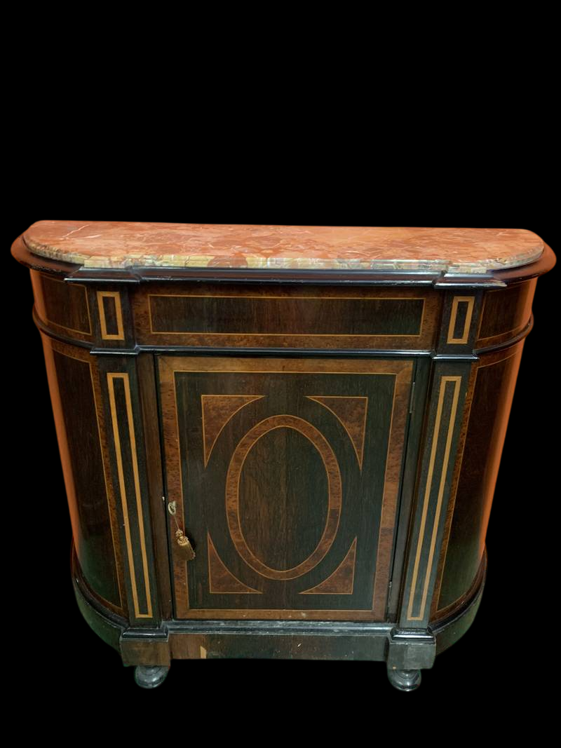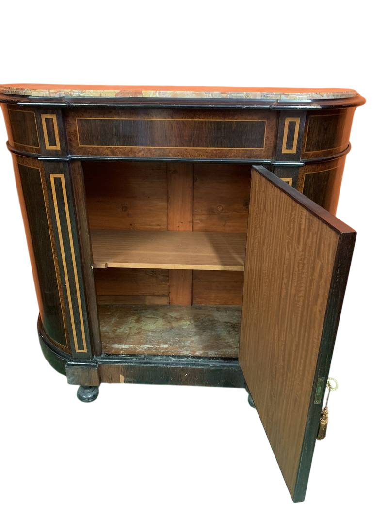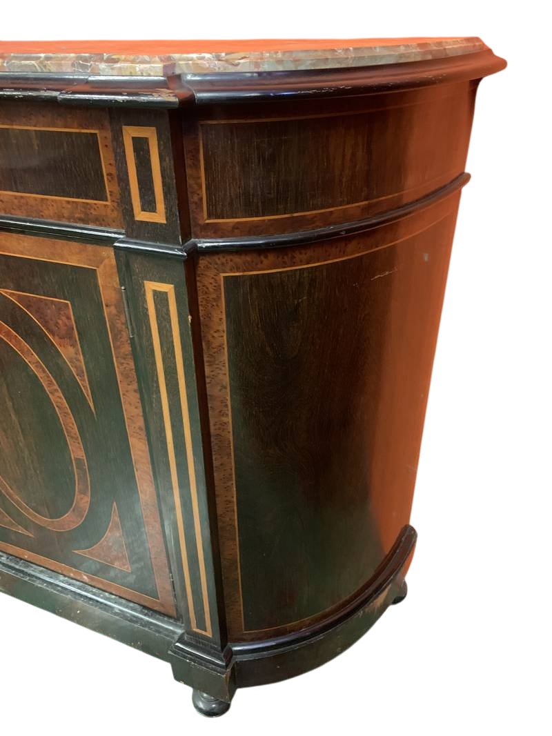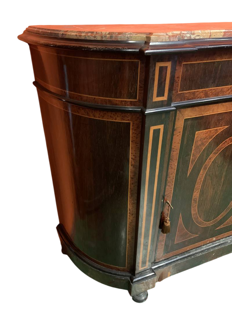 Antico mobile credenza servante francese lastronato ed intarsiato con piano in marmo meta’ del xx secolo