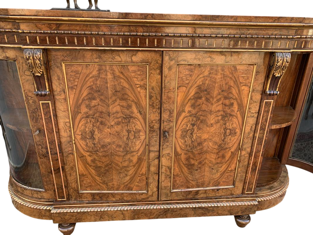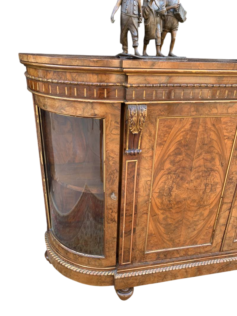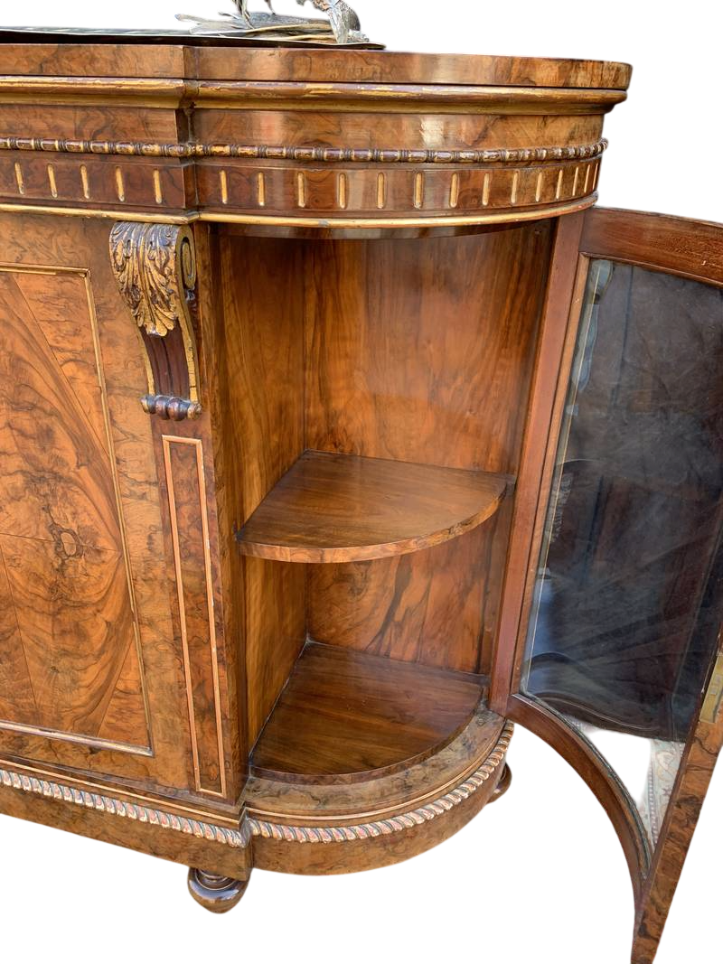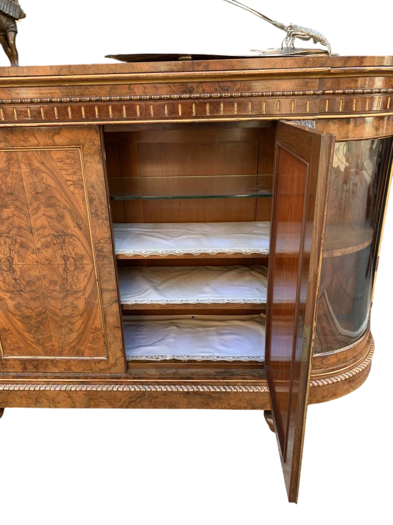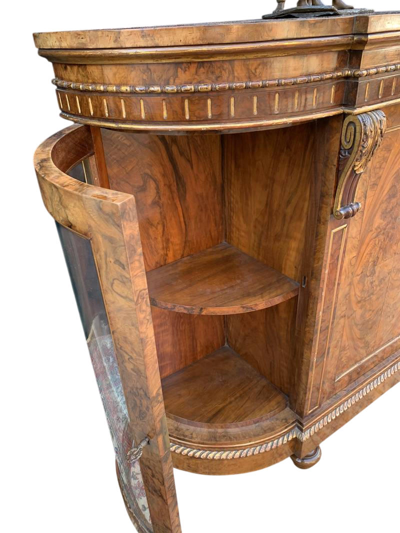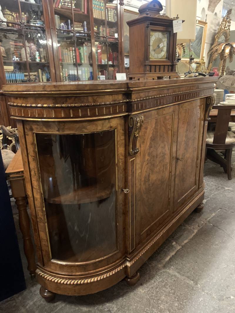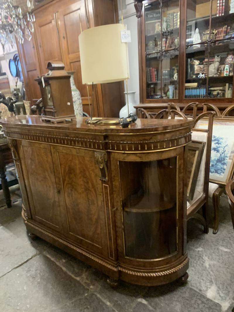 Antico mobile credenza servante inglese in radica con vetrina laterale Londra