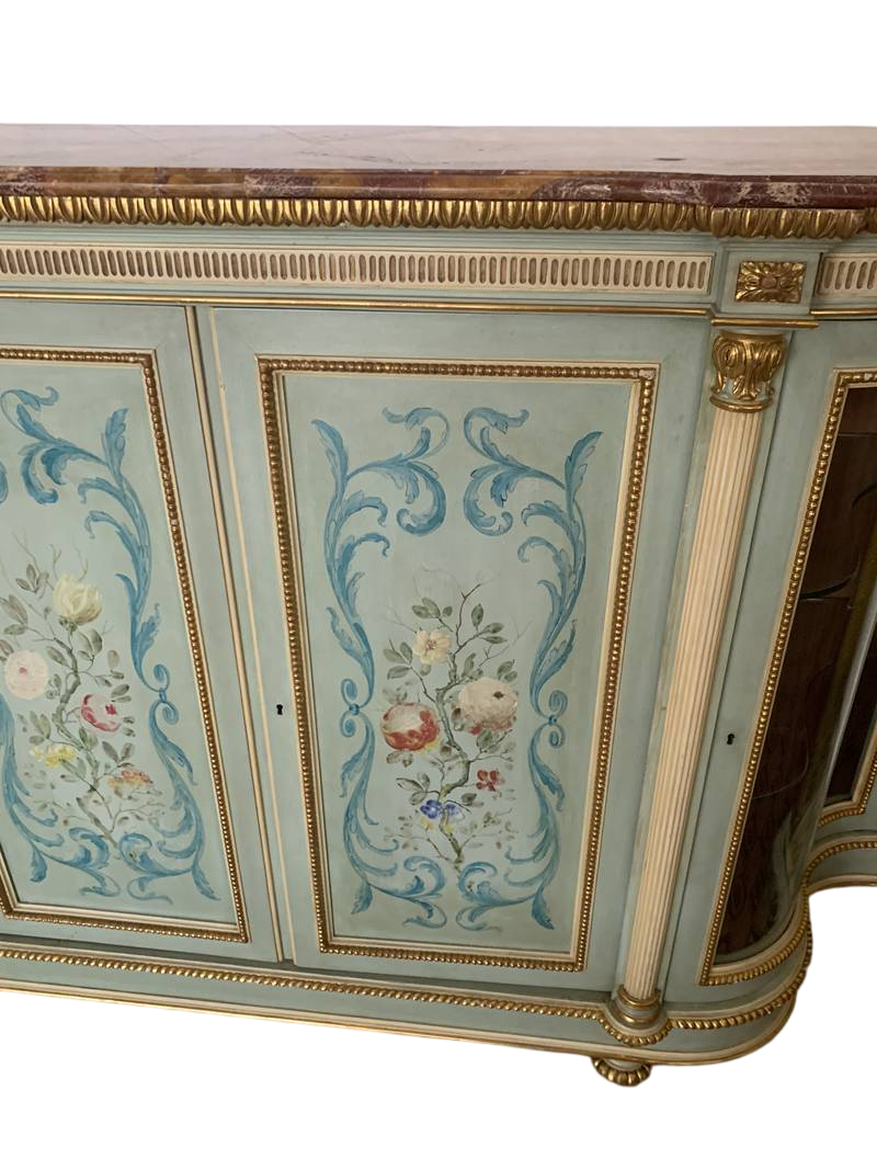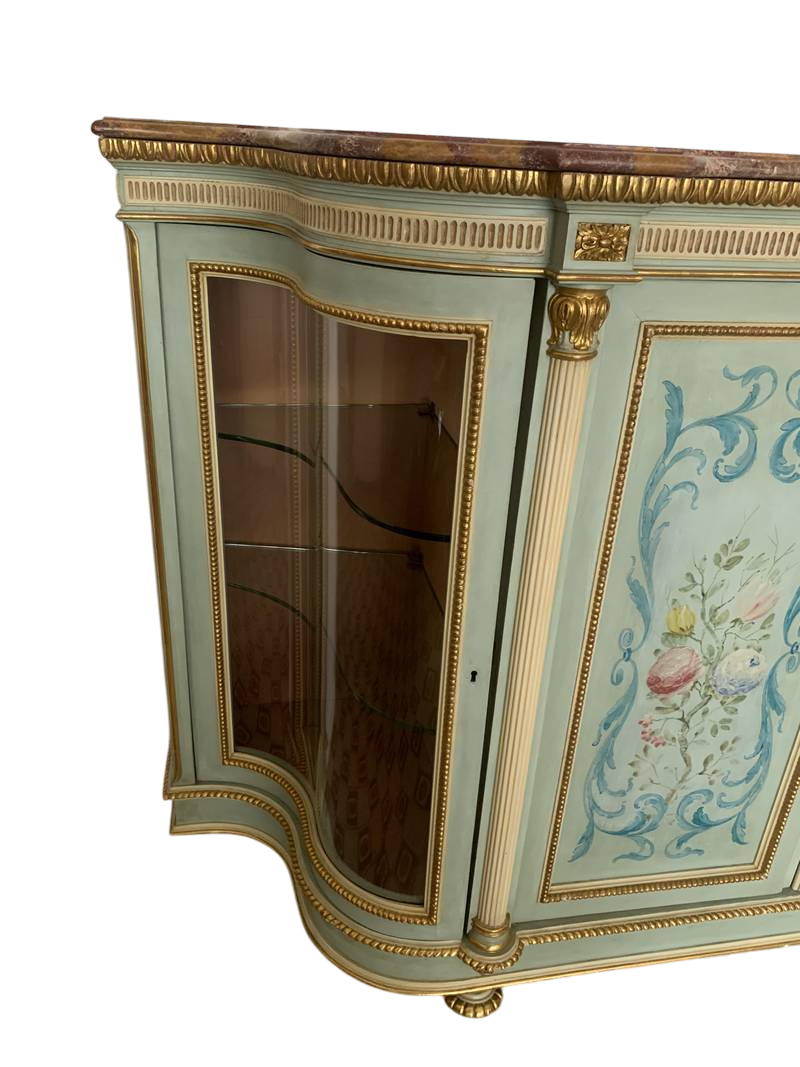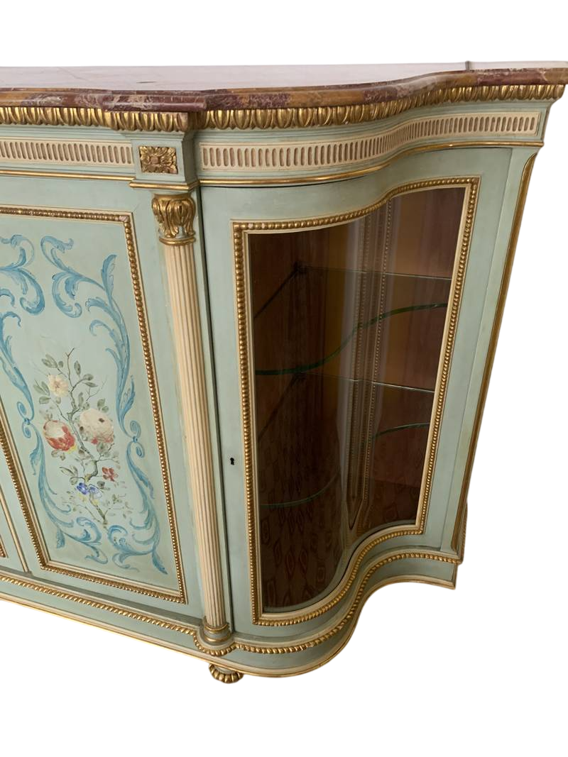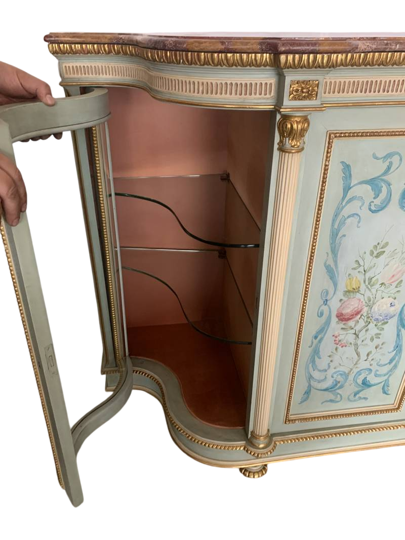 Antico Mobile servante con vetrine piano in marmo laccato e dipinto XX secolo