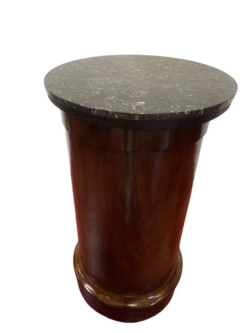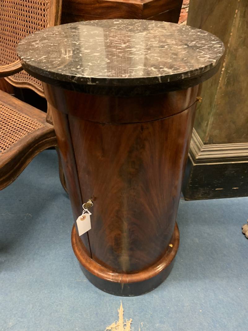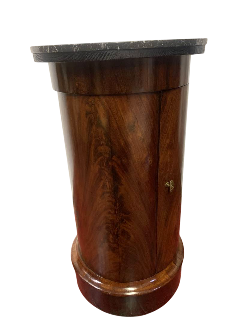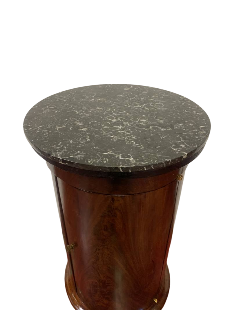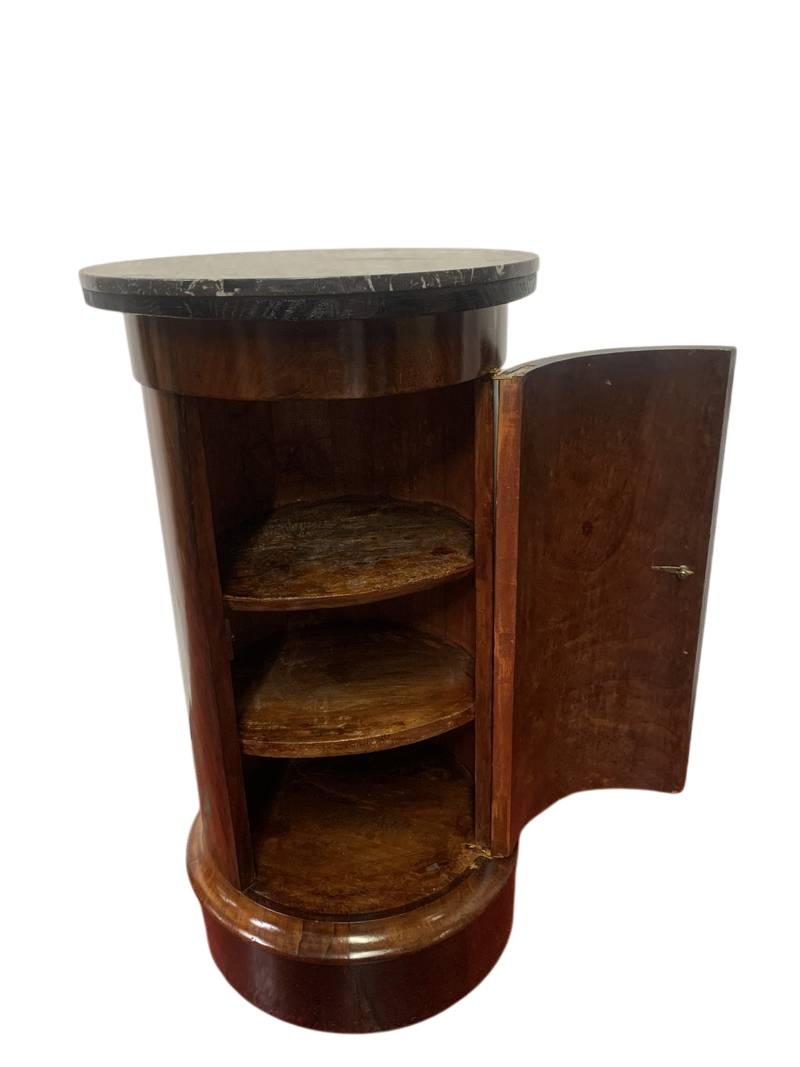 Antico mobiletto comodino Impero a cilindro con piano in marmo epoca XIX secolo