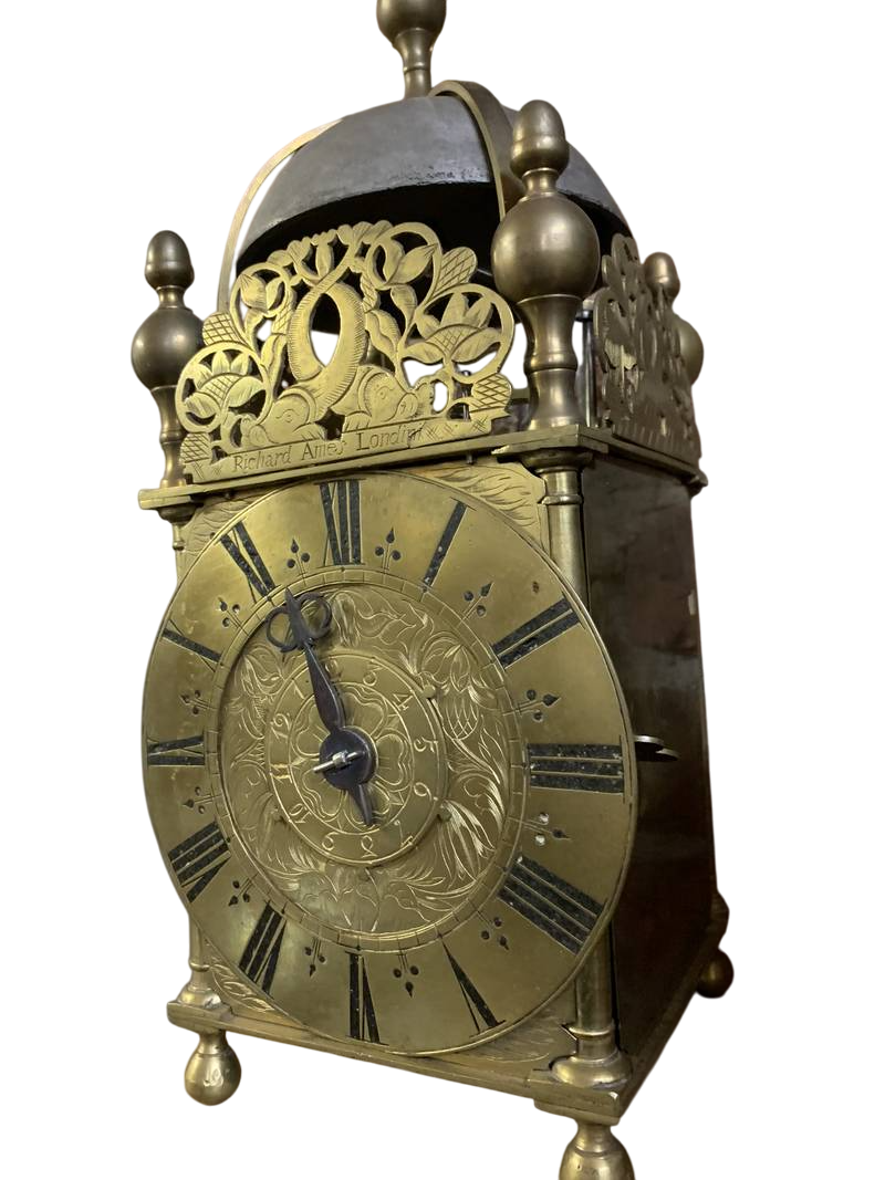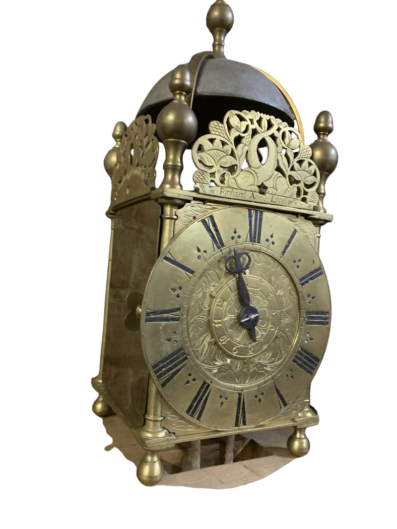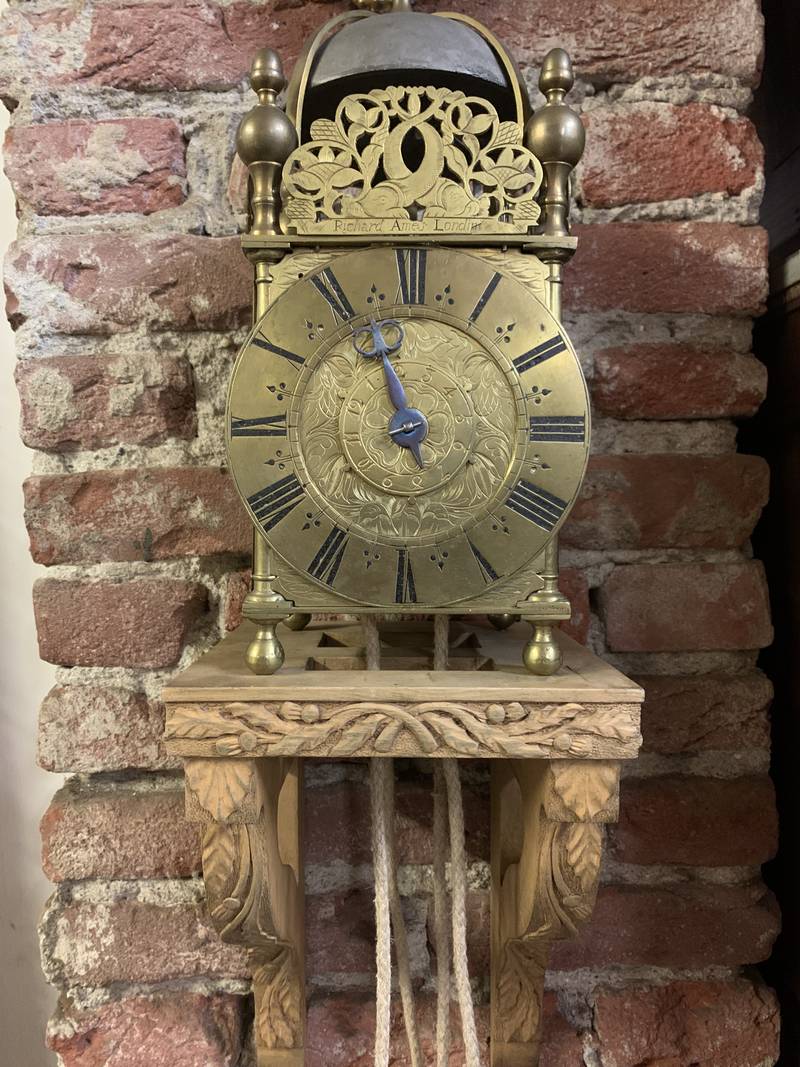Antico orologio da parete a peso in ottone dorato antico orologio a lanterna della prima meta’ del XVIII secolo