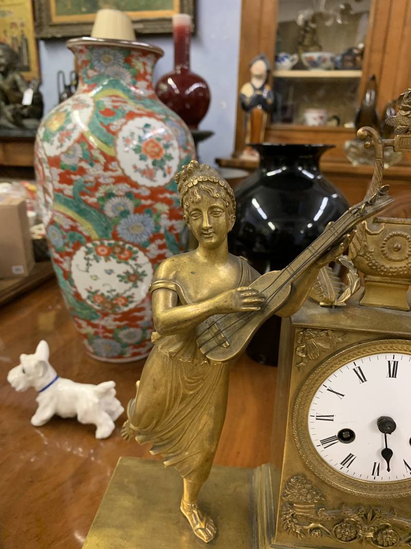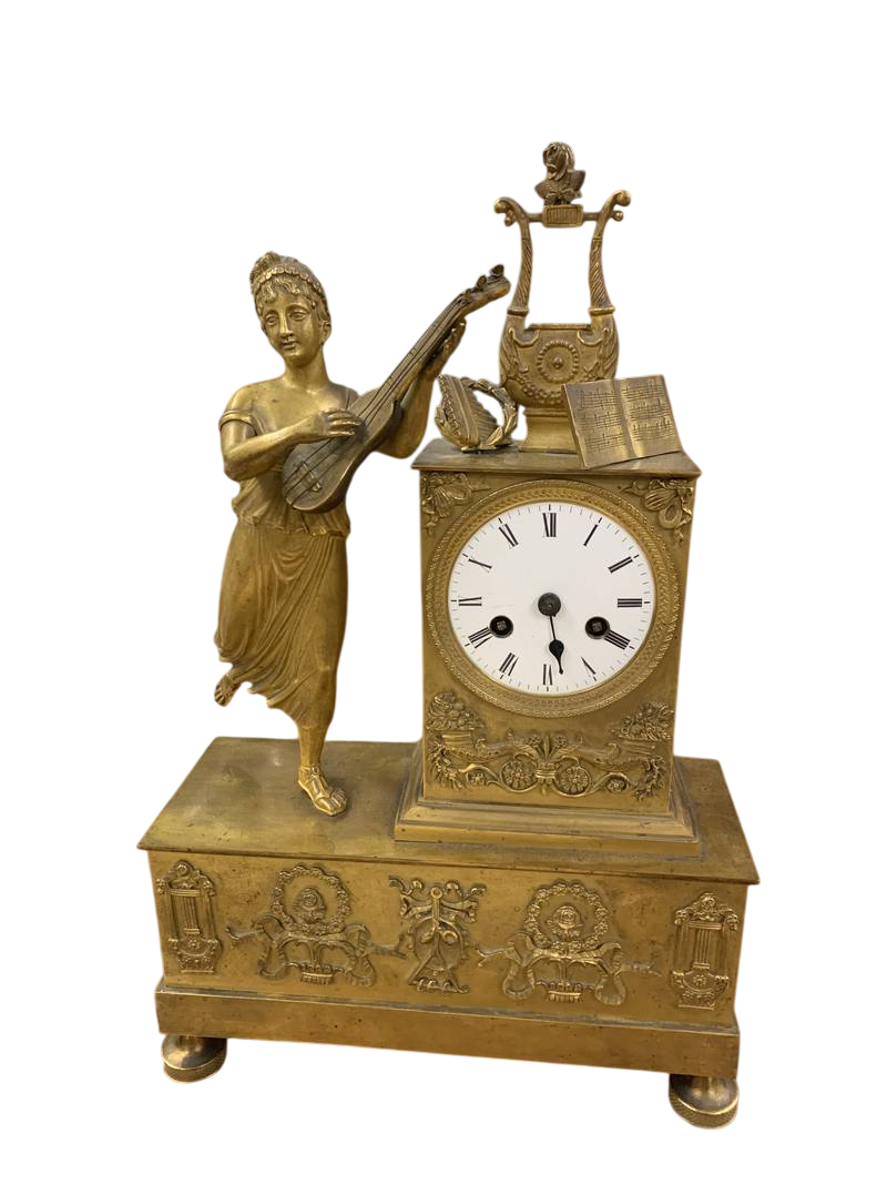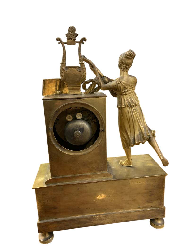 Antico orologio Pendola da tavolo in bronzo dorato con figura femminile
