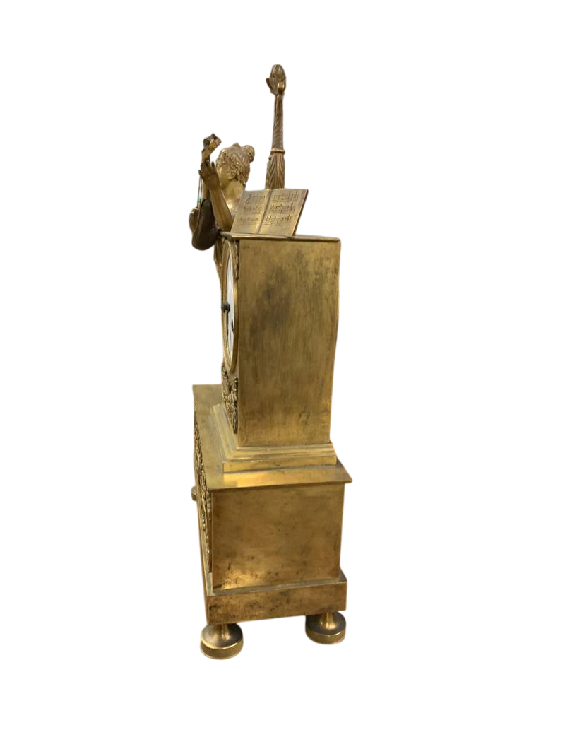 Antico orologio Pendola da tavolo in bronzo dorato con figura femminile epoca XIX sec